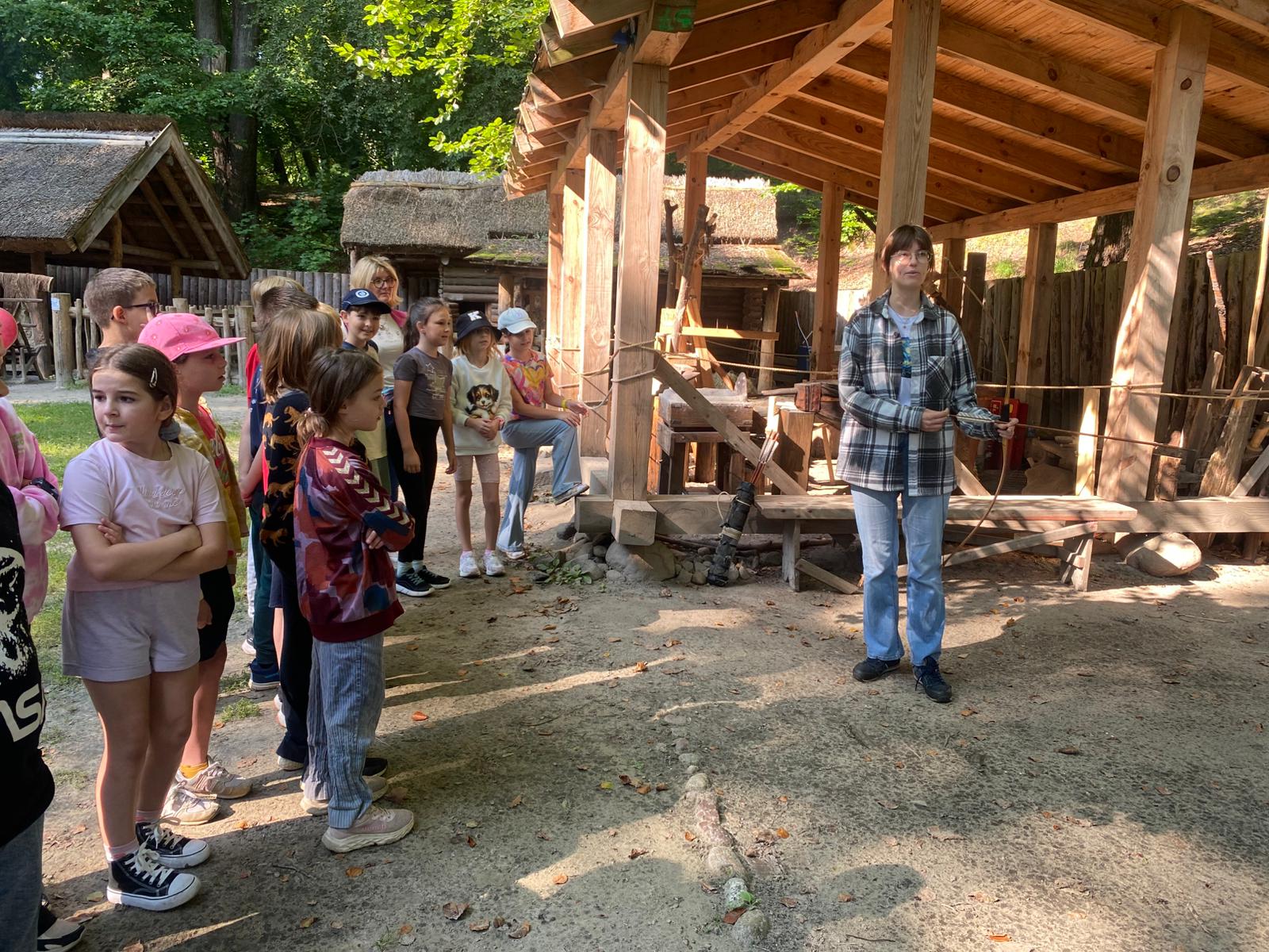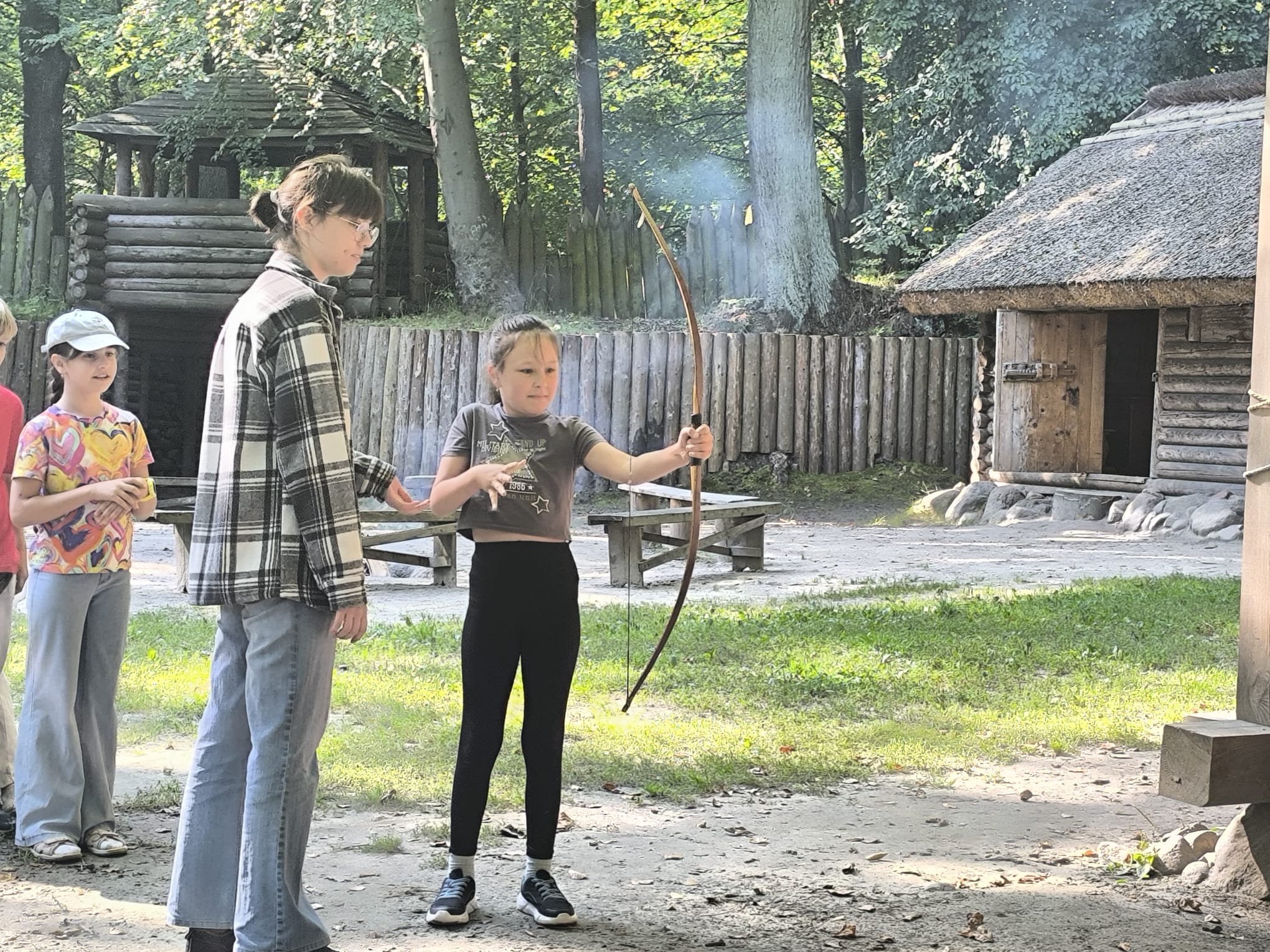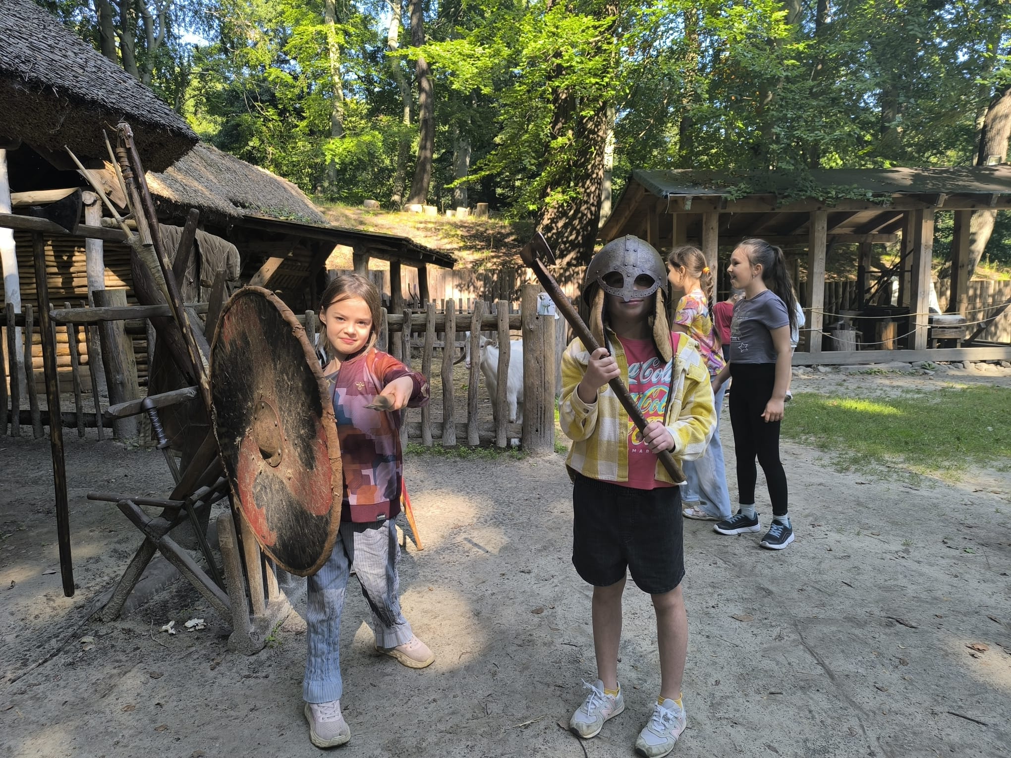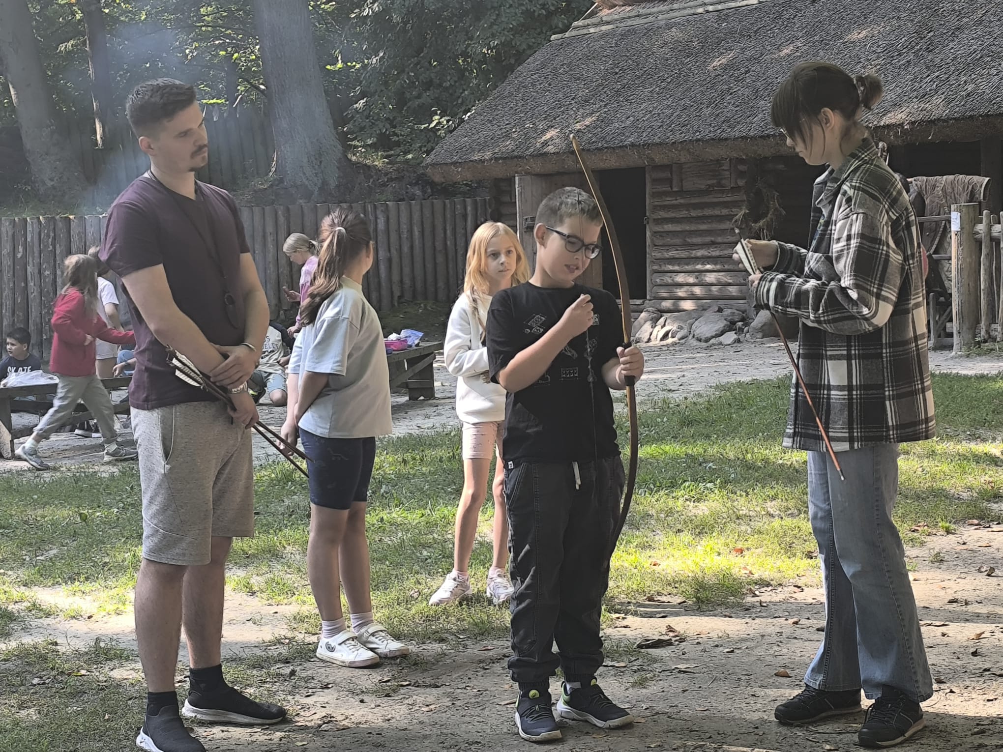 Uczniowie klasy III A wybrali się na wycieczkę do Grodziska w Sopocie, gdzie mieli okazję przenieść się w czasie i poznać życie dawnych Słowian. Dzieci zwiedziły zrekonstruowaną osadę, zobaczyły, jak wyglądała średniowieczna chata oraz dowiedziały się, czym zajmowali się ludzie w tamtych czasach. Poznały także dawne narzędzia i broń, jaką się posługiwano. Po części edukacyjnej przyszedł czas na naukę strzelania z łuku oraz wspólne ognisko z pieczeniem kiełbasek. To był dzień pełen wiedzy, wrażeń i dobrej zabawy!