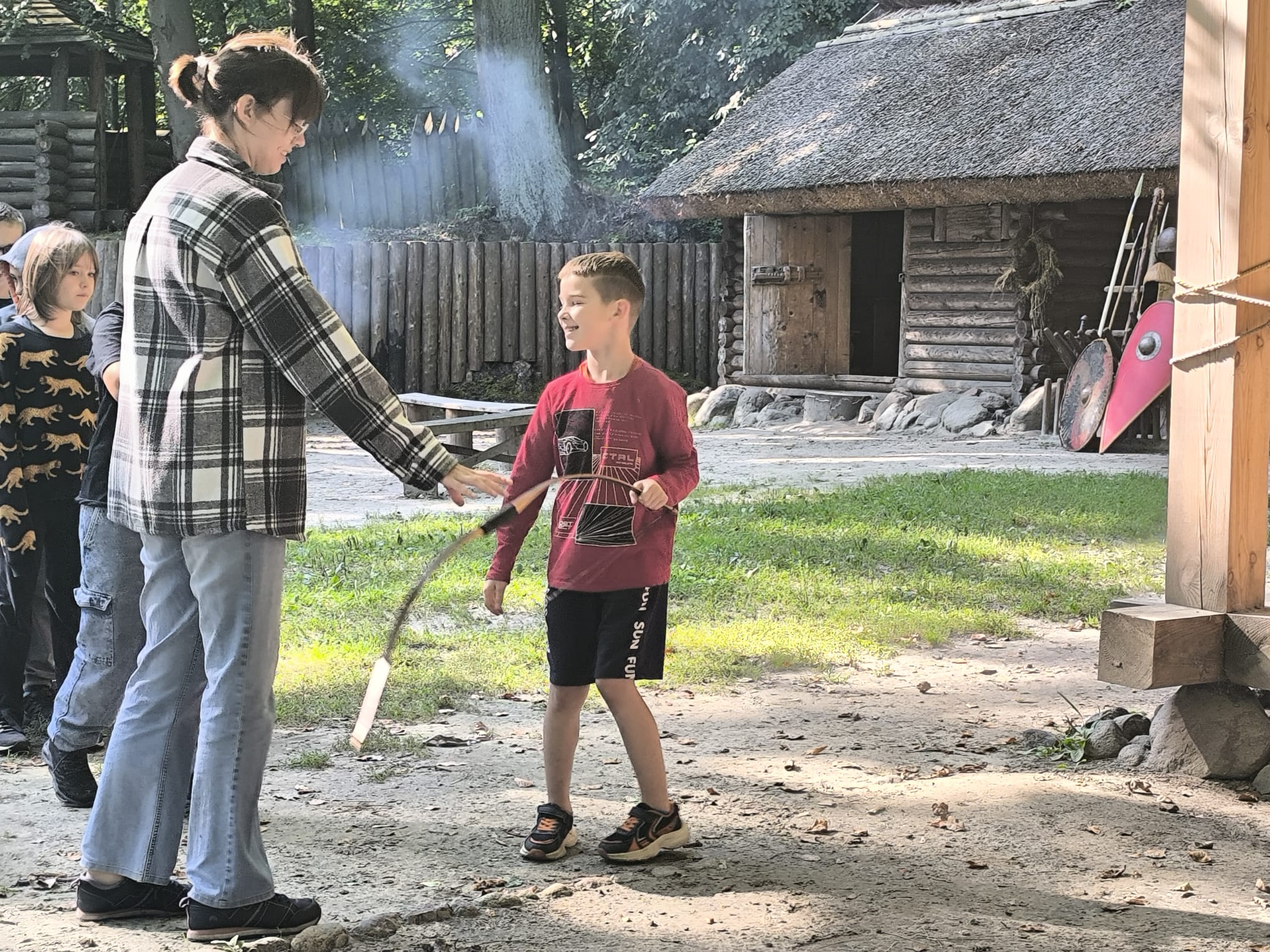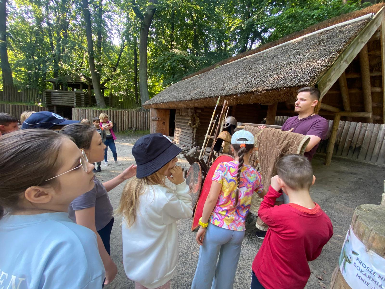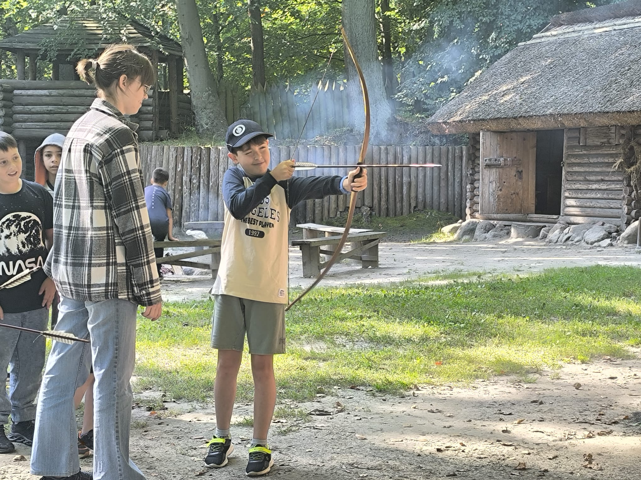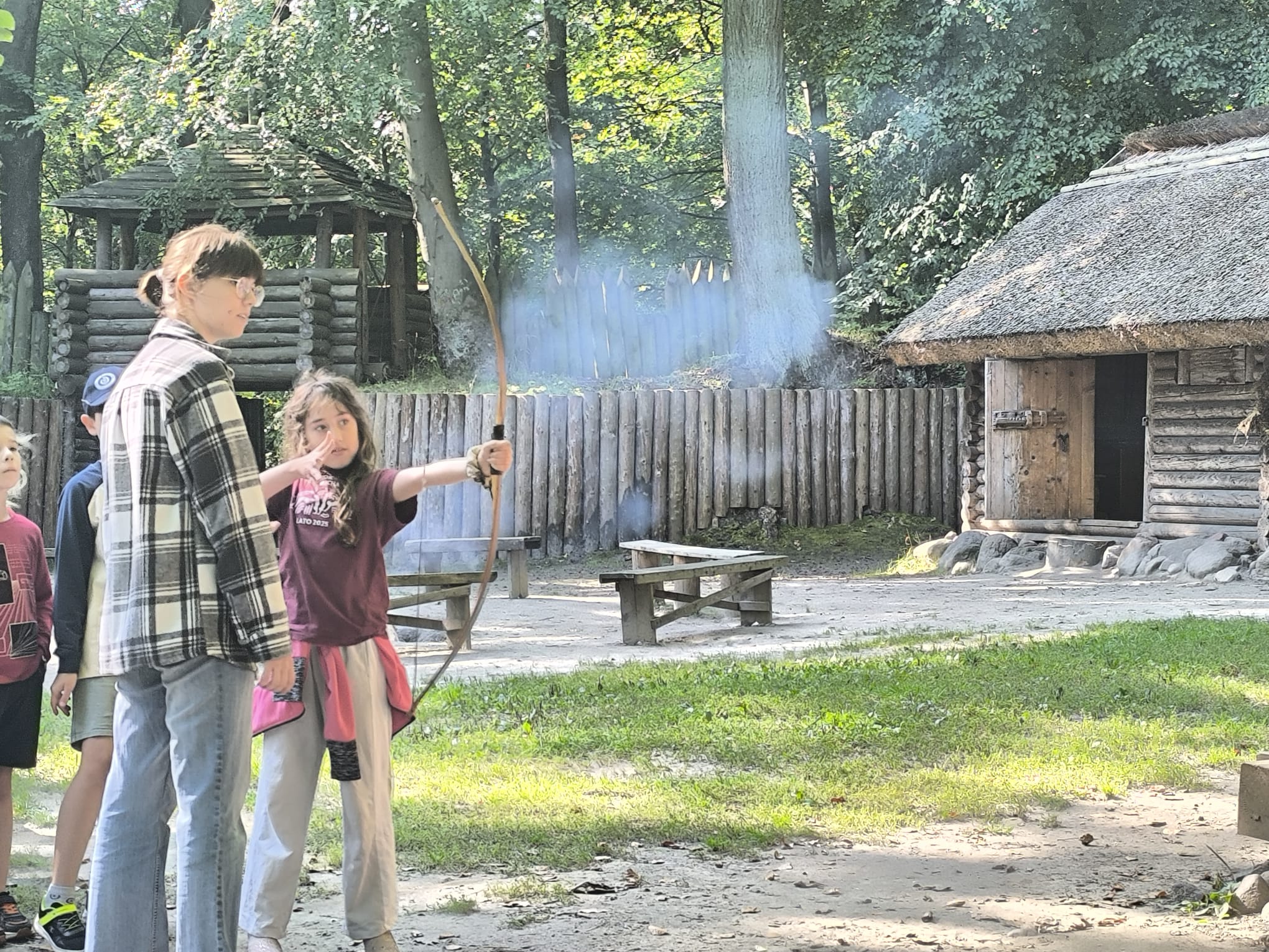 Uczniowie klasy III A wybrali się na wycieczkę do Grodziska w Sopocie, gdzie mieli okazję przenieść się w czasie i poznać życie dawnych Słowian. Dzieci zwiedziły zrekonstruowaną osadę, zobaczyły, jak wyglądała średniowieczna chata oraz dowiedziały się, czym zajmowali się ludzie w tamtych czasach. Poznały także dawne narzędzia i broń, jaką się posługiwano. Po części edukacyjnej przyszedł czas na naukę strzelania z łuku oraz wspólne ognisko z pieczeniem kiełbasek. To był dzień pełen wiedzy, wrażeń i dobrej zabawy!