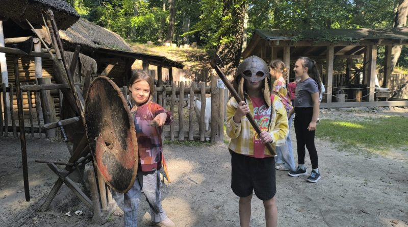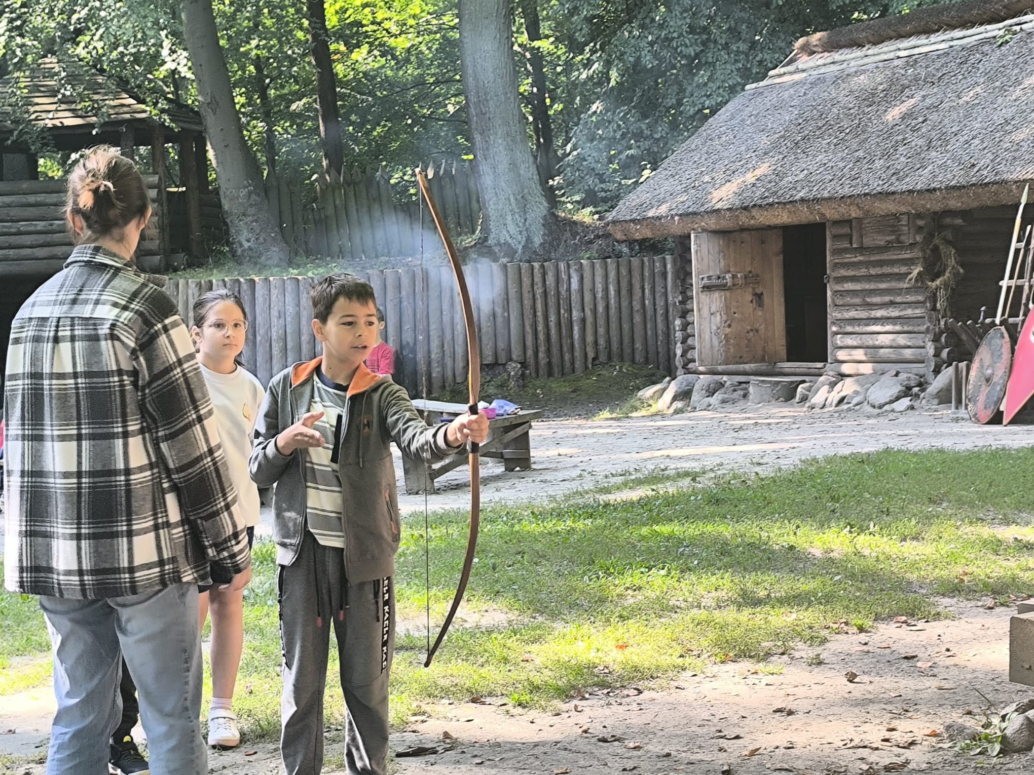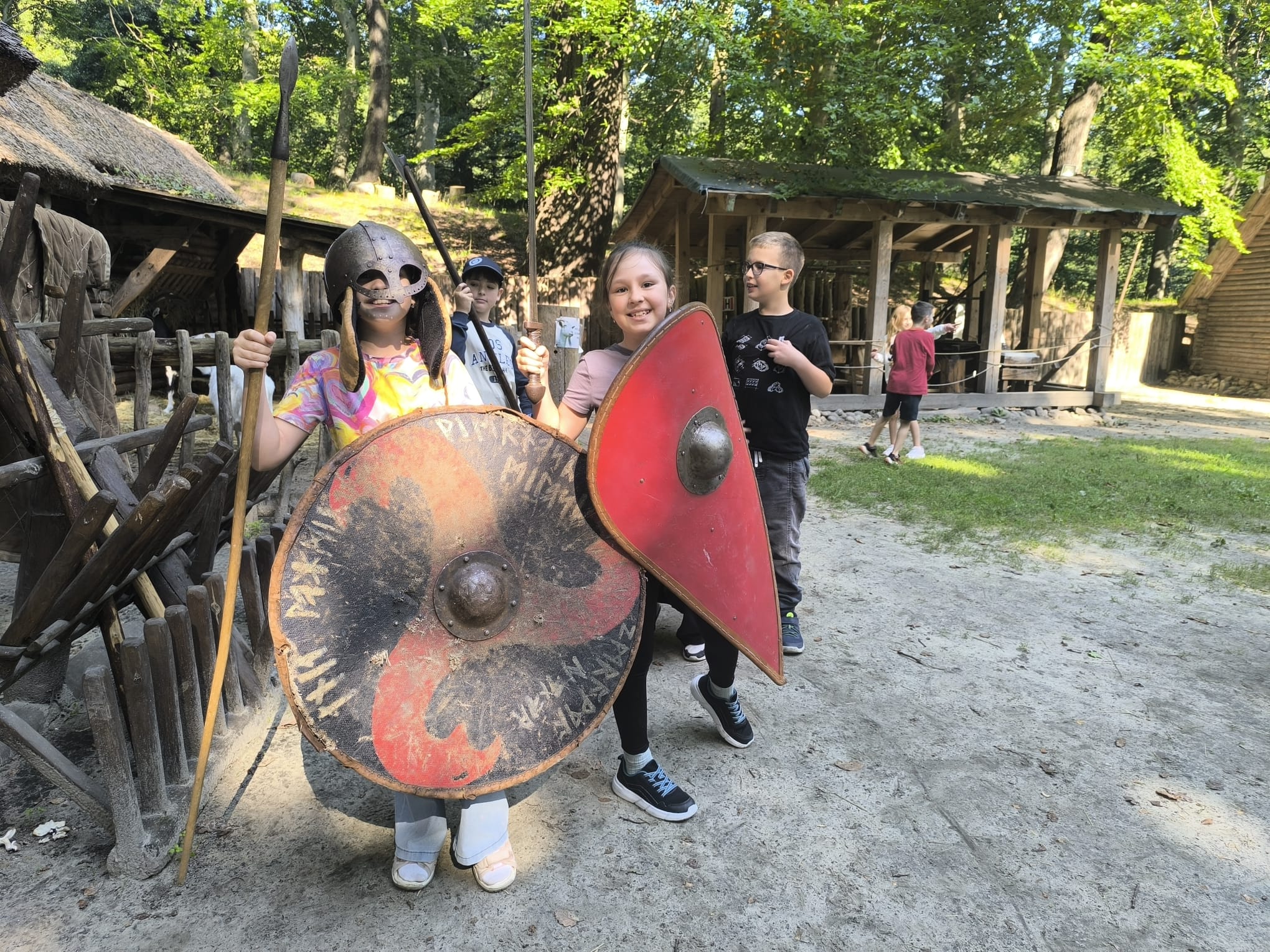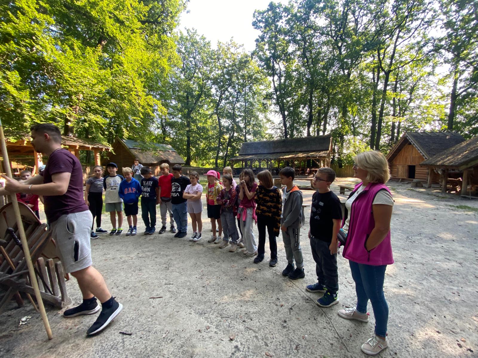 Uczniowie klasy III A wybrali się na wycieczkę do Grodziska w Sopocie, gdzie mieli okazję przenieść się w czasie i poznać życie dawnych Słowian. Dzieci zwiedziły zrekonstruowaną osadę, zobaczyły, jak wyglądała średniowieczna chata oraz dowiedziały się, czym zajmowali się ludzie w tamtych czasach. Poznały także dawne narzędzia i broń, jaką się posługiwano. Po części edukacyjnej przyszedł czas na naukę strzelania z łuku oraz wspólne ognisko z pieczeniem kiełbasek. To był dzień pełen wiedzy, wrażeń i dobrej zabawy!