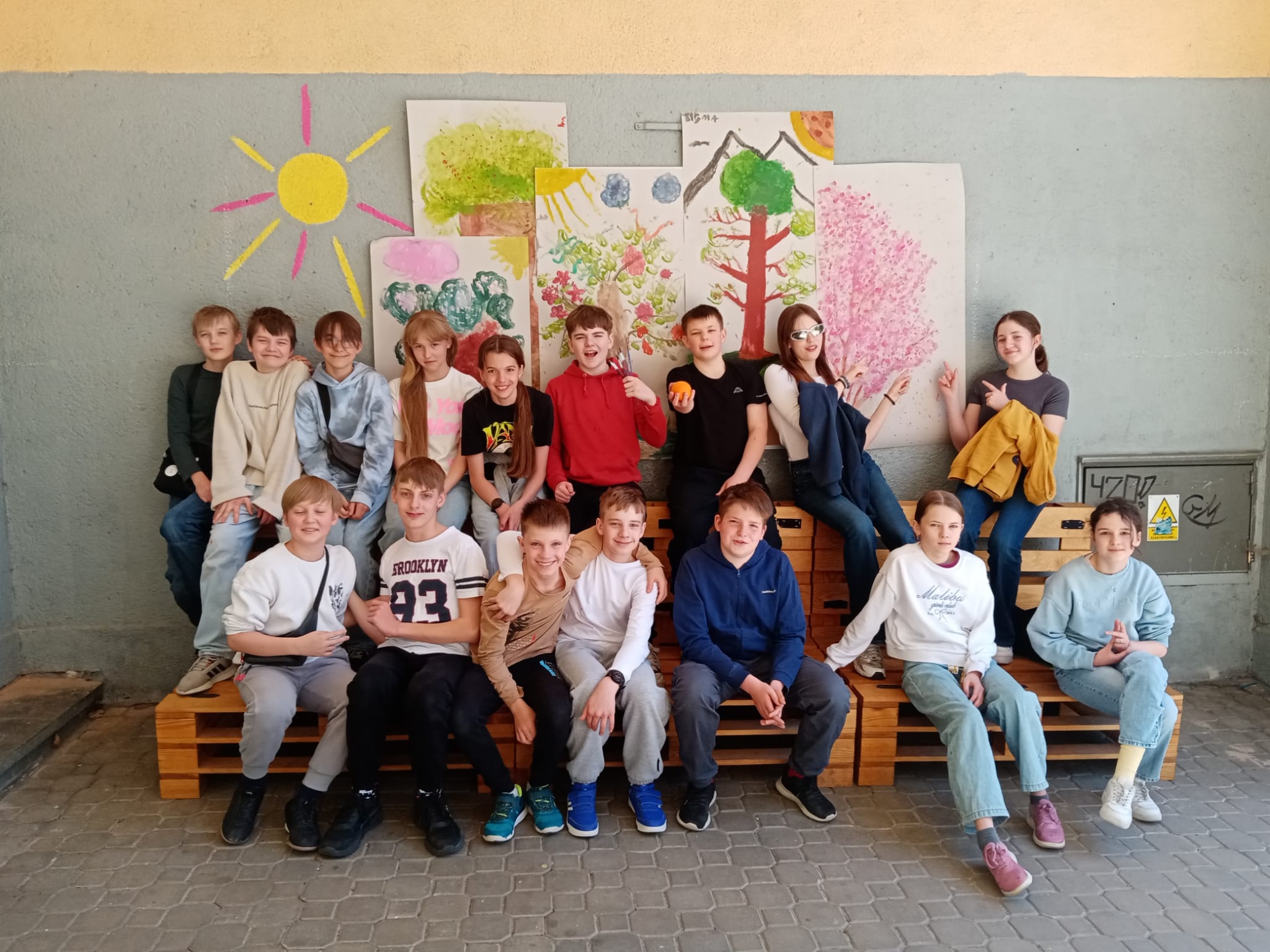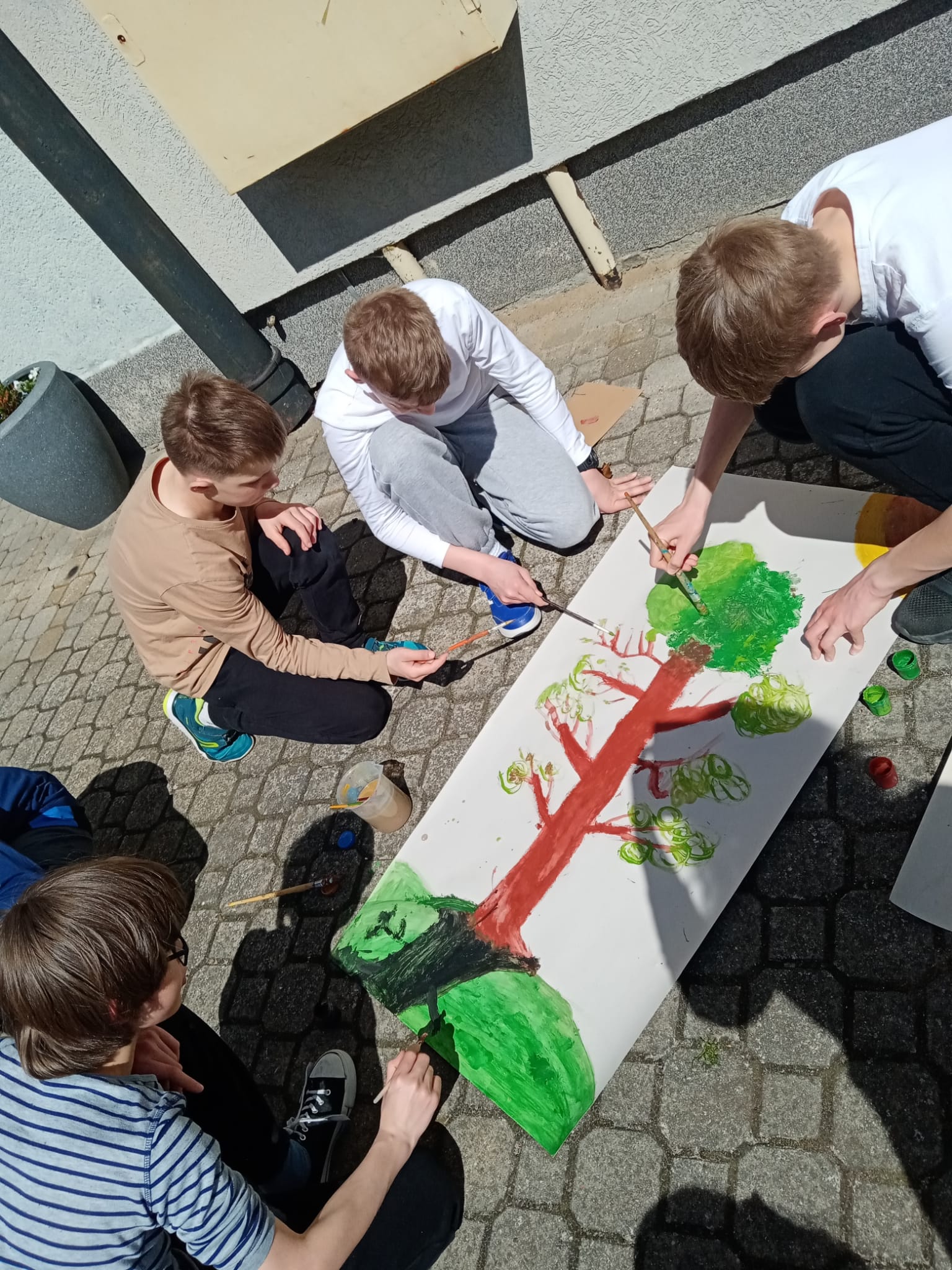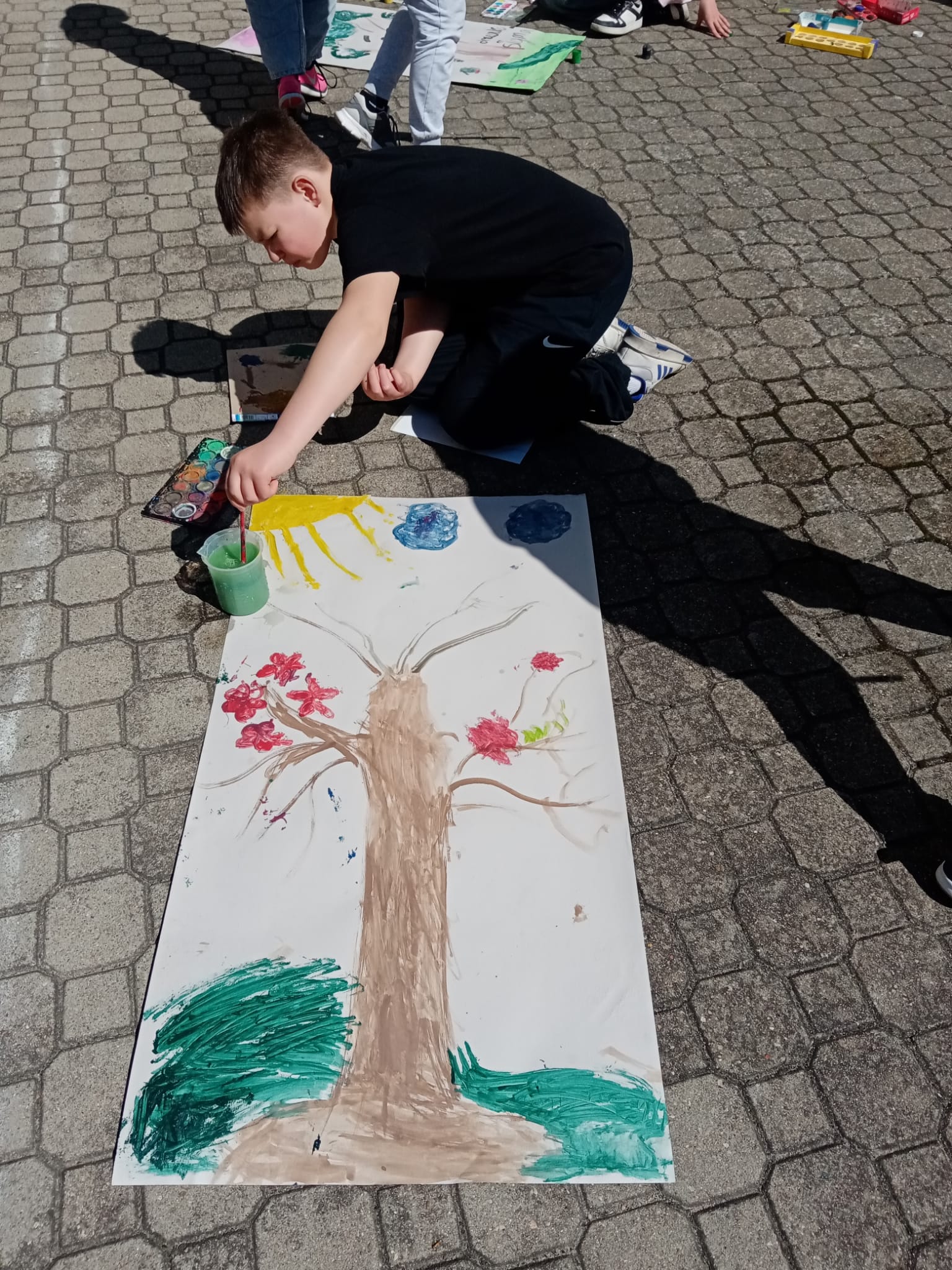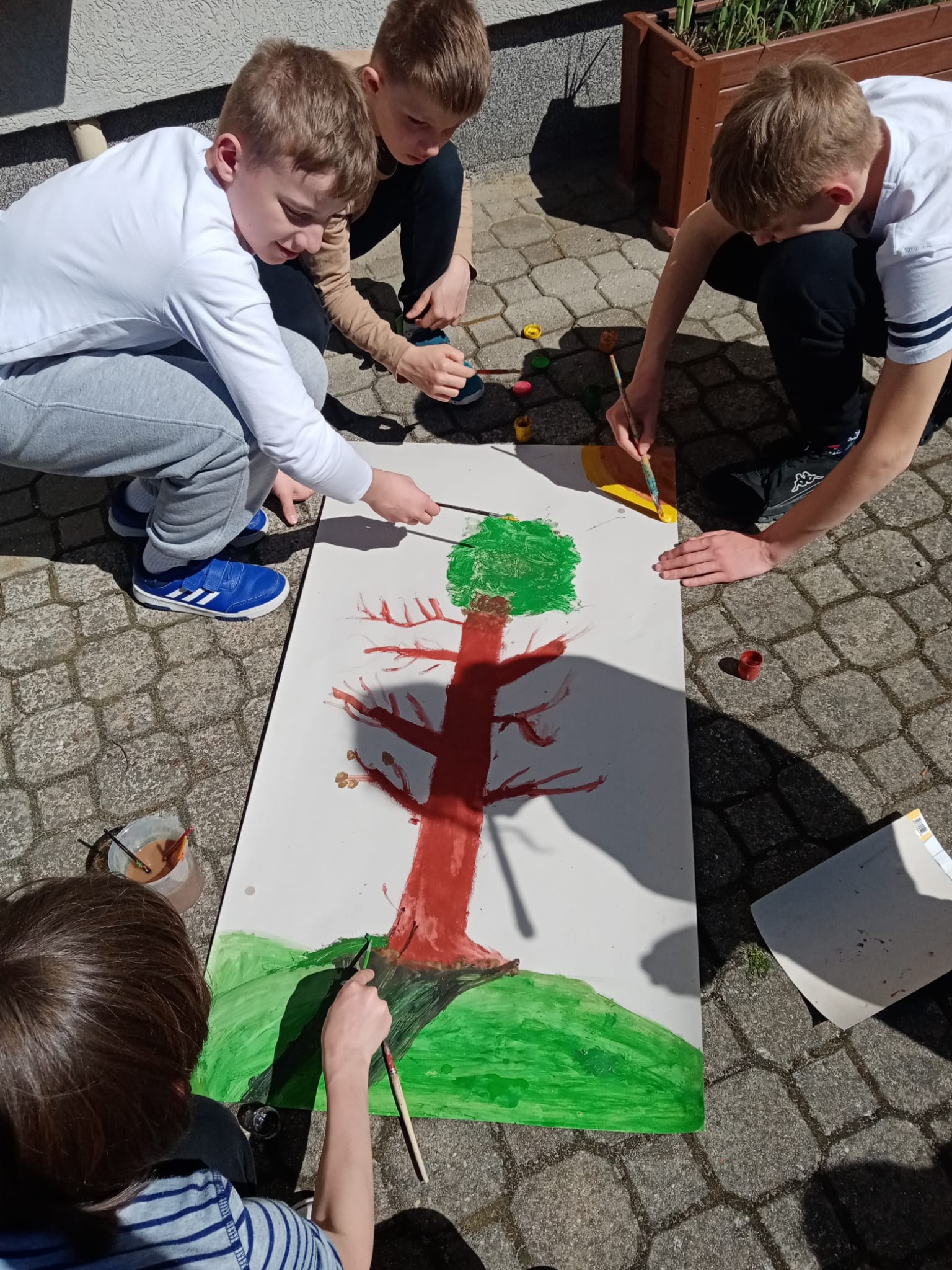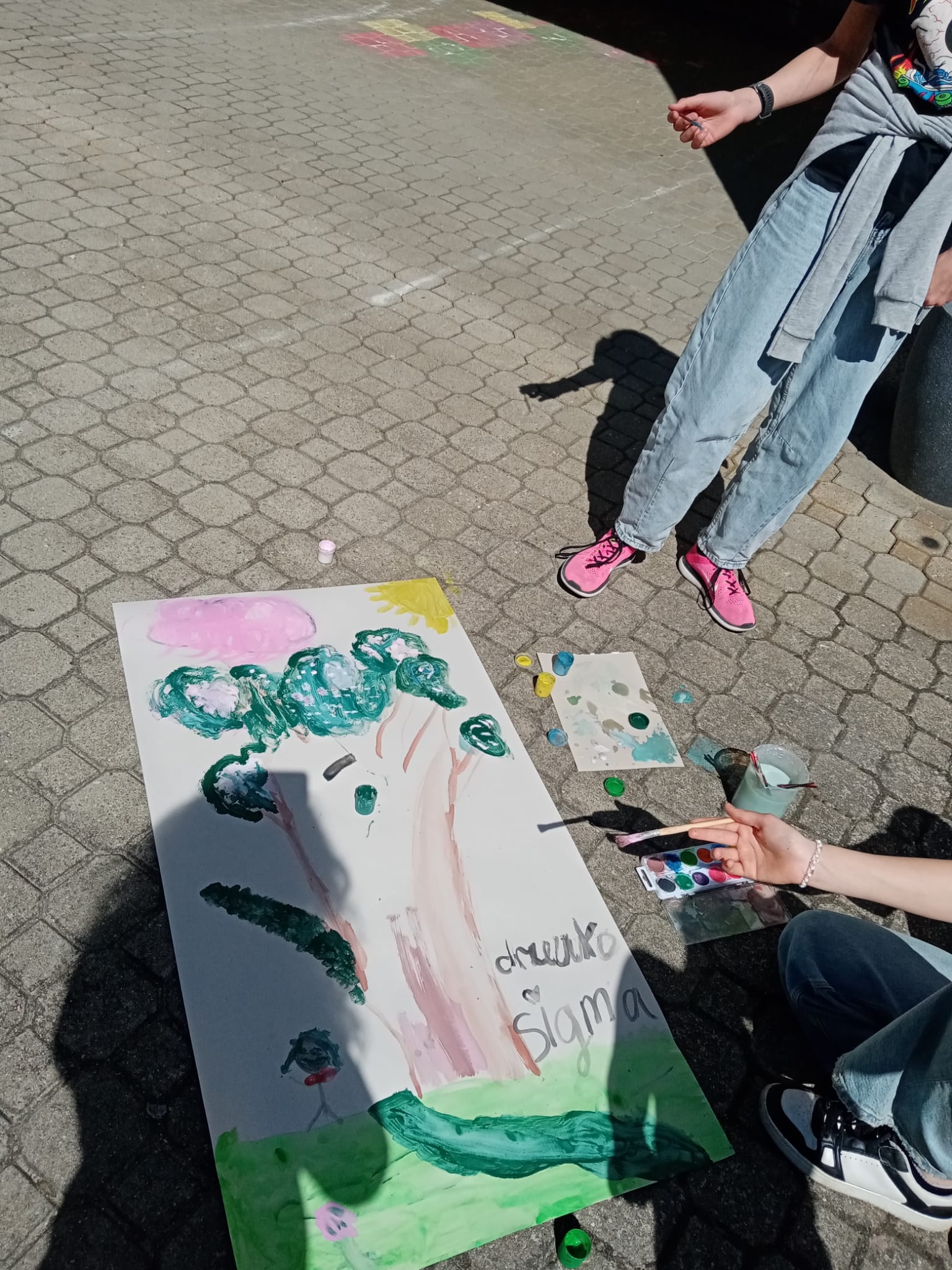Klasa 6a skorzystała dziś z pięknej pogody i zajęcia plastyczne miała w plenerze. Uczniowie malowali wiosenne drzewa.