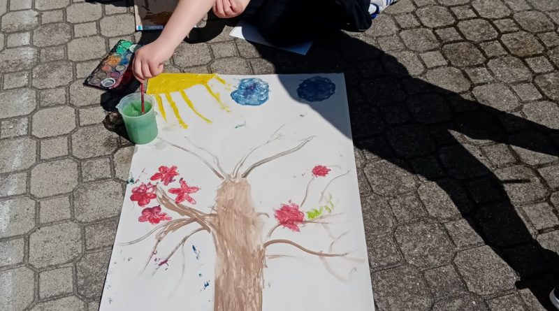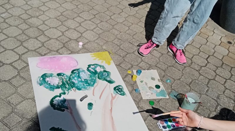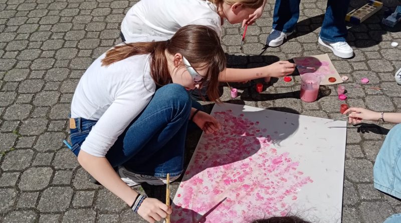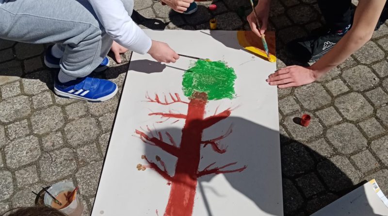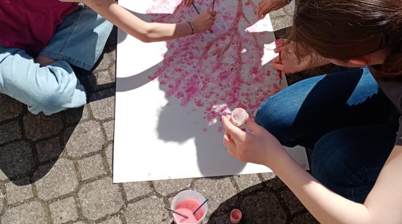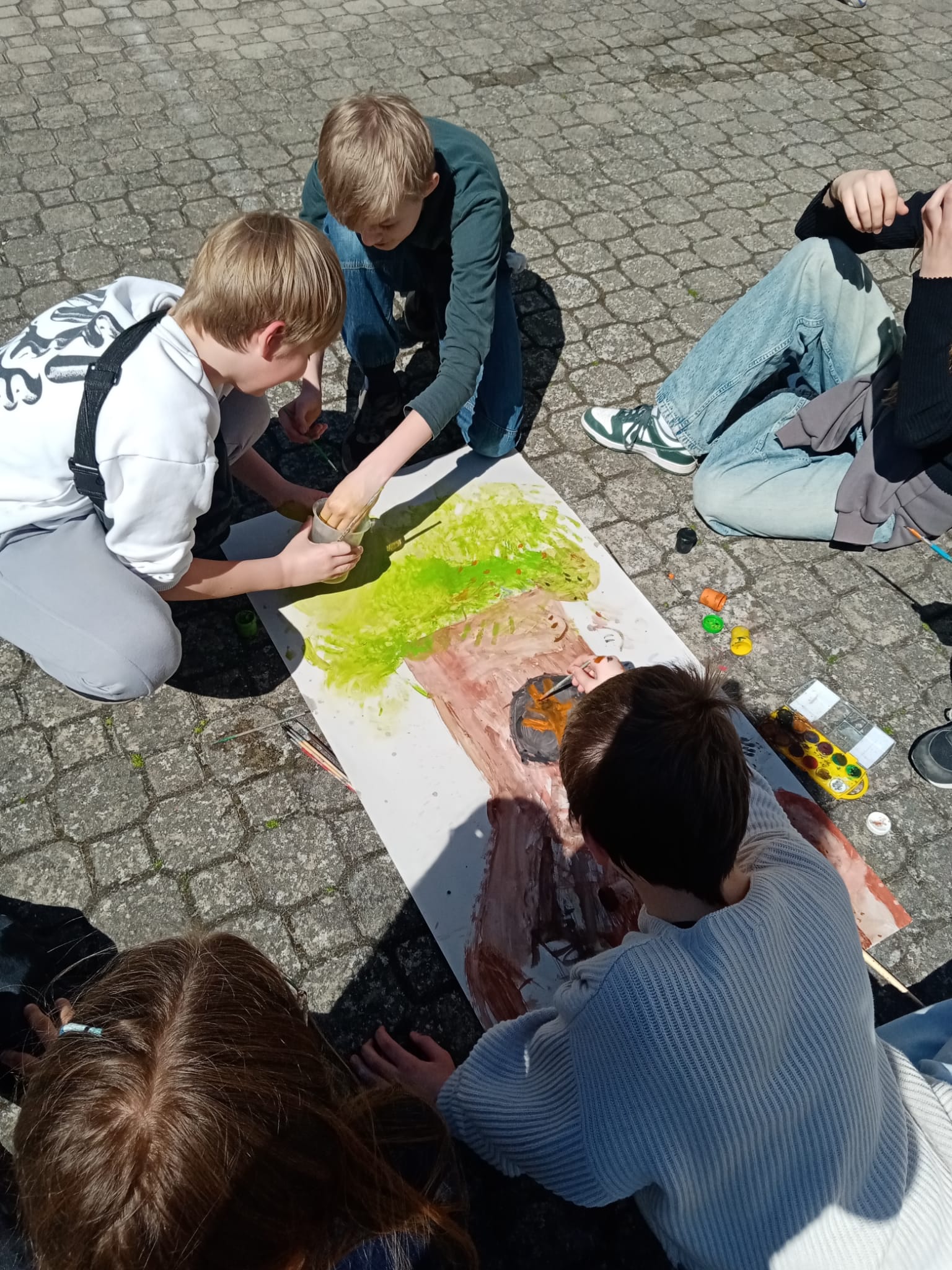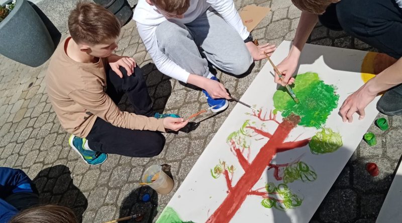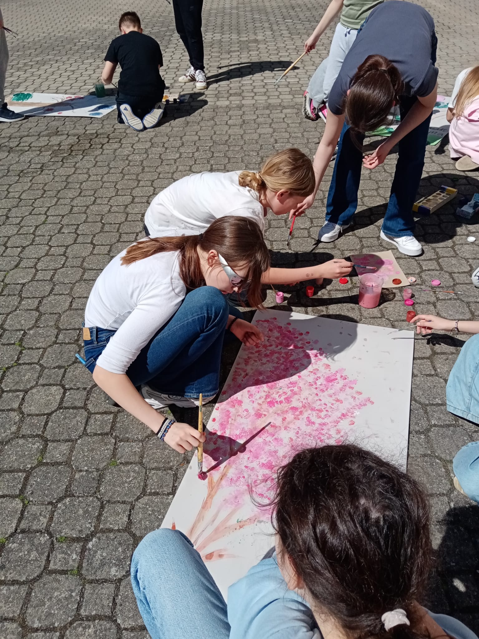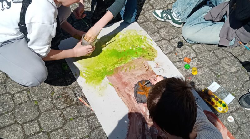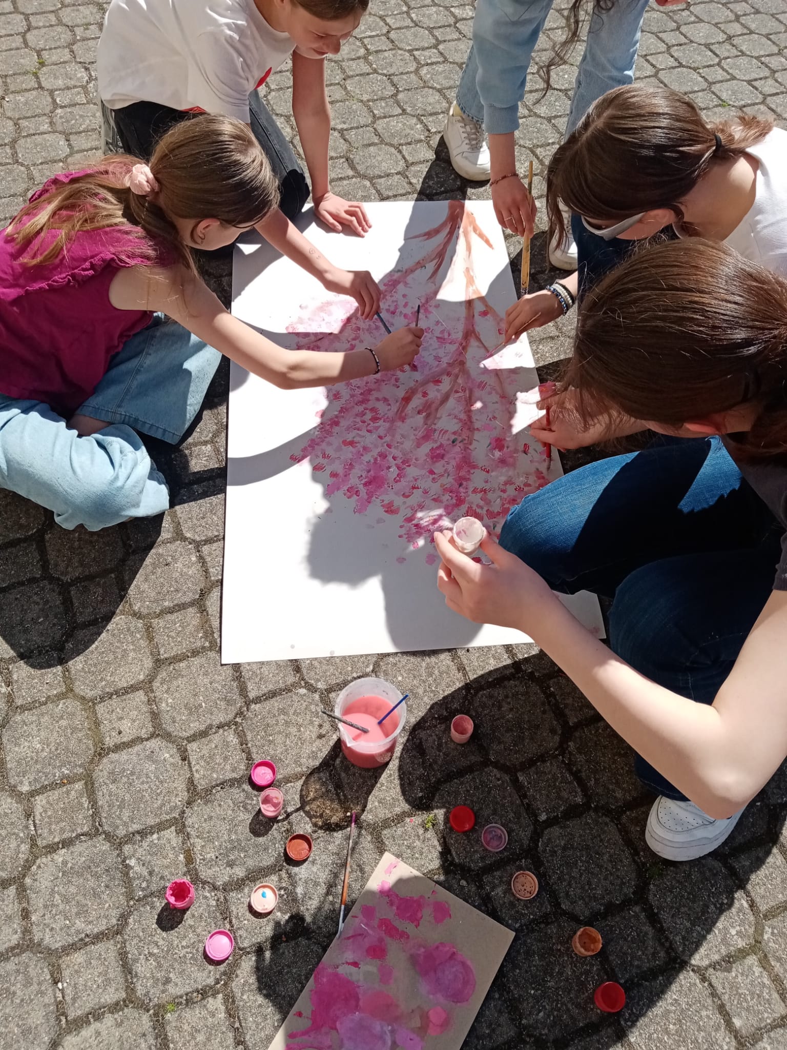 Klasa 6a skorzystała dziś z pięknej pogody i zajęcia plastyczne miała w plenerze. Uczniowie malowali wiosenne drzewa.