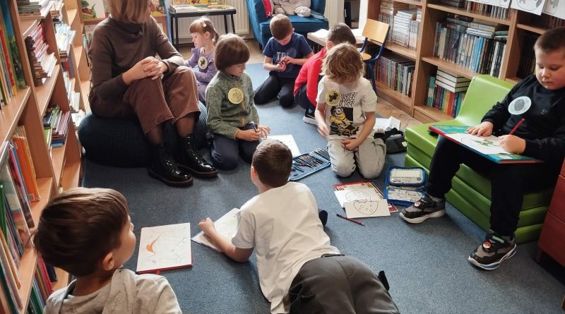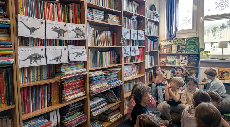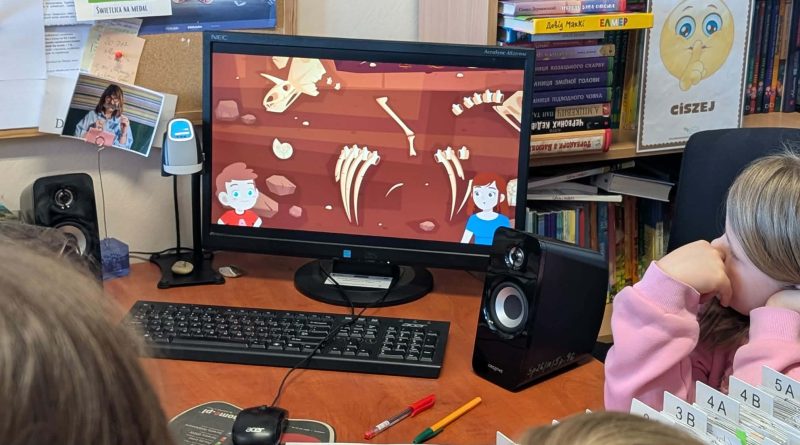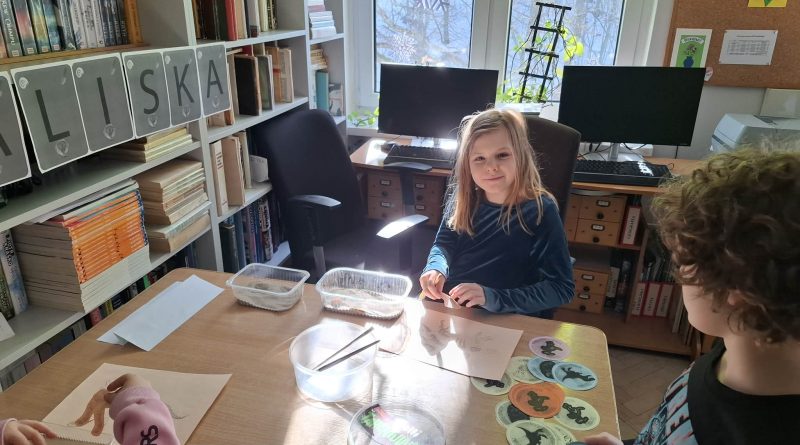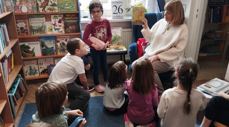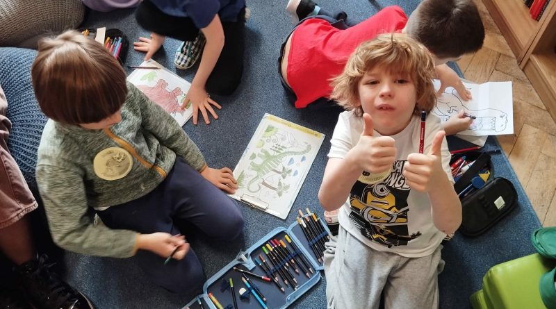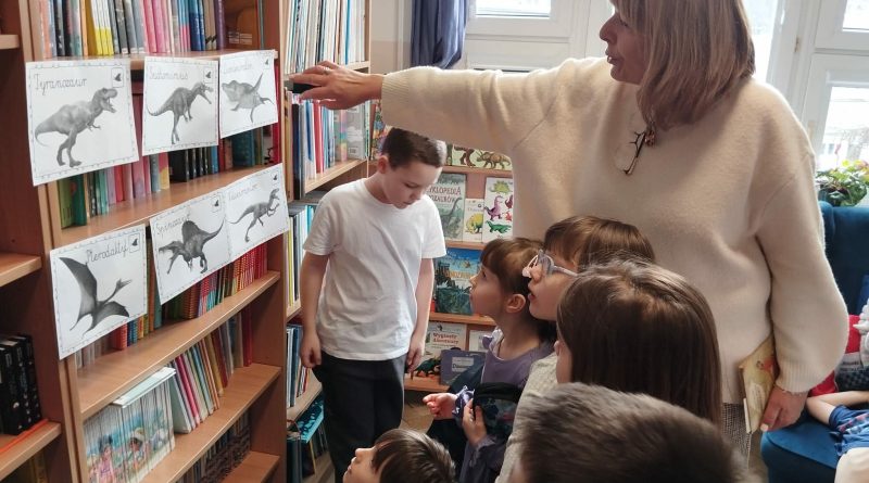 W szkolnej bibliotece klasy 1a i 1b świętowały Dzień Dinozaura, biorąc udział w pełnych wrażeń i ciekawostek zajęciach tematycznych. Na początku uczniowie obejrzeli wystawkę książek o dinozaurach oraz kolorowe ilustracje przedstawiające różne gatunki prehistorycznych stworzeń, wraz z podziałem na dinozaury roślinożerne i mięsożerne. Następnie dzieci obejrzały krótki film edukacyjny, z którego dowiedziały się, jakie były możliwe przyczyny wyginięcia dinozaurów.