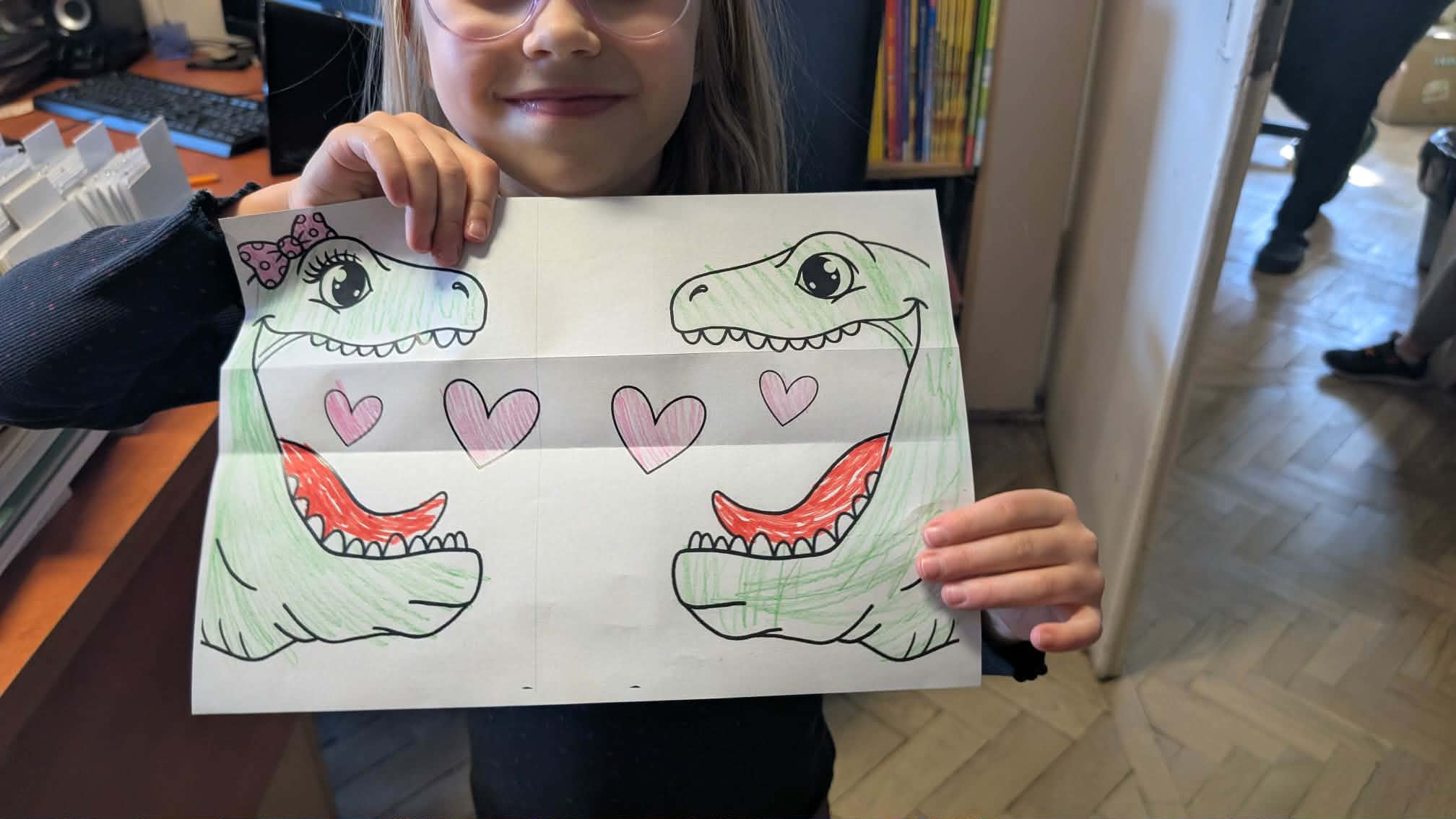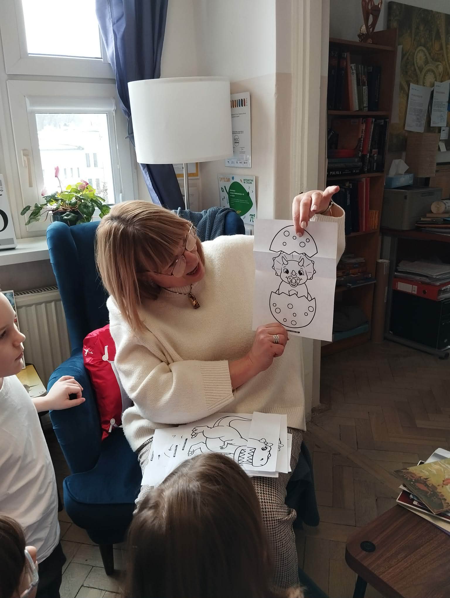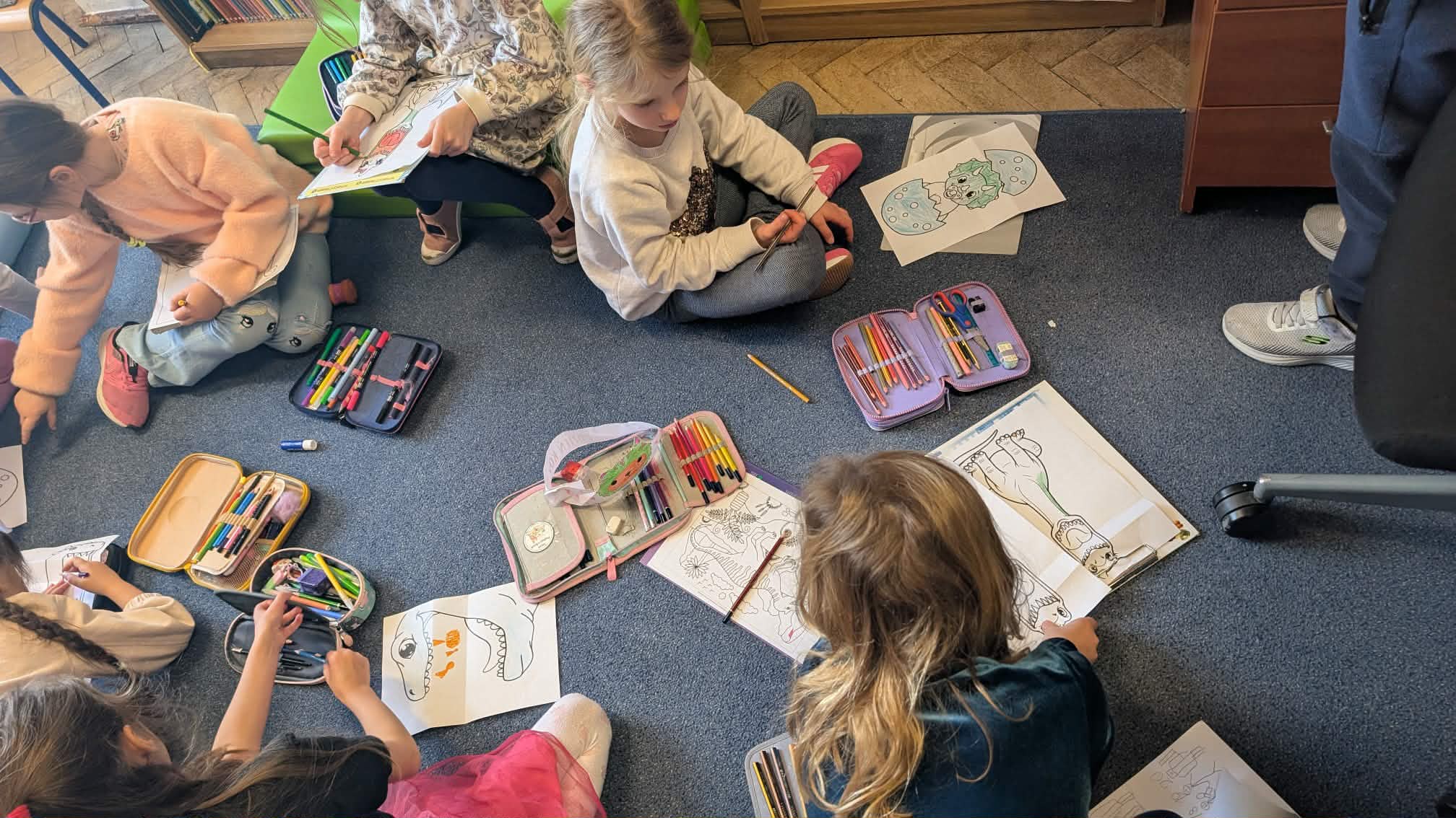 W szkolnej bibliotece klasy 1a i 1b świętowały Dzień Dinozaura, biorąc udział w pełnych wrażeń i ciekawostek zajęciach tematycznych. Na początku uczniowie obejrzeli wystawkę książek o dinozaurach oraz kolorowe ilustracje przedstawiające różne gatunki prehistorycznych stworzeń, wraz z podziałem na dinozaury roślinożerne i mięsożerne. Następnie dzieci obejrzały krótki film edukacyjny, z którego dowiedziały się, jakie były możliwe przyczyny wyginięcia dinozaurów.