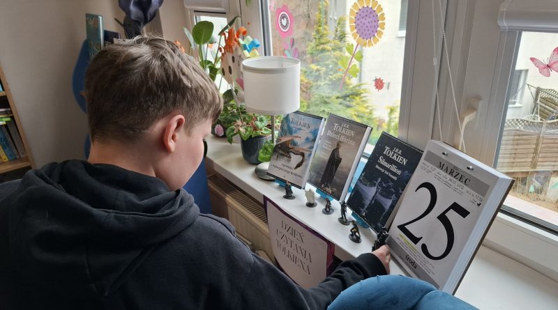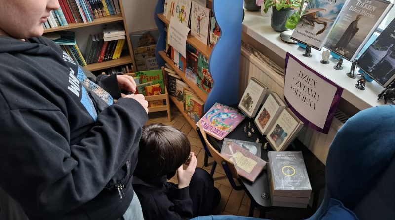 W naszej bibliotece odbyło się wyjątkowe spotkanie z twórczością J.R.R. Tolkiena, zorganizowane z okazji Dnia Czytania Tolkiena. Na uczestników czekała tematyczna wystawka książek autora. Ekspozycję wzbogaciły figurki przedstawiające bohaterów ze świata Śródziemia, które wzbudzały duże zainteresowanie i zachęcały do swobodnej zabawy.