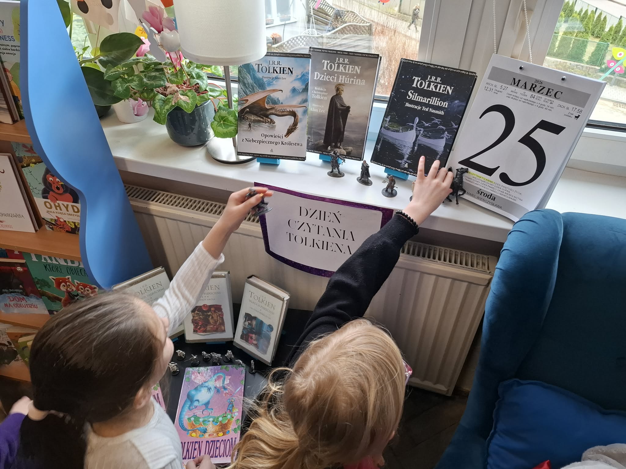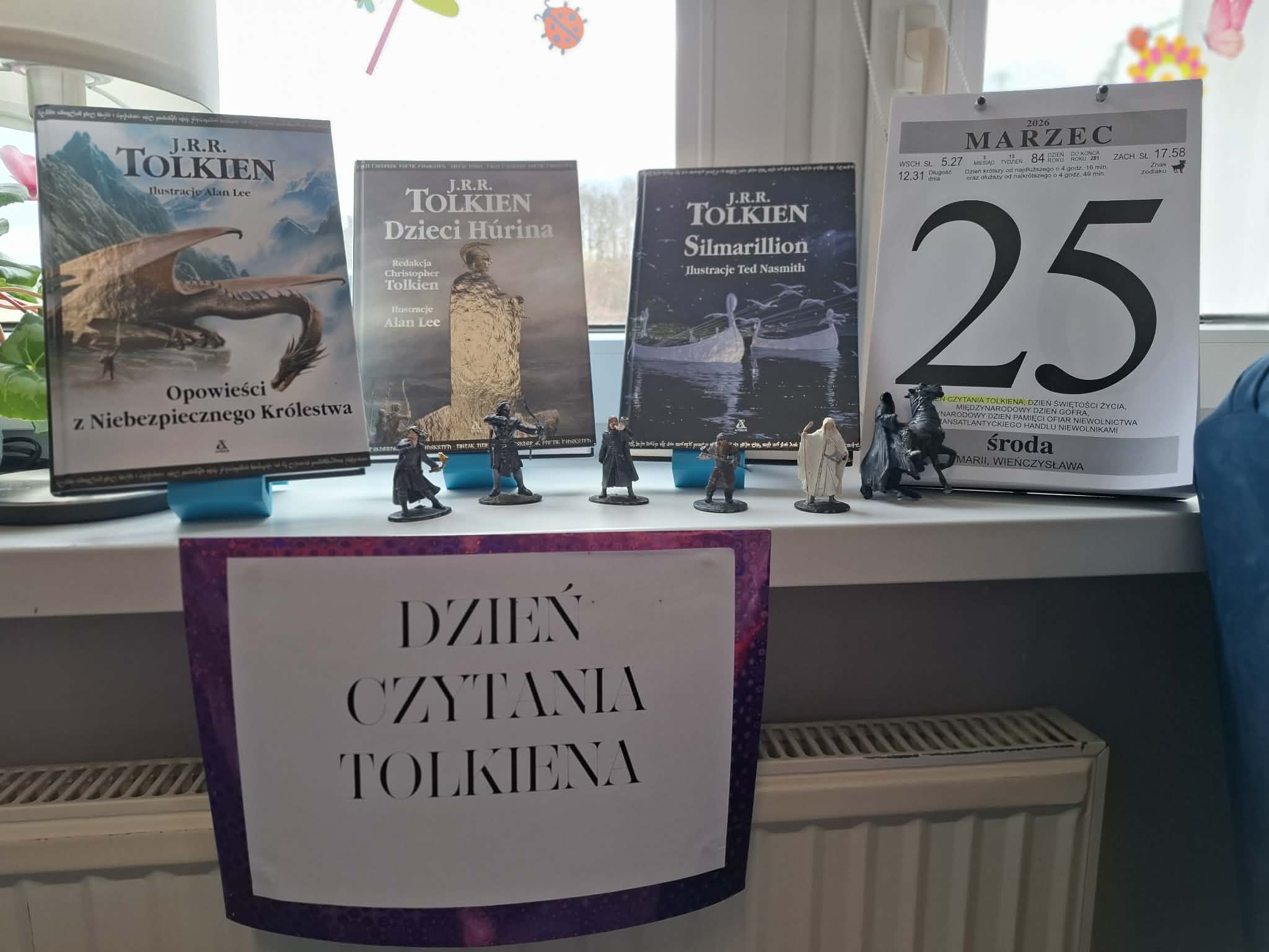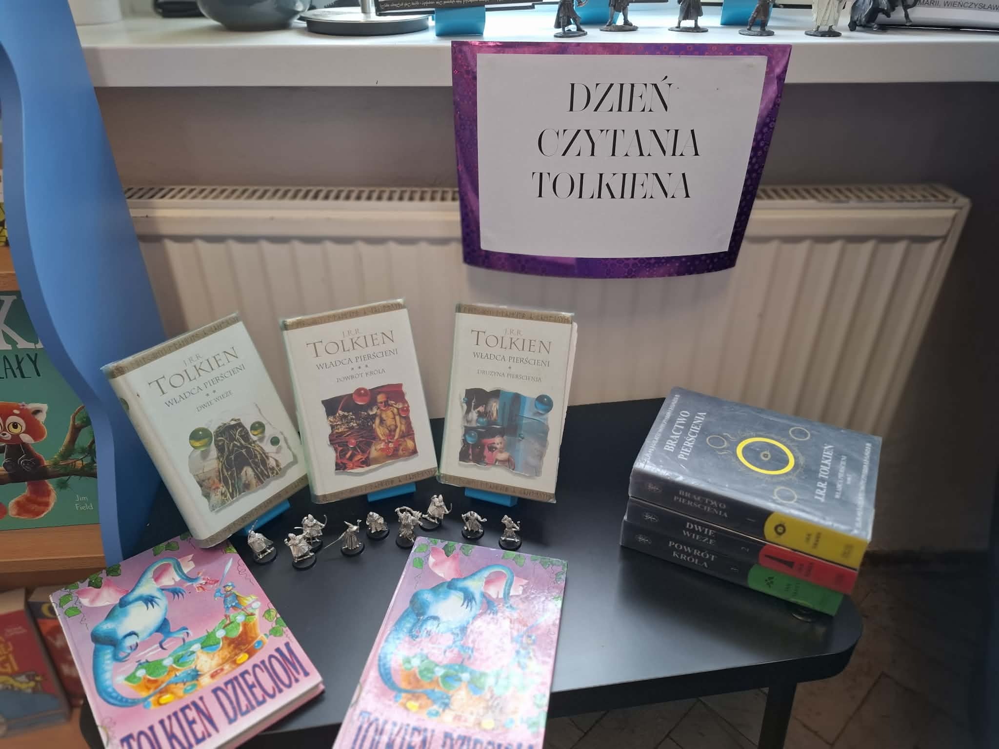 W naszej bibliotece odbyło się wyjątkowe spotkanie z twórczością J.R.R. Tolkiena, zorganizowane z okazji Dnia Czytania Tolkiena. Na uczestników czekała tematyczna wystawka książek autora. Ekspozycję wzbogaciły figurki przedstawiające bohaterów ze świata Śródziemia, które wzbudzały duże zainteresowanie i zachęcały do swobodnej zabawy.