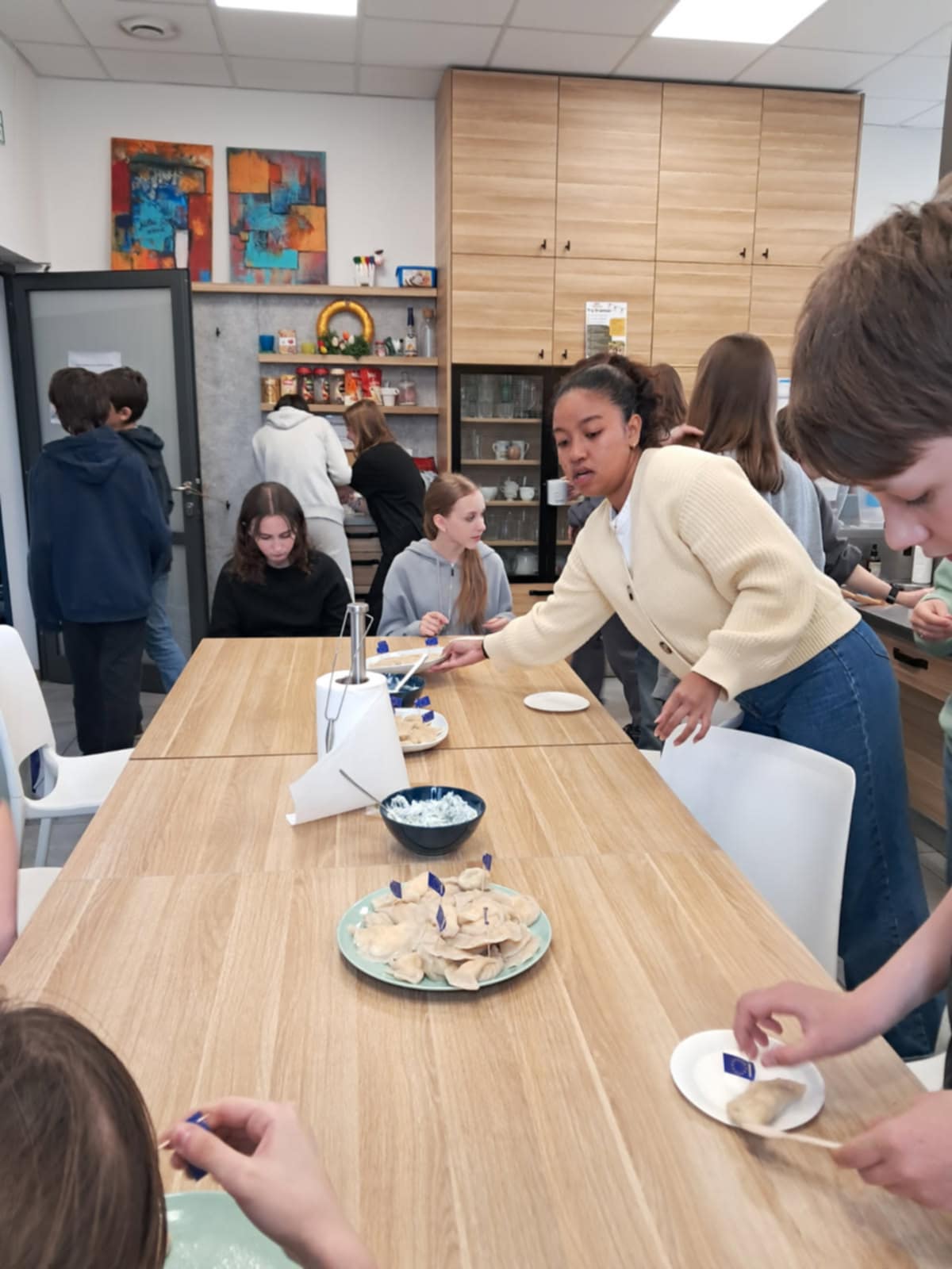 W miniony piątek grupa uczniów z kl. 7a wzięła udział w wydarzeniu zorganizowanym przez Gdyńskie Centrum Współpracy Młodzieży pt. Dzień Europy. W wydarzeniu, oprócz młodzieży z gdyńskich szkół podstawowych oraz ponadpodstawowych, wzięli również udział Wolontariusze z różnych krajów europejskich, takich jak Armenia, Ukraina, Francja. Uczniowie wspólnie z wolontariuszami gotowali pierogi, malowali, tworzyli różne ozdoby, a przede wszystkim wymieniali się informacjami nt. projektów międzynarodowych, w których brali udział pod auspicjami takich organizacji jak Europejski Korpus Solidarności oraz Erasmus+.