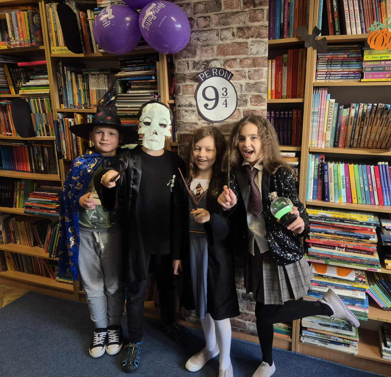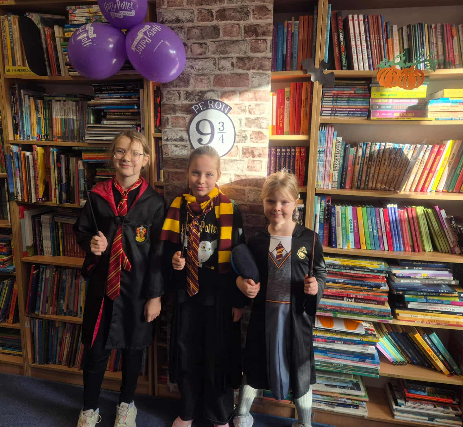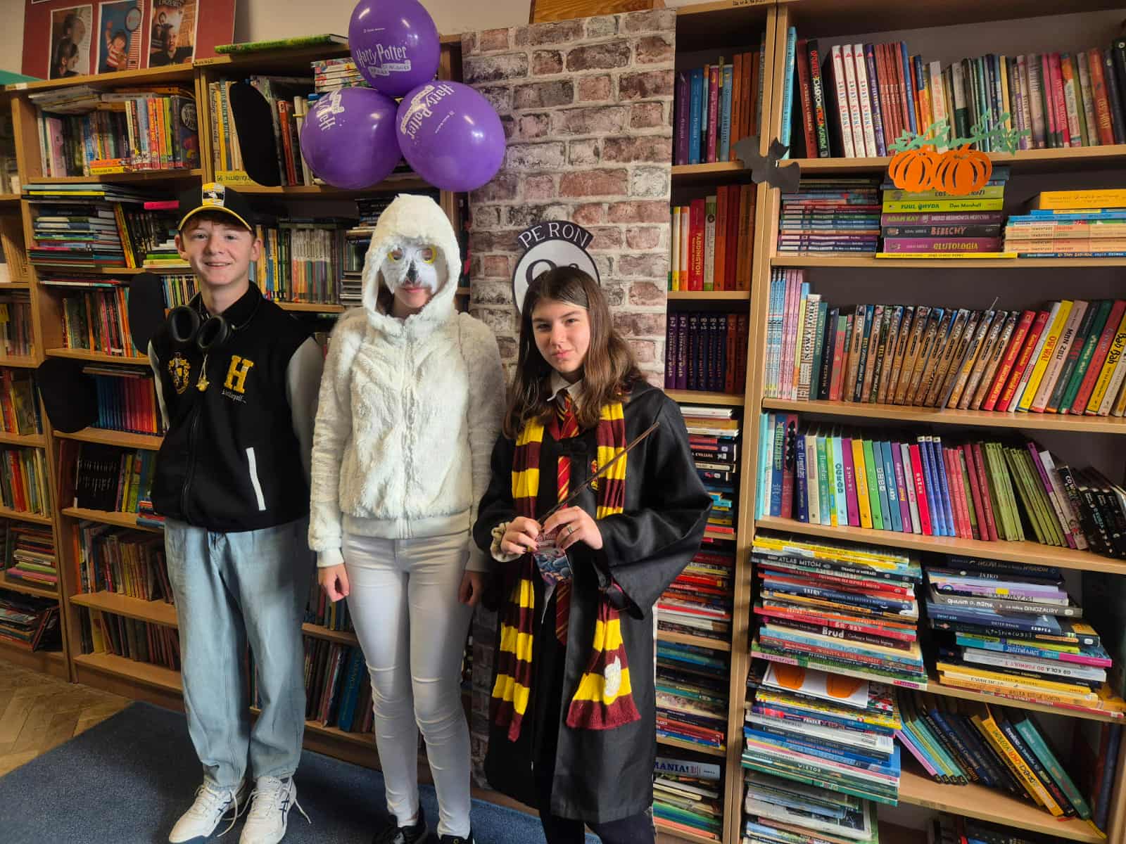 29 października szkolna biblioteka zamieniła się w prawdziwą krainę czarów rodem z Hogwartu! Wszystko za sprawą wyjątkowego wydarzenia pt. „Jesień z Harrym Potterem”, które przyciągnęło tłumy uczniów – zarówno młodszych, jak i starszych – przebranych za ulubione postacie z magicznego świata stworzonego przez J.K. Rowling.