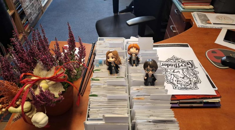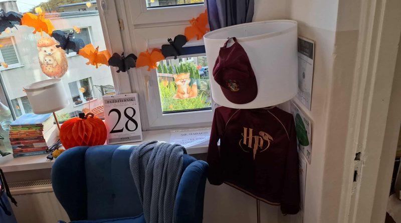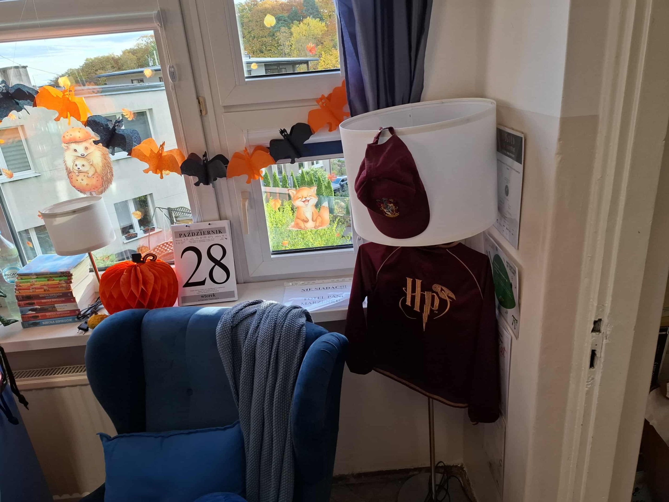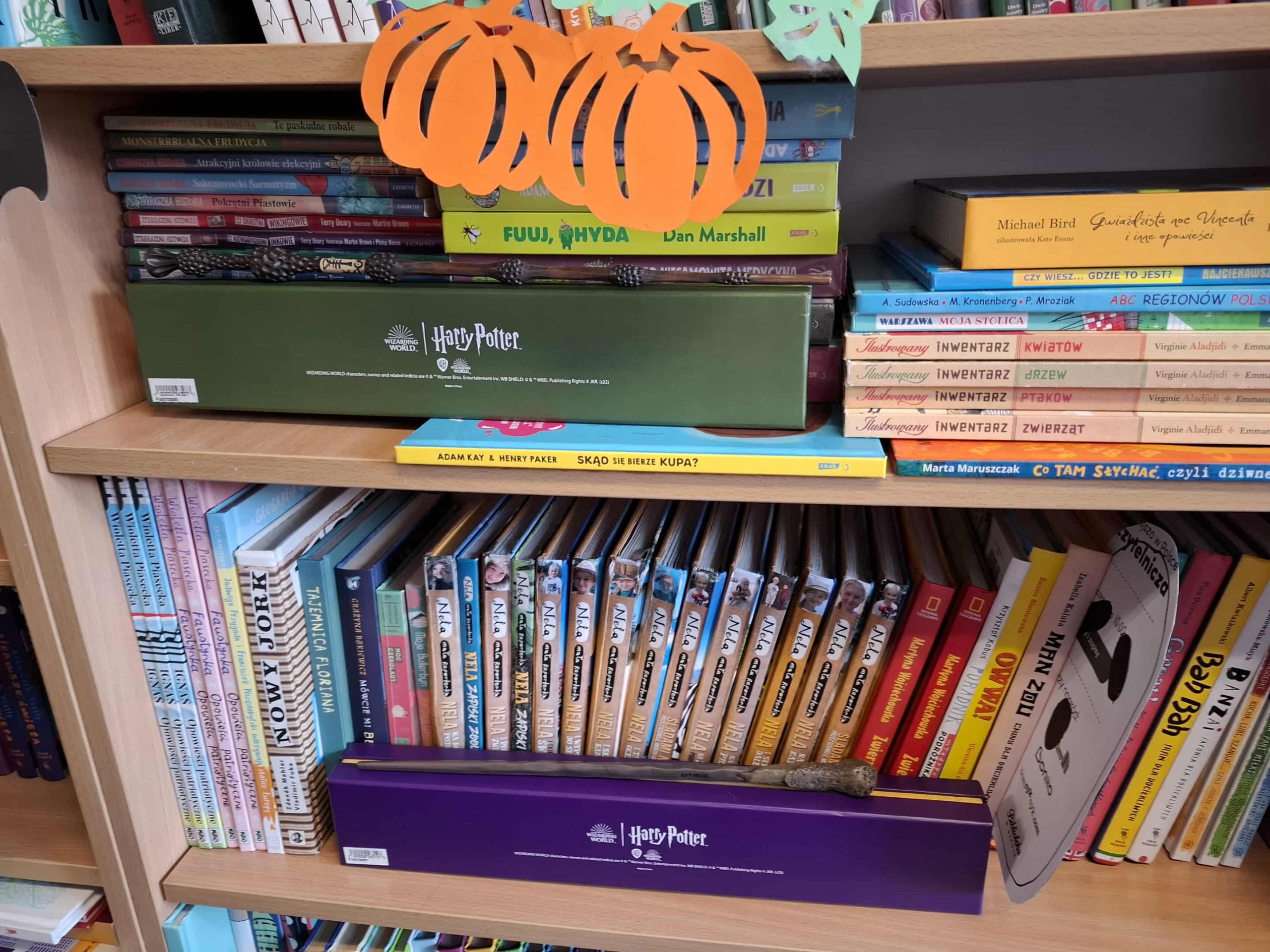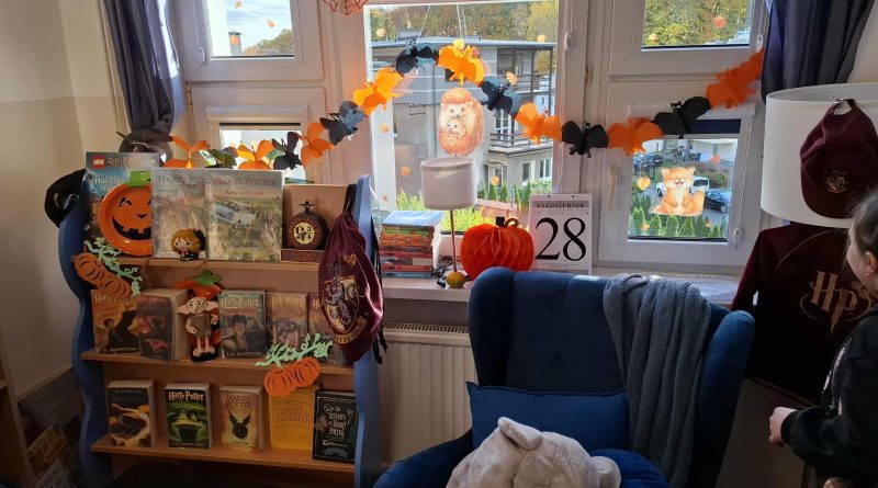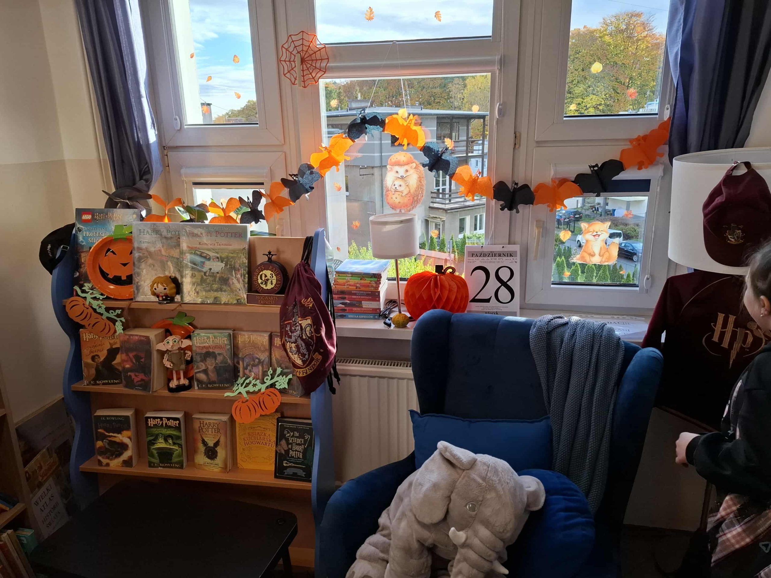 Biblioteka została udekorowana tematycznymi ozdobami, które wprowadzały w klimat magicznego świata. Na specjalnie przygotowanej wystawce można było podziwiać książki z serii o Harrym Potterze oraz liczne gadżety wypożyczone nam przez uczniów – maskotki, figurki z klocków LEGO, różdżki, elementy ubioru i inne zabawki związane z serią.