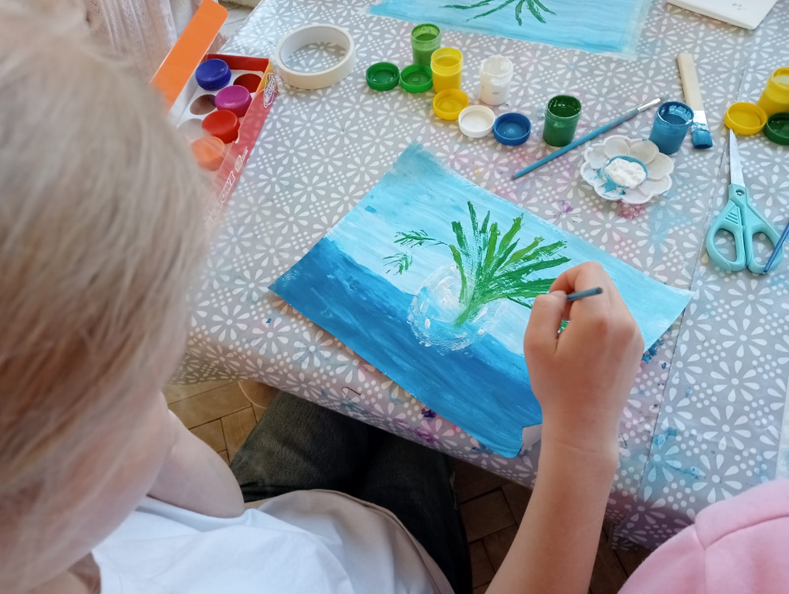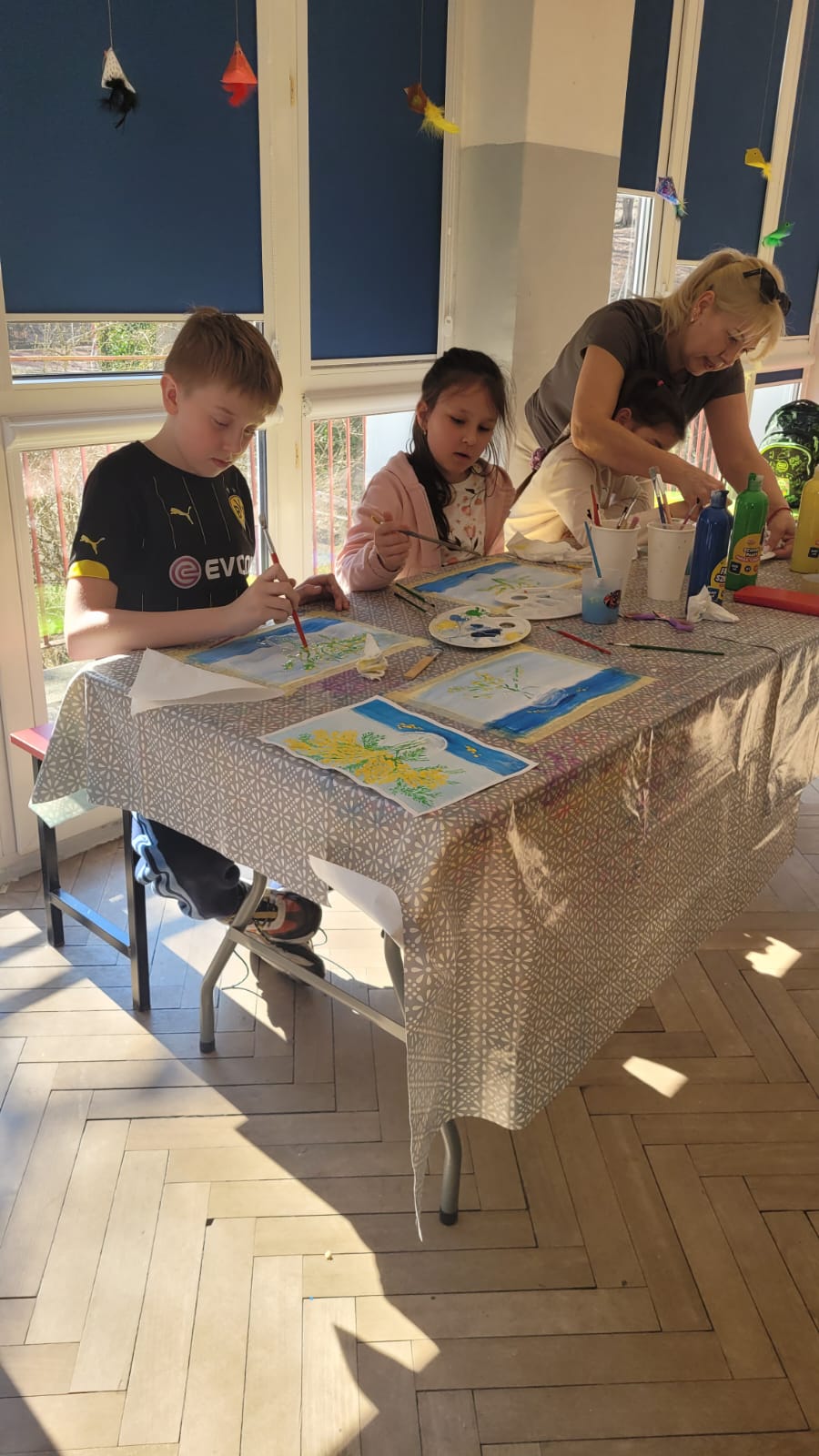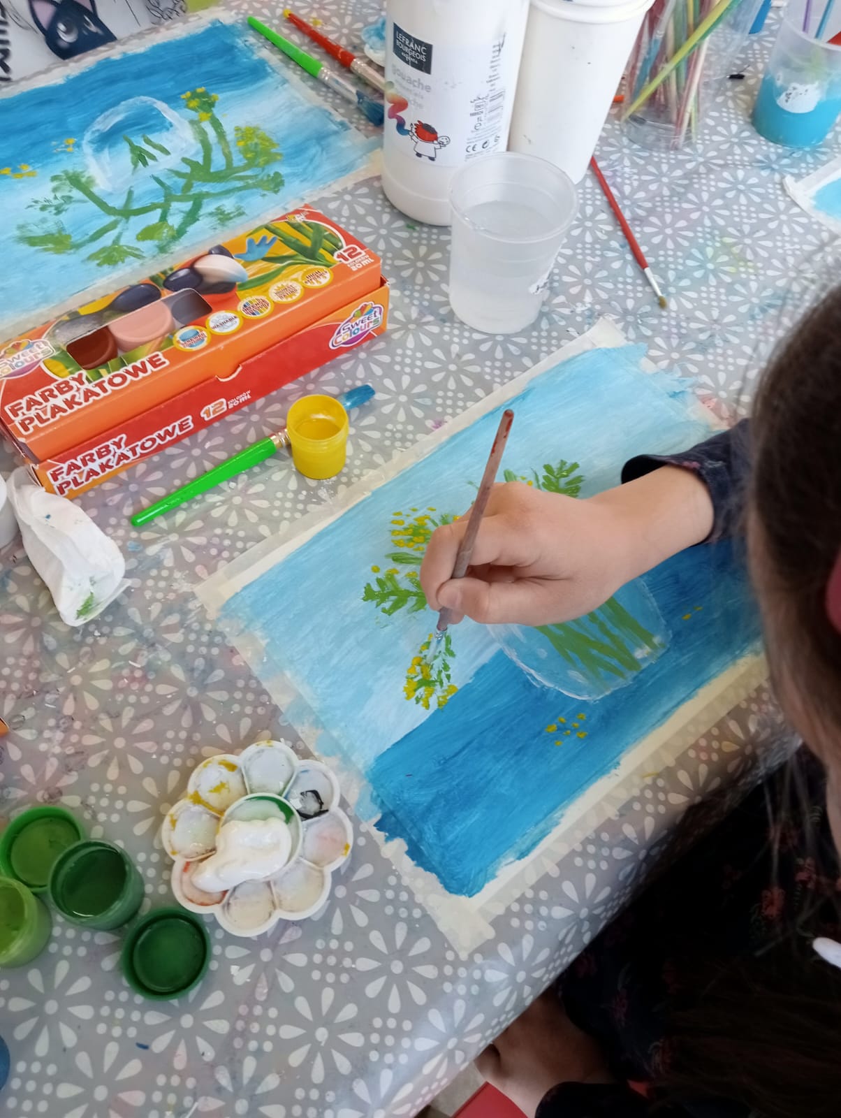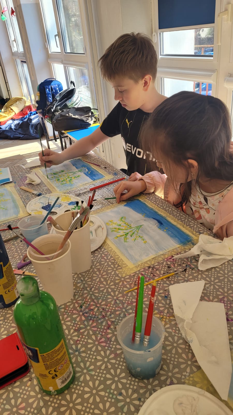 Podczas pobytu w świetlicy dzieci poznają różne techniki malarskie i rozwijają swoje umiejętności artystyczne w twórczej, pełnej pasji atmosferze.