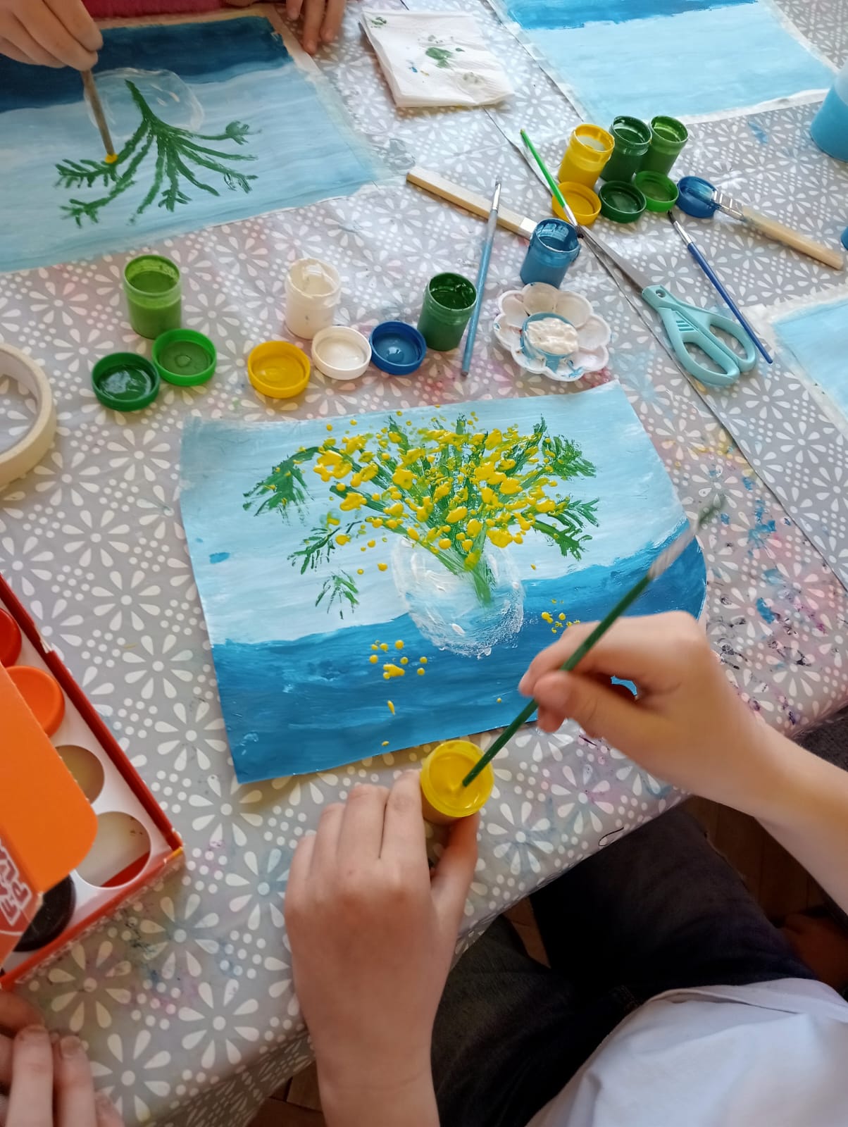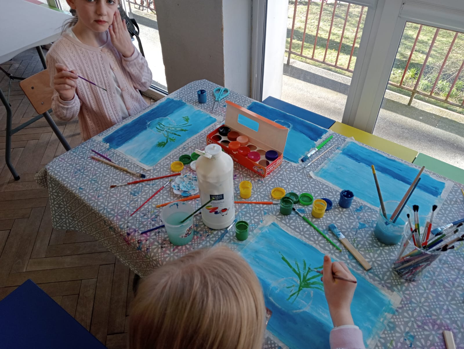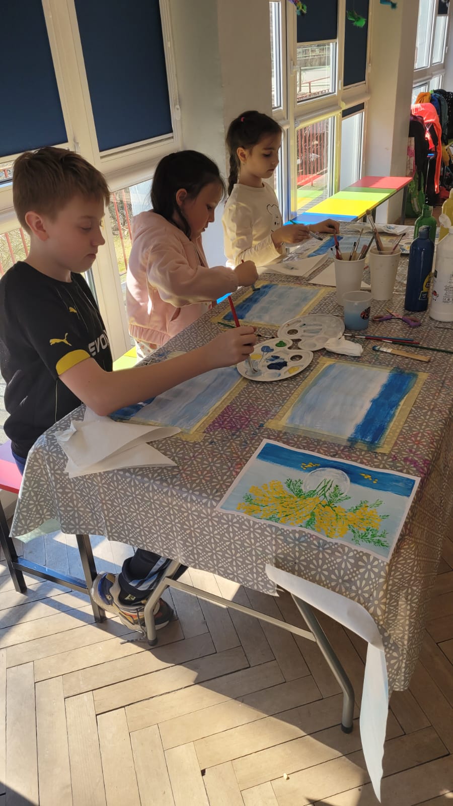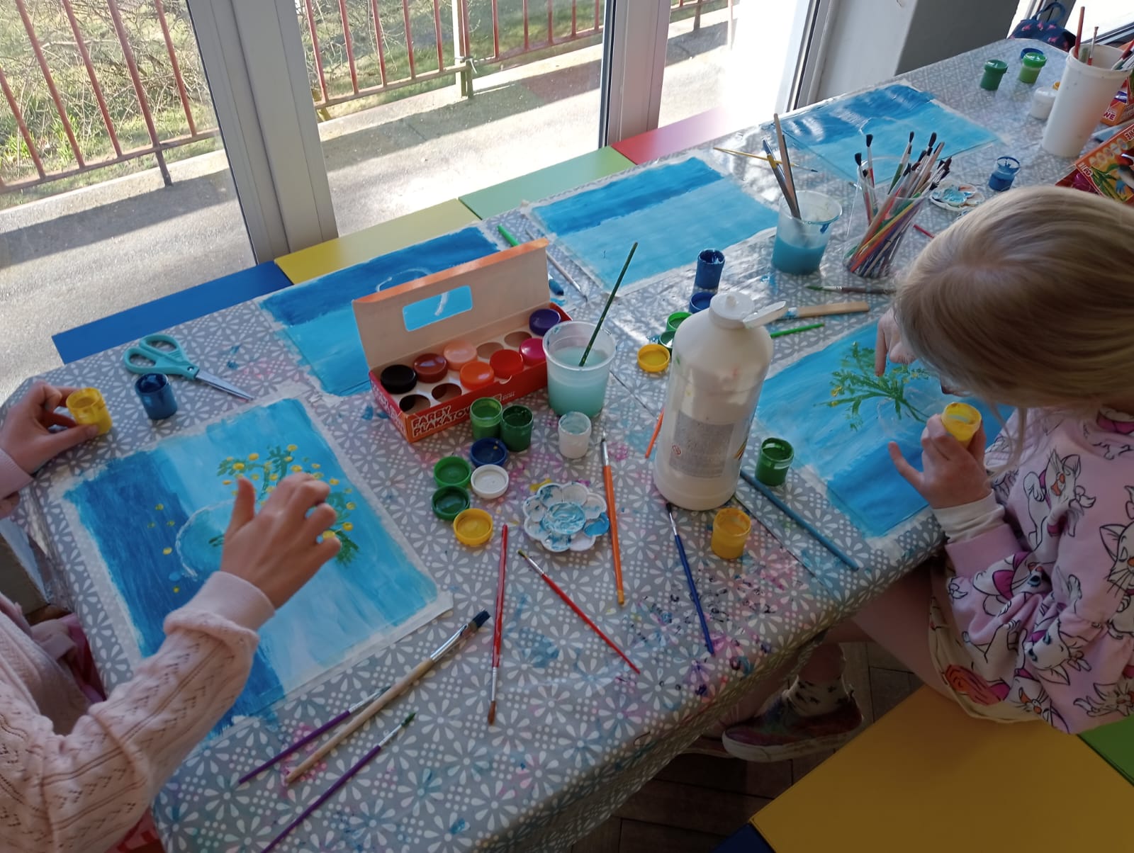 Podczas pobytu w świetlicy dzieci poznają różne techniki malarskie i rozwijają swoje umiejętności artystyczne w twórczej, pełnej pasji atmosferze.