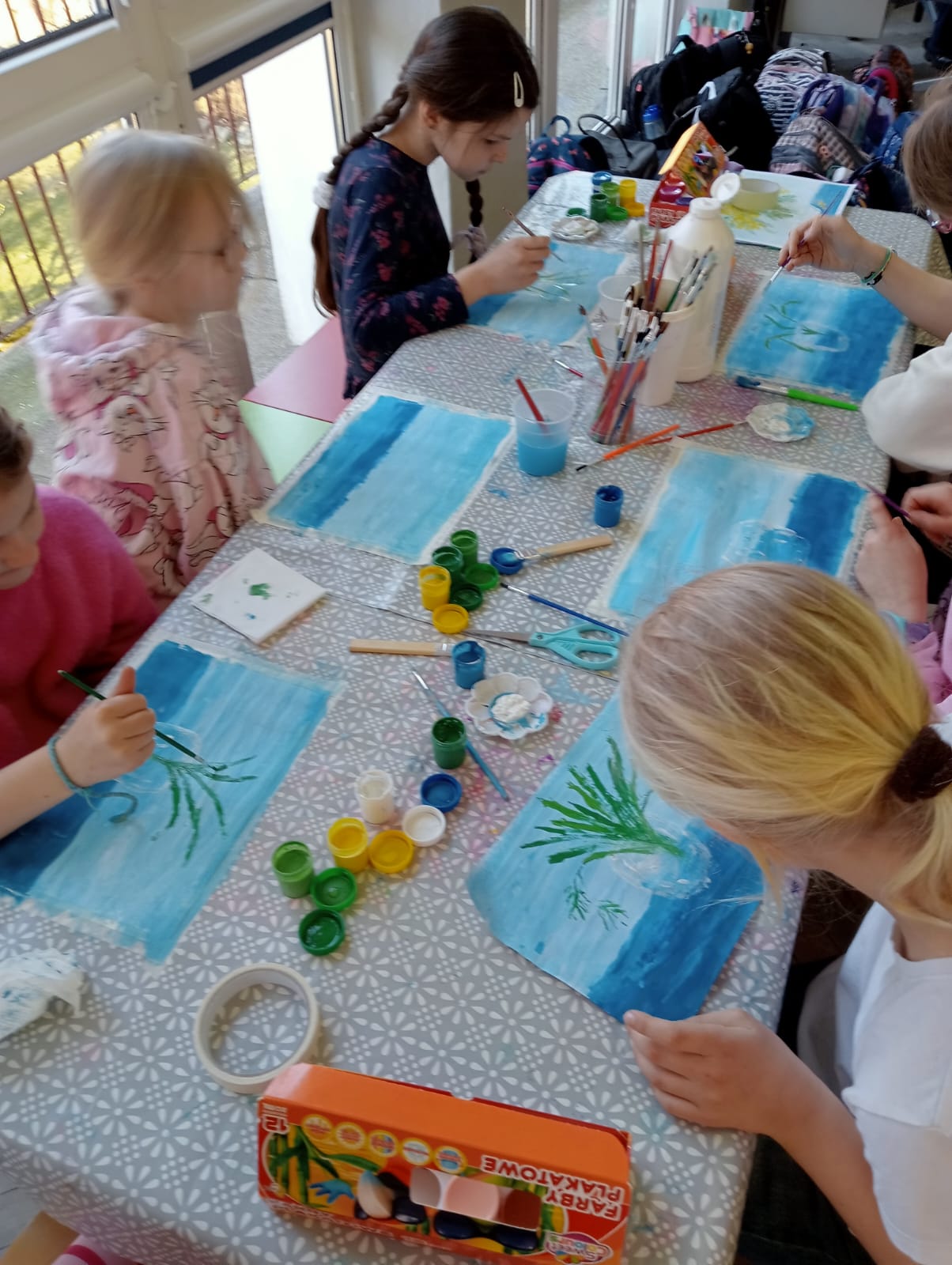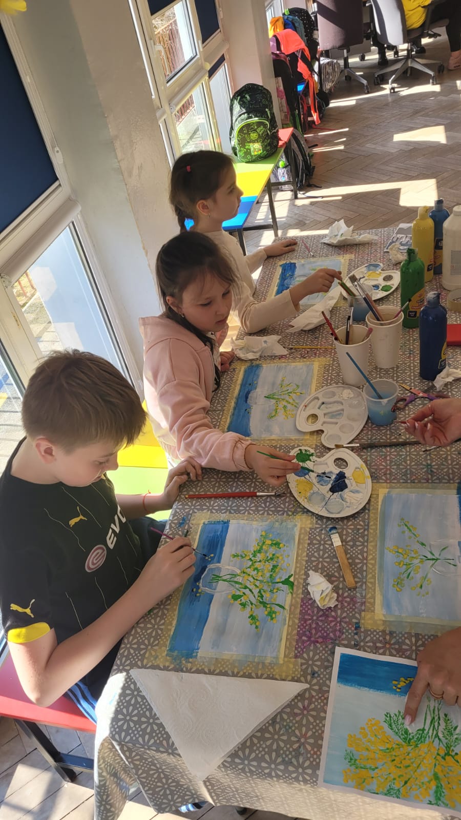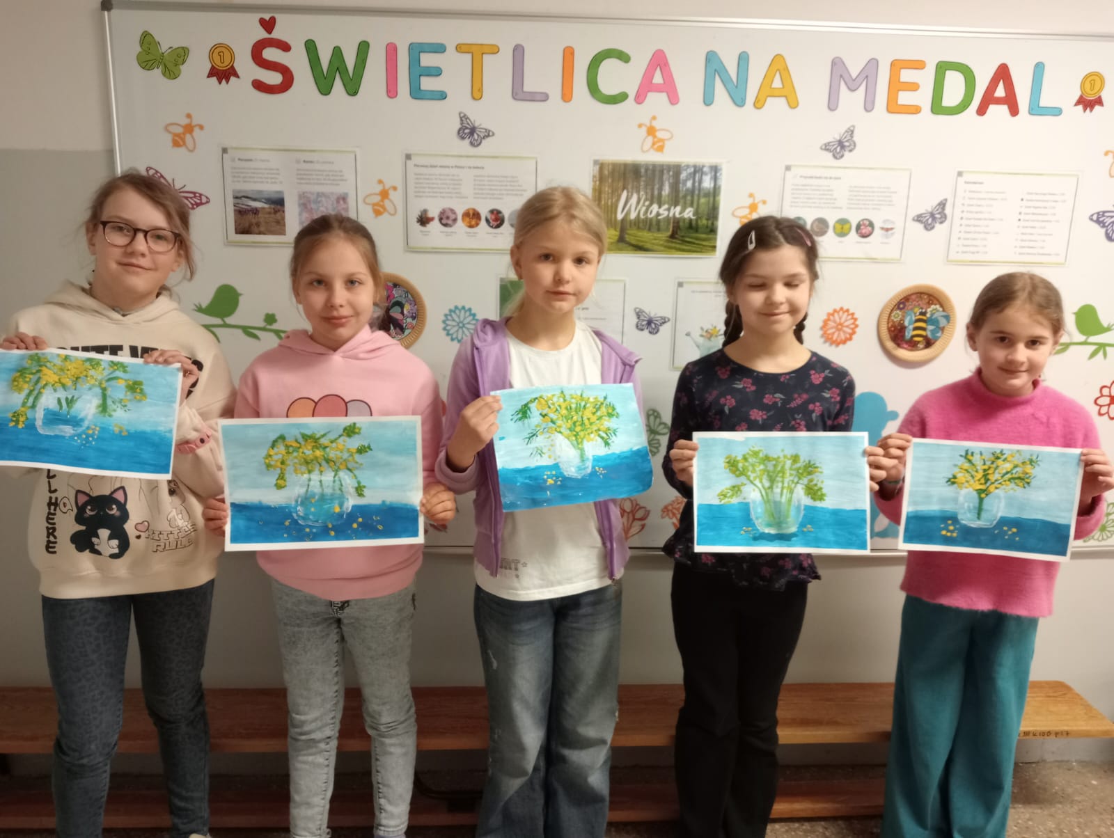 Podczas ostatnich zajęć plastycznych w świetlicy uczniowie stworzyli piękne obrazy inspirowane budzącą się do życia naturą. Dzieci uczyły się, jak stopniowo przenosić kompozycję na płaszczyznę, zachowując proporcje, realizując jednocześnie własną wizję przestrzenną i kształtując indywidualny styl w malarstwie.