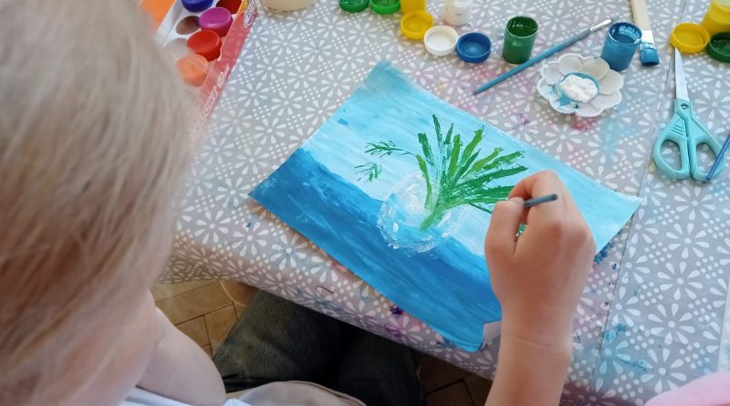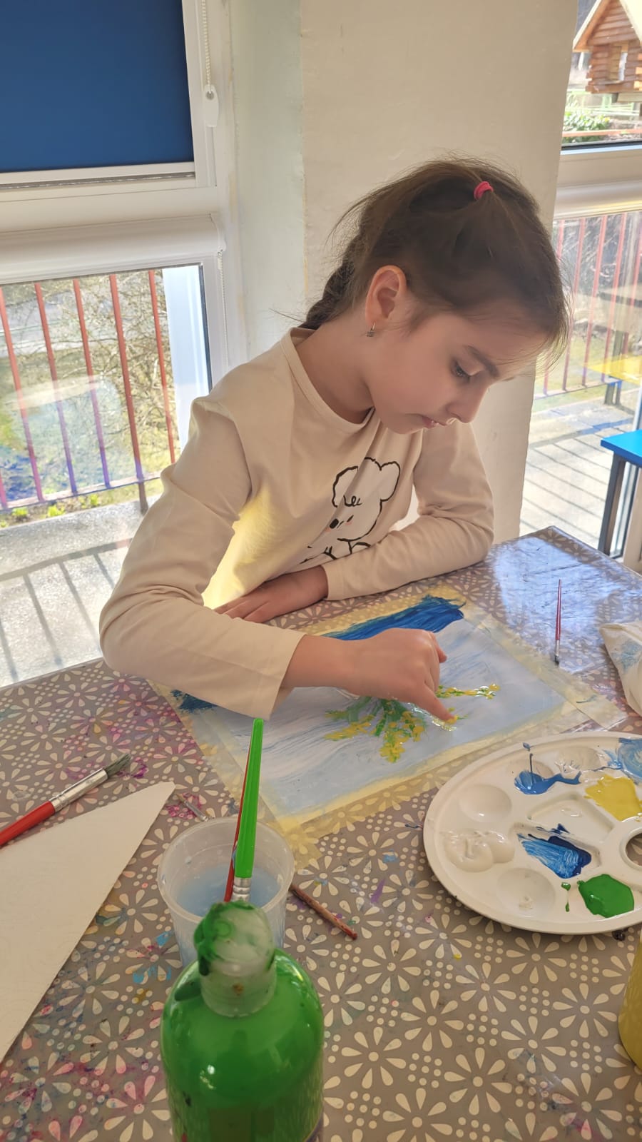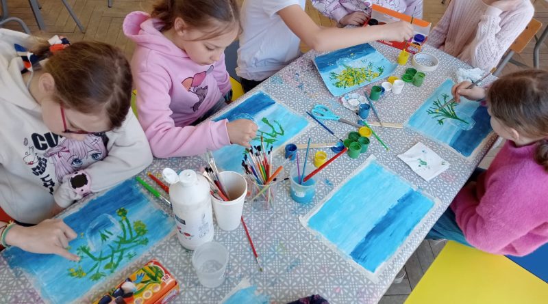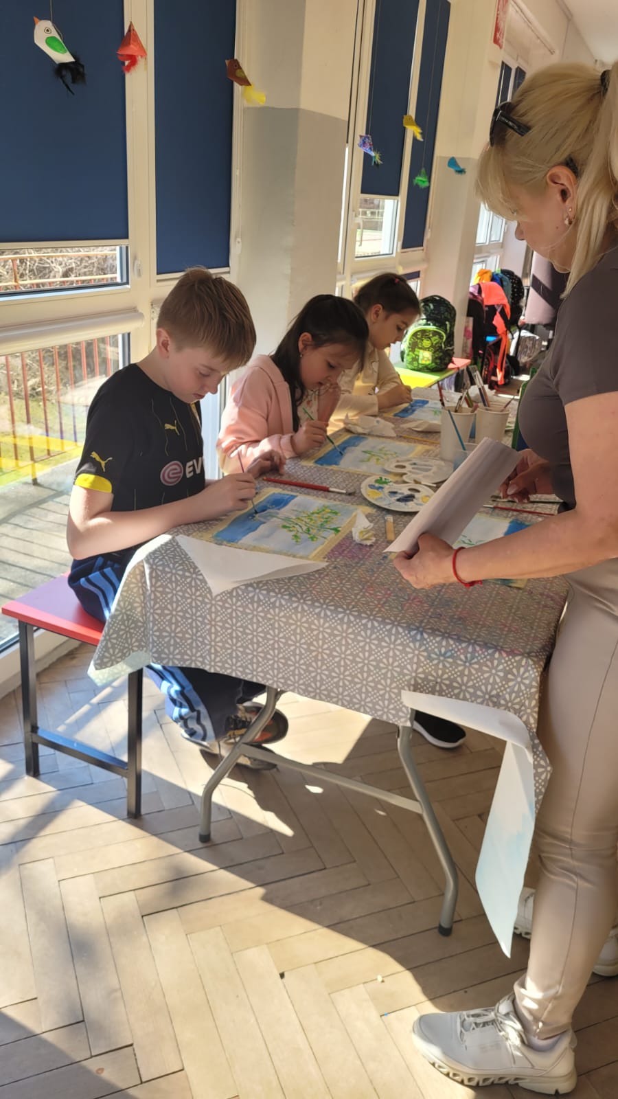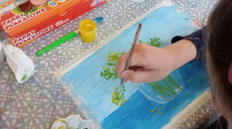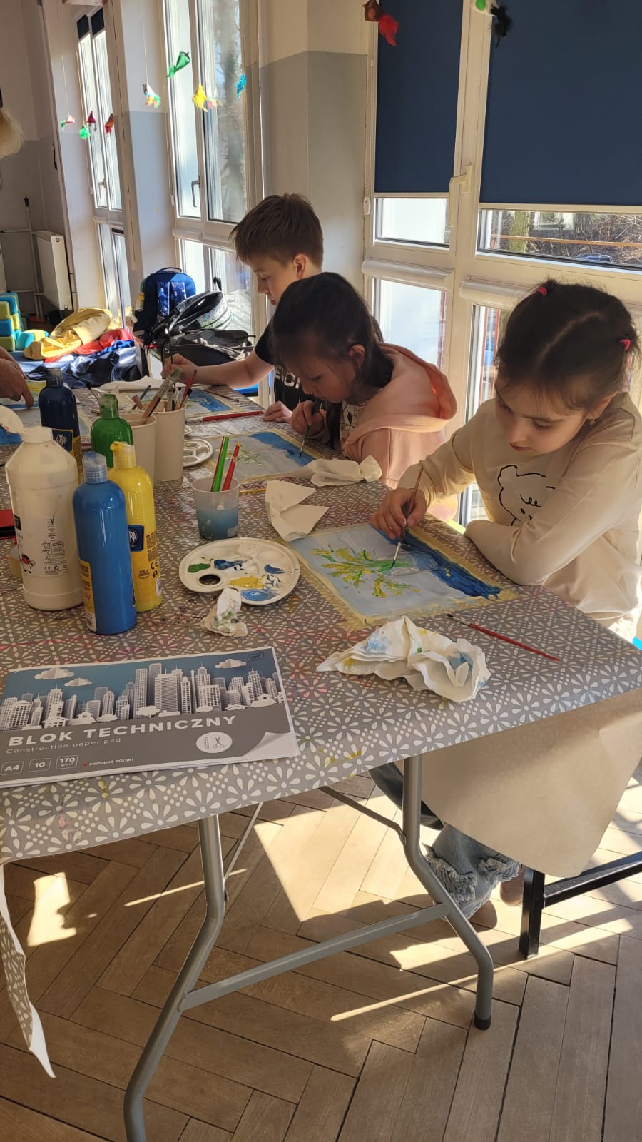 Podczas ostatnich zajęć plastycznych w świetlicy uczniowie stworzyli piękne obrazy inspirowane budzącą się do życia naturą. Dzieci uczyły się, jak stopniowo przenosić kompozycję na płaszczyznę, zachowując proporcje, realizując jednocześnie własną wizję przestrzenną i kształtując indywidualny styl w malarstwie.