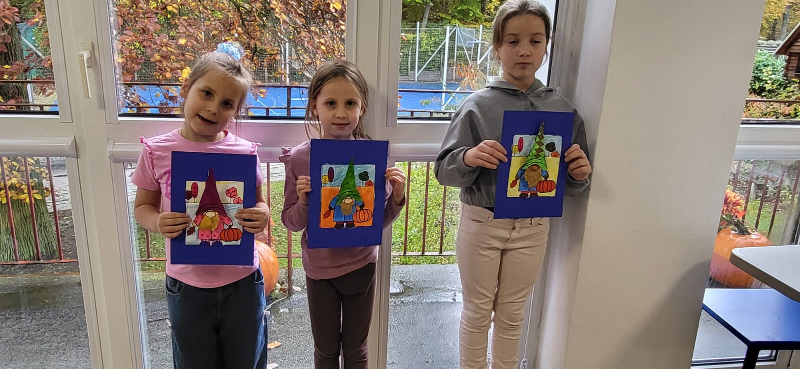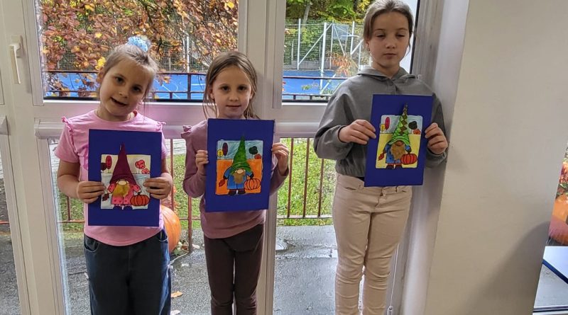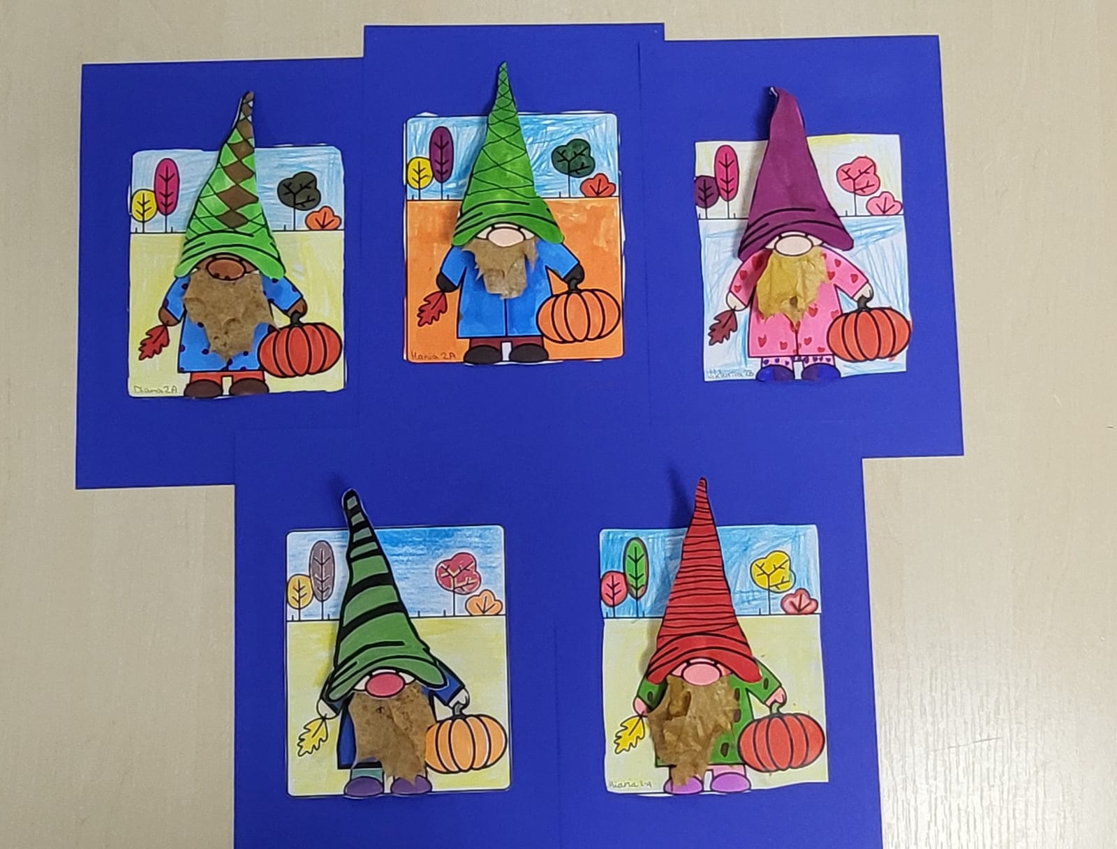 Dziś na zajęciach plastycznych w świetlicy powstały wesołe, kolorowe skrzaty – każdy z nich ma własny charakter, czapkę w ulubionych barwach i jesienną brodę z prawdziwego liścia!