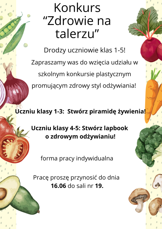 Zapraszamy was do wzięcia udziału w szkolnym konkursie promującym zdrowy styl odżywiania!