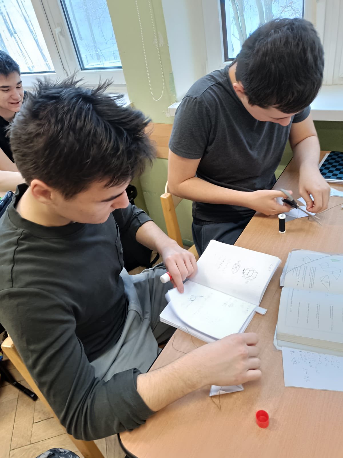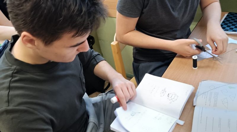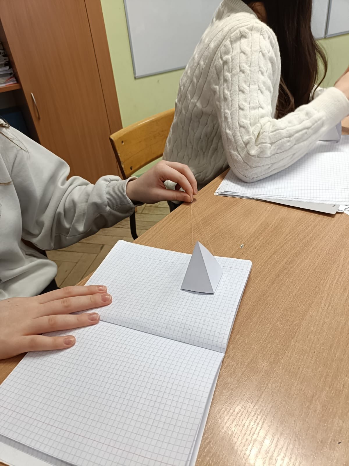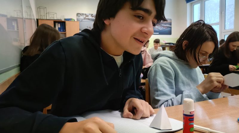 Dziś w klasie 8 a matematyka wyszła z zeszytów! Z siatki ostrosłupa powstały przestrzenne modele – było precyzyjnie, twórczo i bardzo geometrycznie.