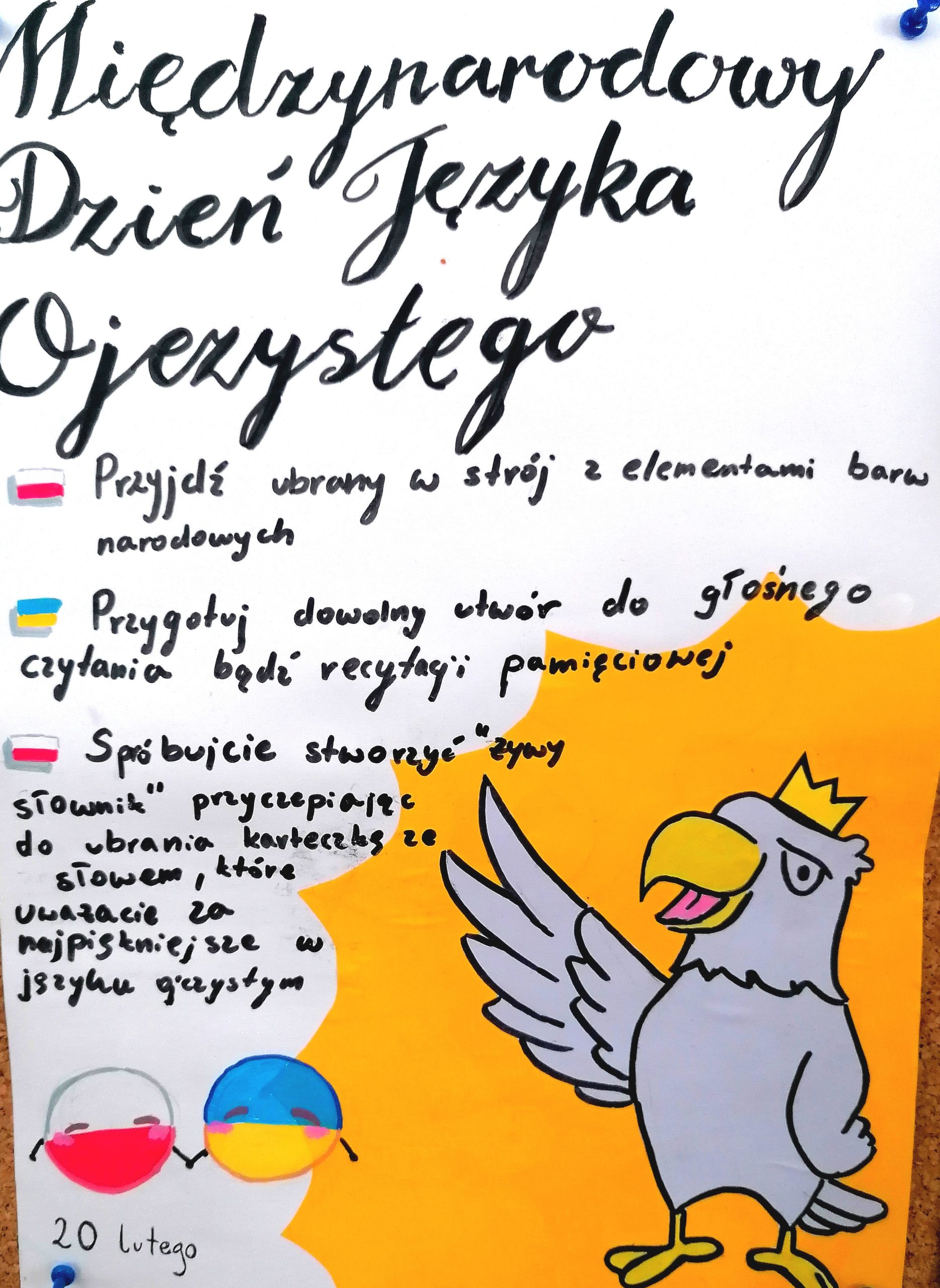 Międzynarodowy Dzień Języka Ojczystego (International Mother Language Day) to święto, którego celem jest ochrona różnorodności językowej jako dziedzictwa kulturowego. Dla Polaków powinno być to ważne wydarzenie, ponieważ nasz język jest wyjątkowy i piękny, choć także trudny. Trzeba więc go pielęgnować, a Międzynarodowy Dzień Języka Ojczystego jest do tego dobrą okazją. Nie mogliśmy pominąć tego święta w życiu naszej społeczności szkolnej.