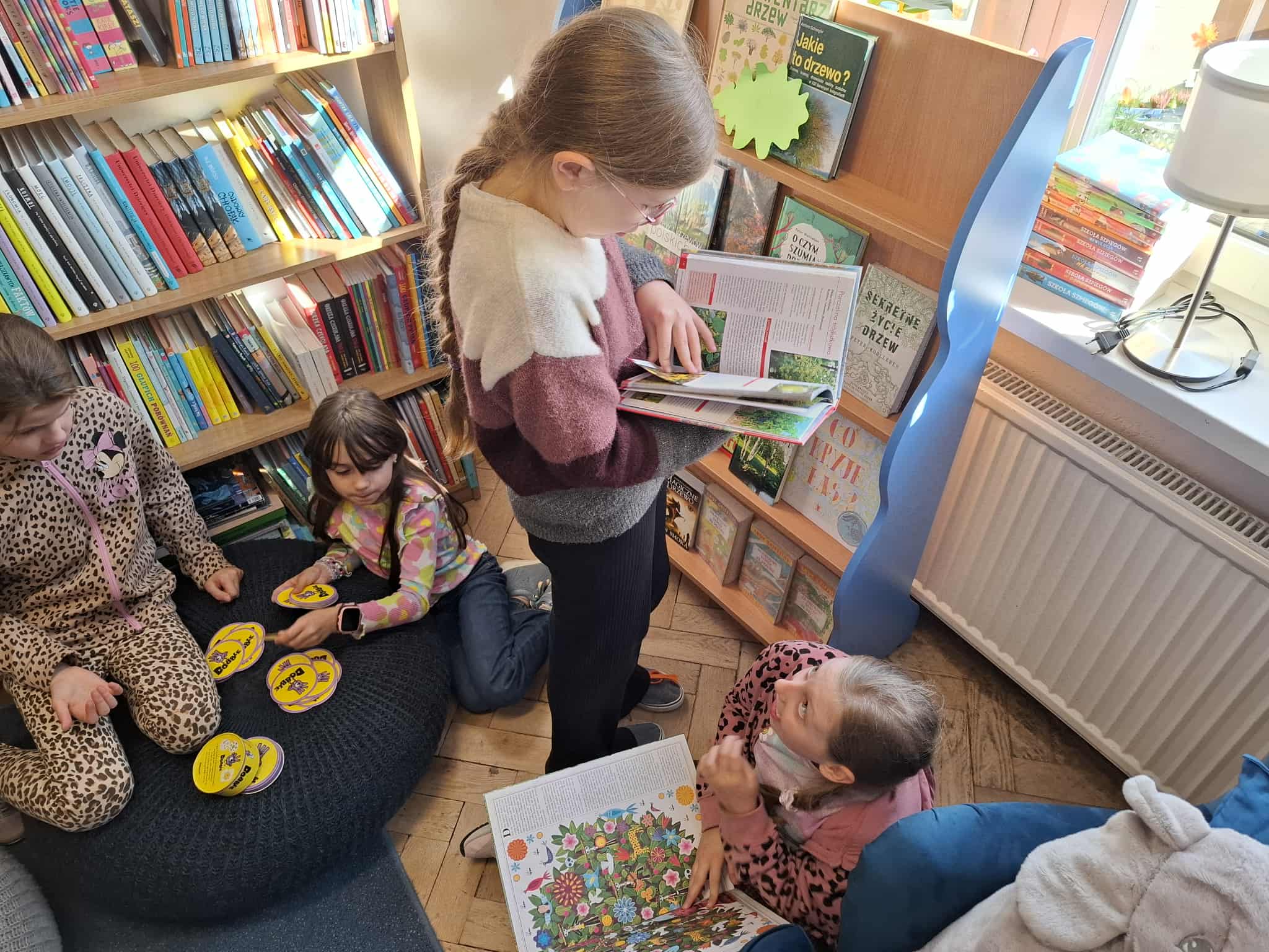 Na miłośników przyrody czekała wystawka ciekawych książek o drzewach, które zachęcały do poznawania tajemnic świata roślin. Uczniowie mogli również zmierzyć się z kartami pracy, łamigłówkami i zagadkami tematycznymi, rozwijając swoją wiedzę i spostrzegawczość.
