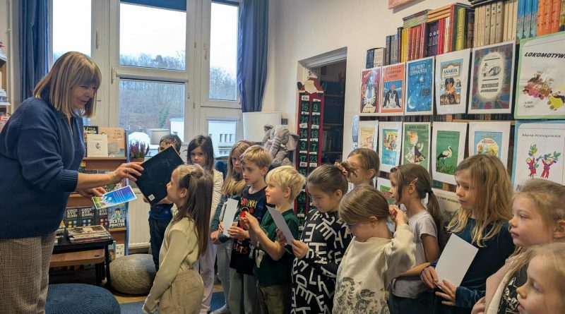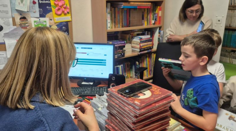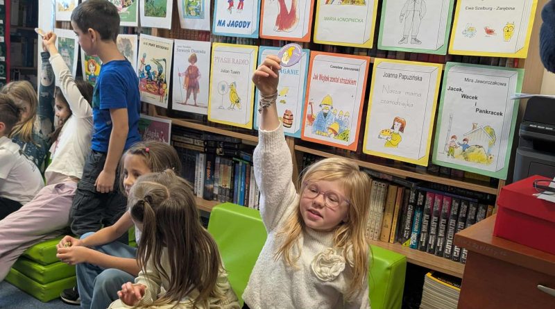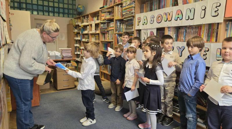 Kulminacyjnym momentem było uroczyste złożenie bibliotecznego przyrzeczenia, po którym każdy pierwszak otrzymał imienny dyplom oraz wyprawkę czytelniczą – za którą serdecznie dziękujemy Instytutowi Książki. Do wyprawek dołączyliśmy piękne zakładki, kolorowanki i drobne słodkości.
