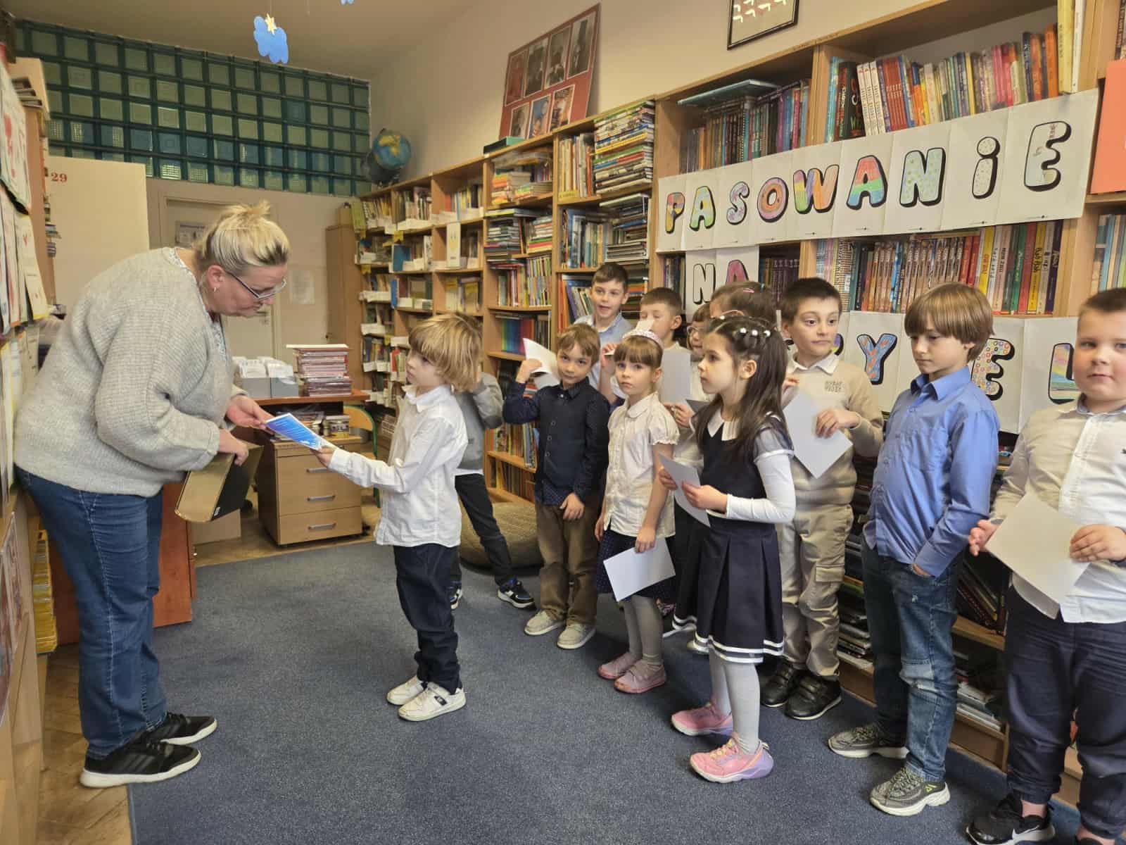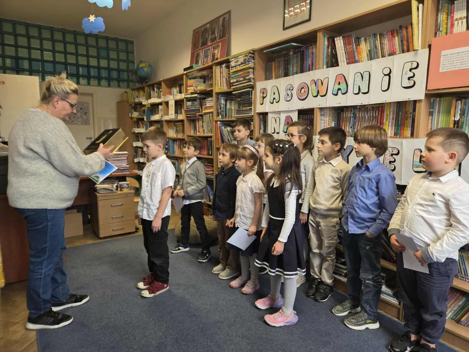 Podczas uroczystości nie zabrakło piosenek o książkach i bibliotece, a na zakończenie każdy uczeń wybrał i wypożyczył swoją pierwszą książeczkę, którą z dumą zabrał do domu. Radość i uśmiechy na twarzach dzieci były najlepszym dowodem na to, że spotkanie było udane!