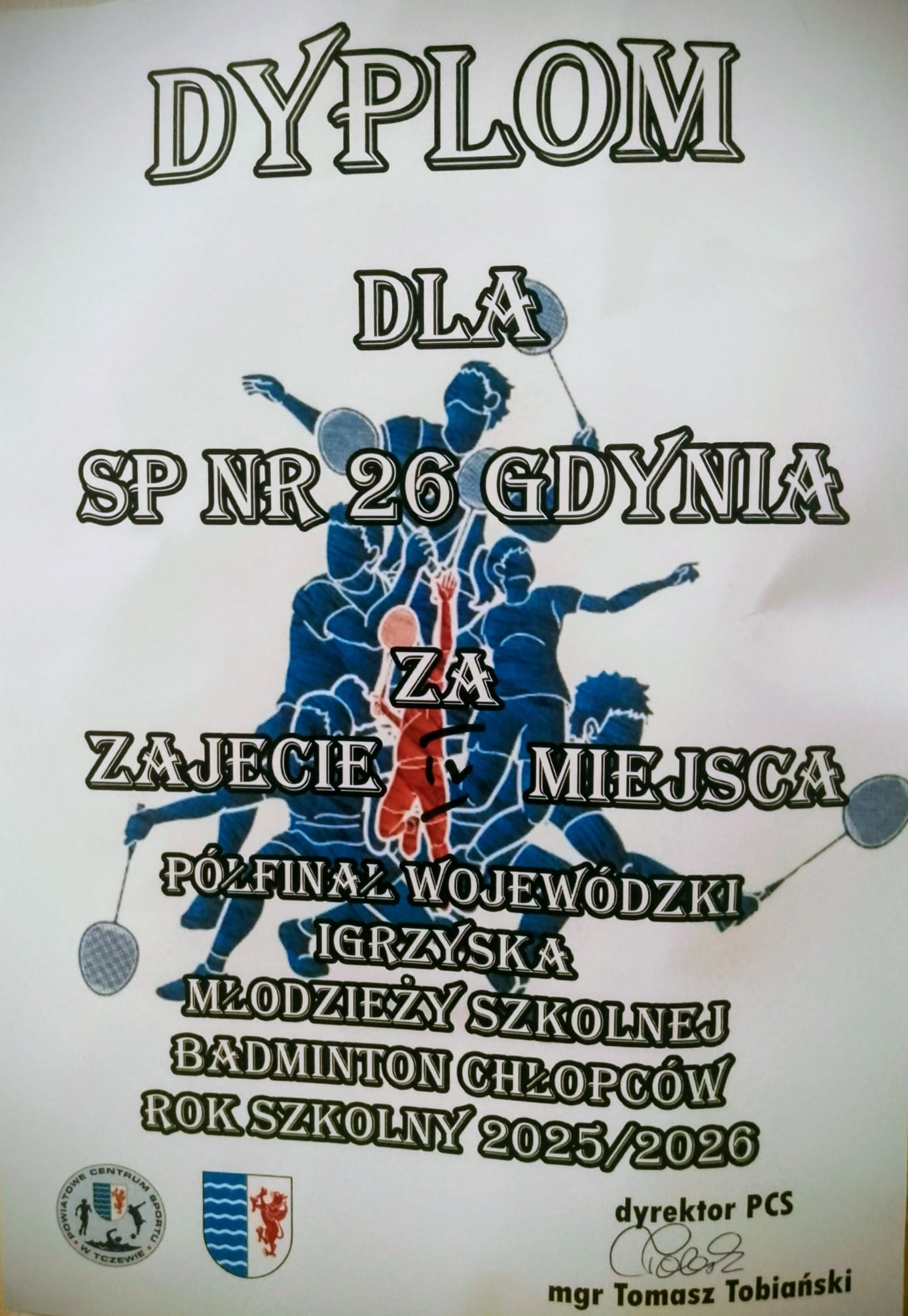 W piątek chłopcy z naszej szkoły jechali do Gniewu na Półfinały Wojewódzkie Igrzysk Młodzieży Szkolnej w Badmintona. Uczniowie zajęli IV miejsce. Gratulujemy