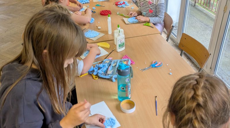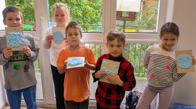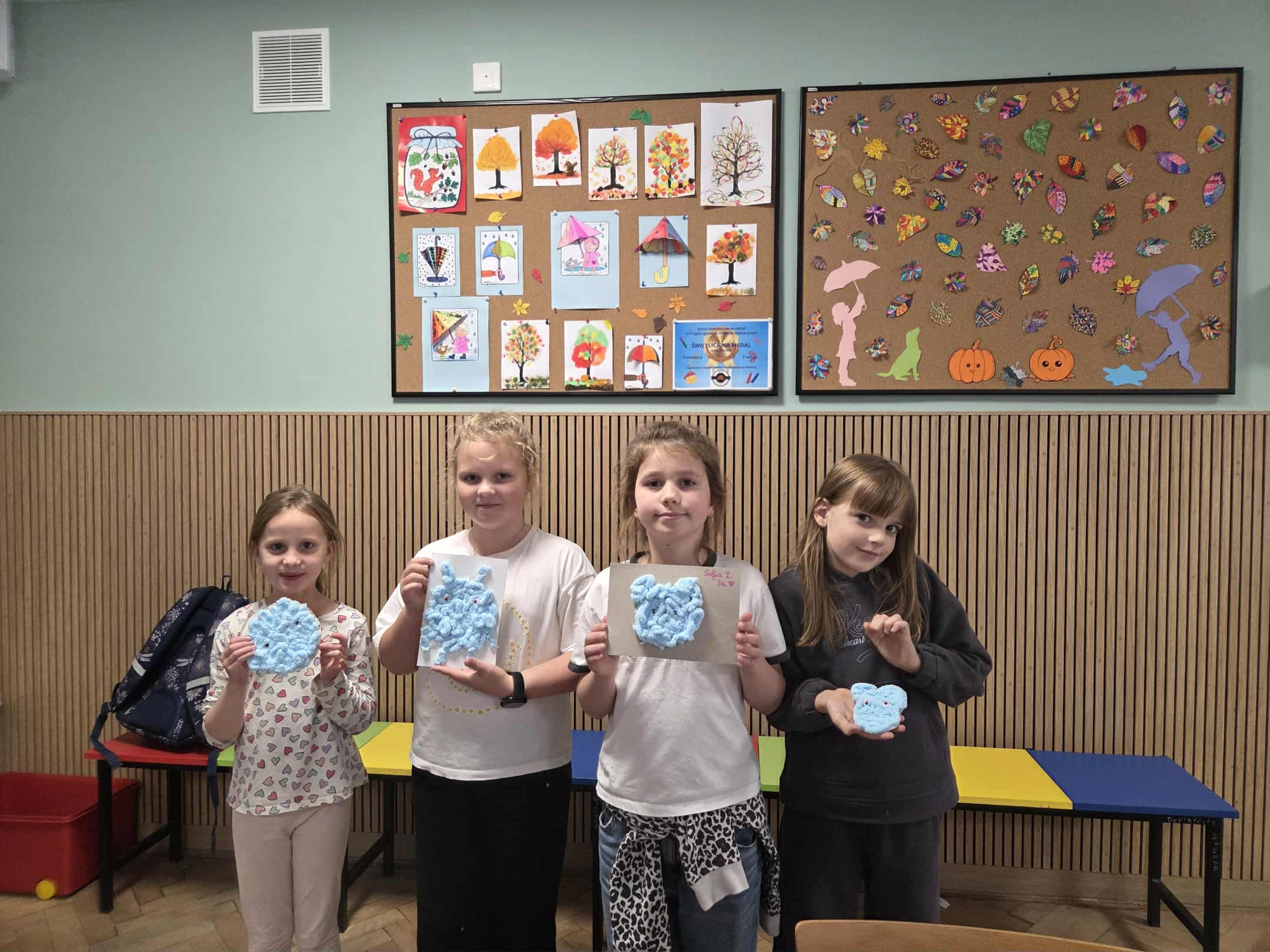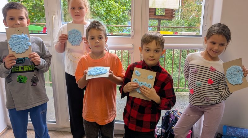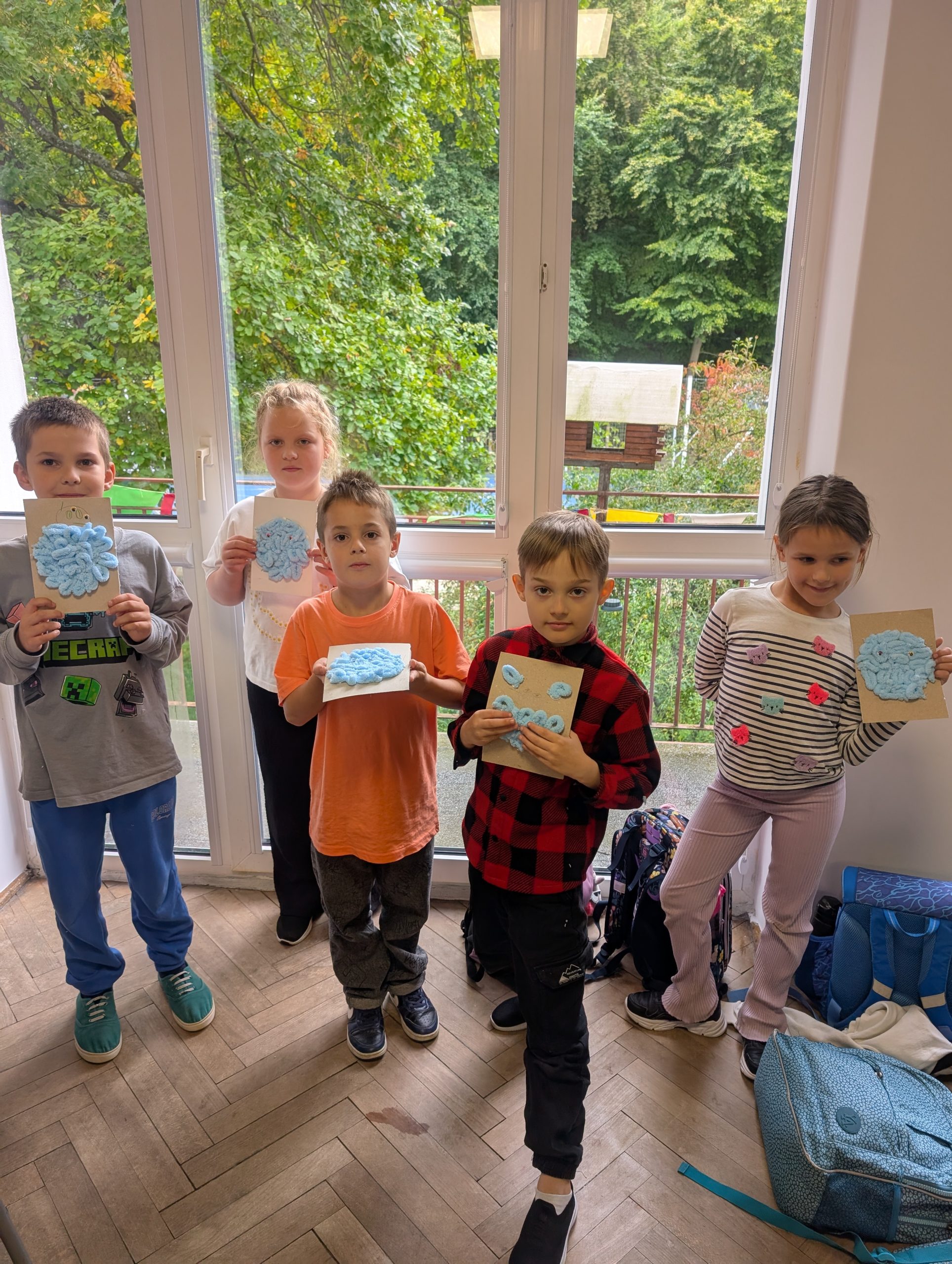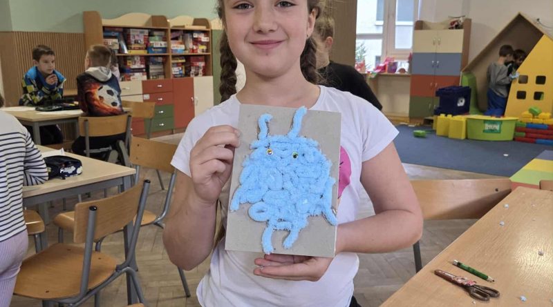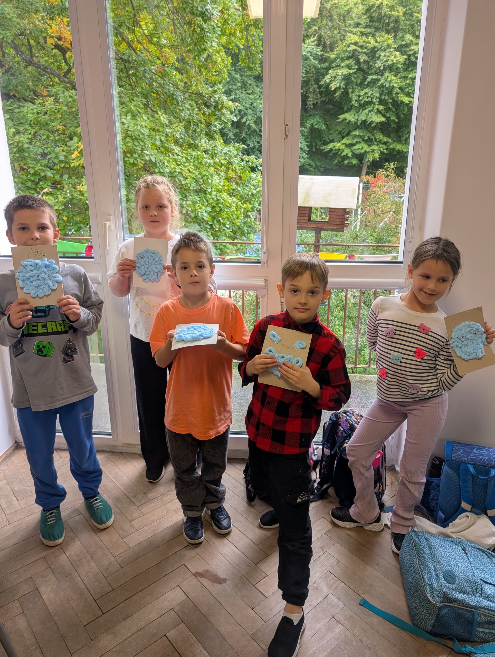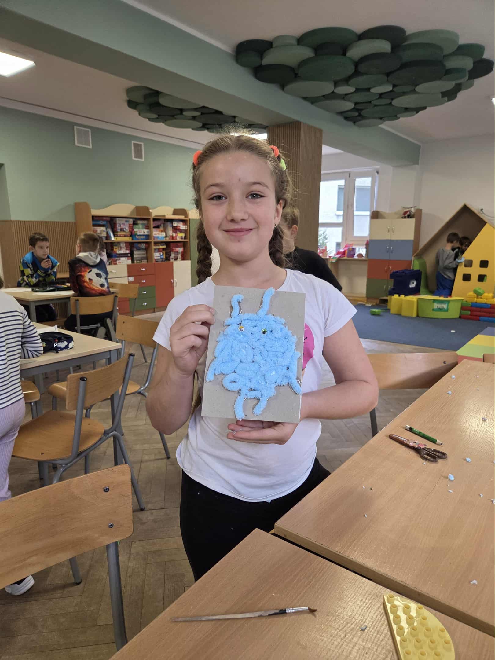 Dzieci wysłuchały bajkę o „Bubie i potworze z kąta”, a następnie – z ogromną wyobraźnią i zaangażowaniem – stworzyły własne potworki z niebieskiej włóczki.
