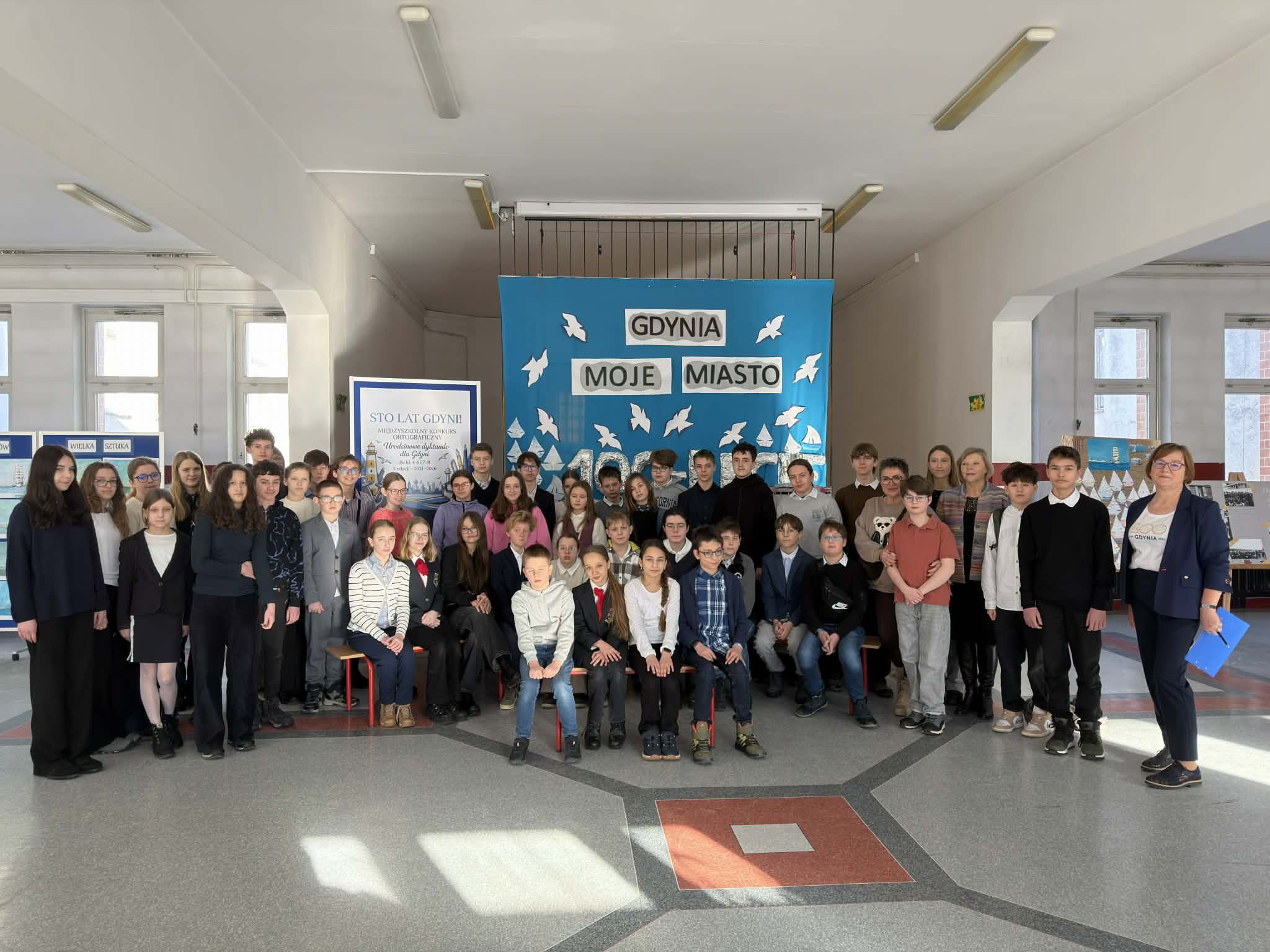 W dniu 16 lutego 2026 roku uczniowie naszej szkoły: Kinga S. z klasy Va, Stanisław K. z Vb, Julia Cz. z VIIIa oraz Tymoteusz J. z VIIIb, wzięli udział w V Międzyszkolnym Konkursie Ortograficznym „Urodzinowe dyktando dla Gdyni”.