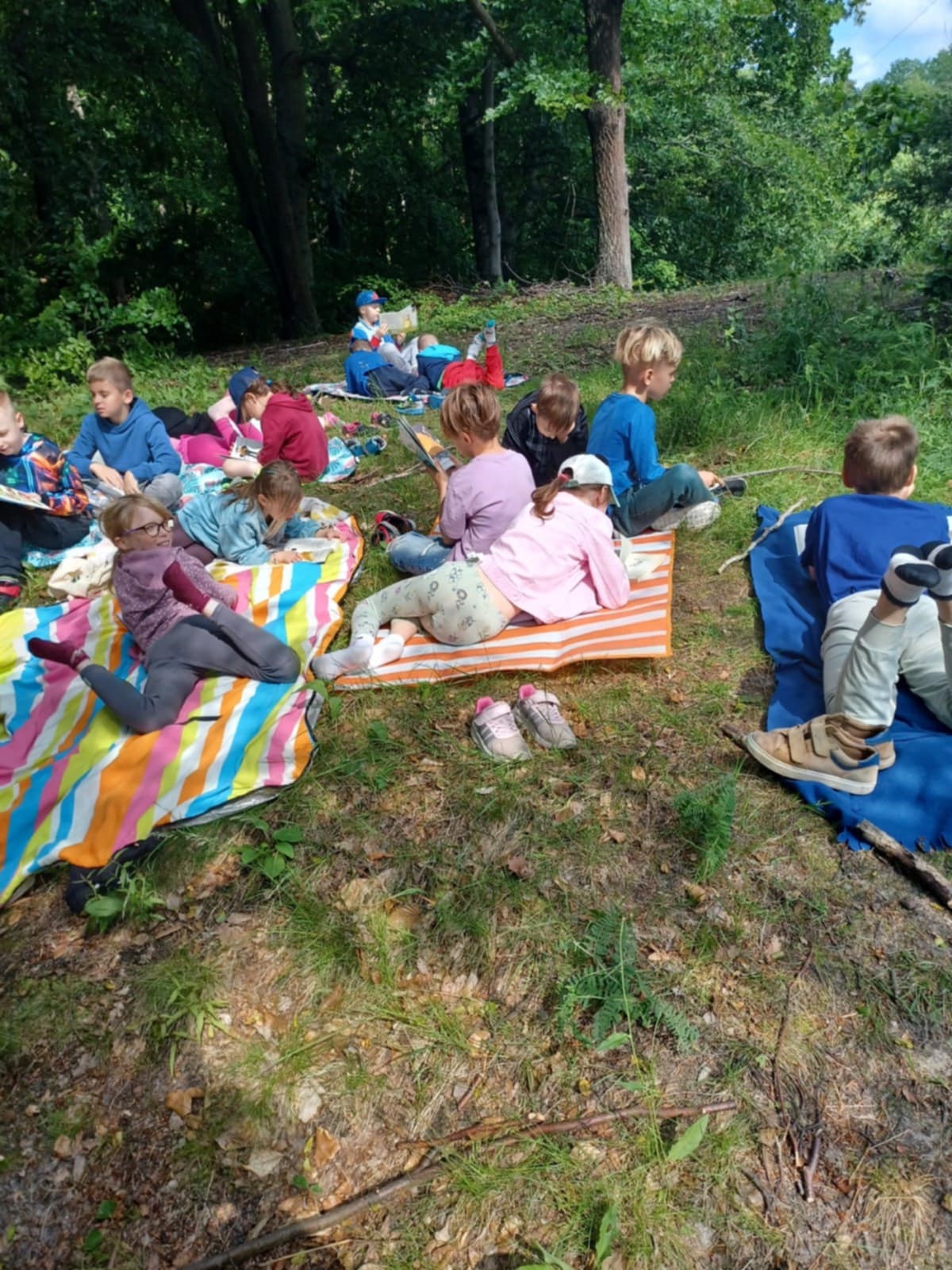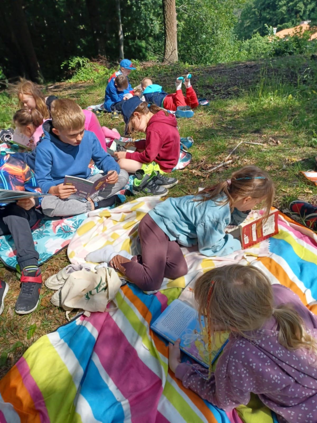 Dnia 12 czerwca nasza szkoła po raz kolejny wzięła udział w Międzynarodowej Akcji „Czytanie na Polanie – edycja 2025”. W słoneczny dzień dzieci ruszyły poza mury szkoły ze swoimi  ulubionymi książkami, by oddać się pasji czytania w otoczeniu przyrody. Wydarzenie przebiegło w miłej atmosferze, przynosząc dzieciom chwile wyciszenia i relaksu oraz możliwość czerpania przyjemności z czytania.