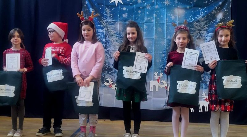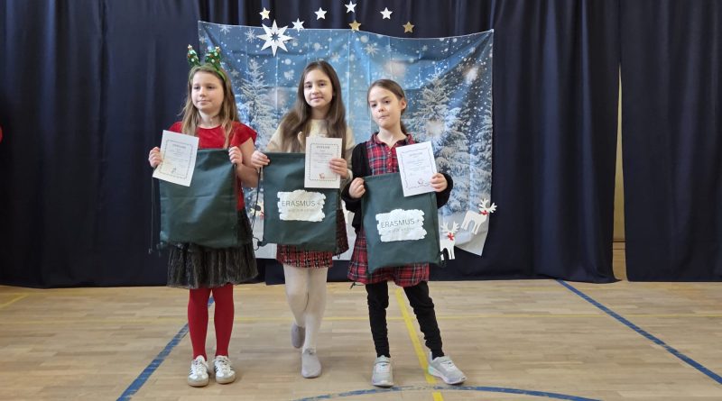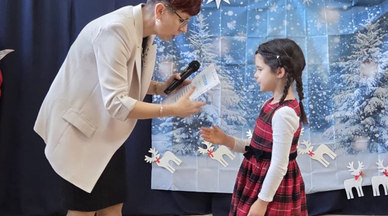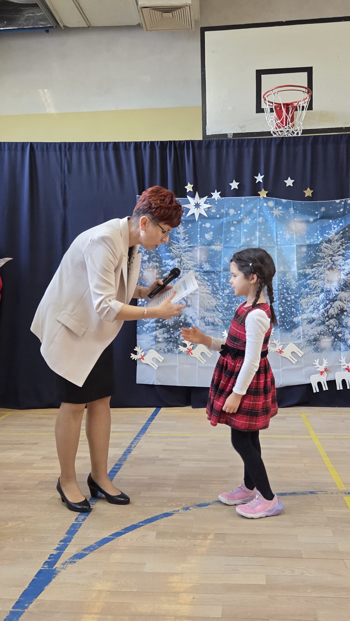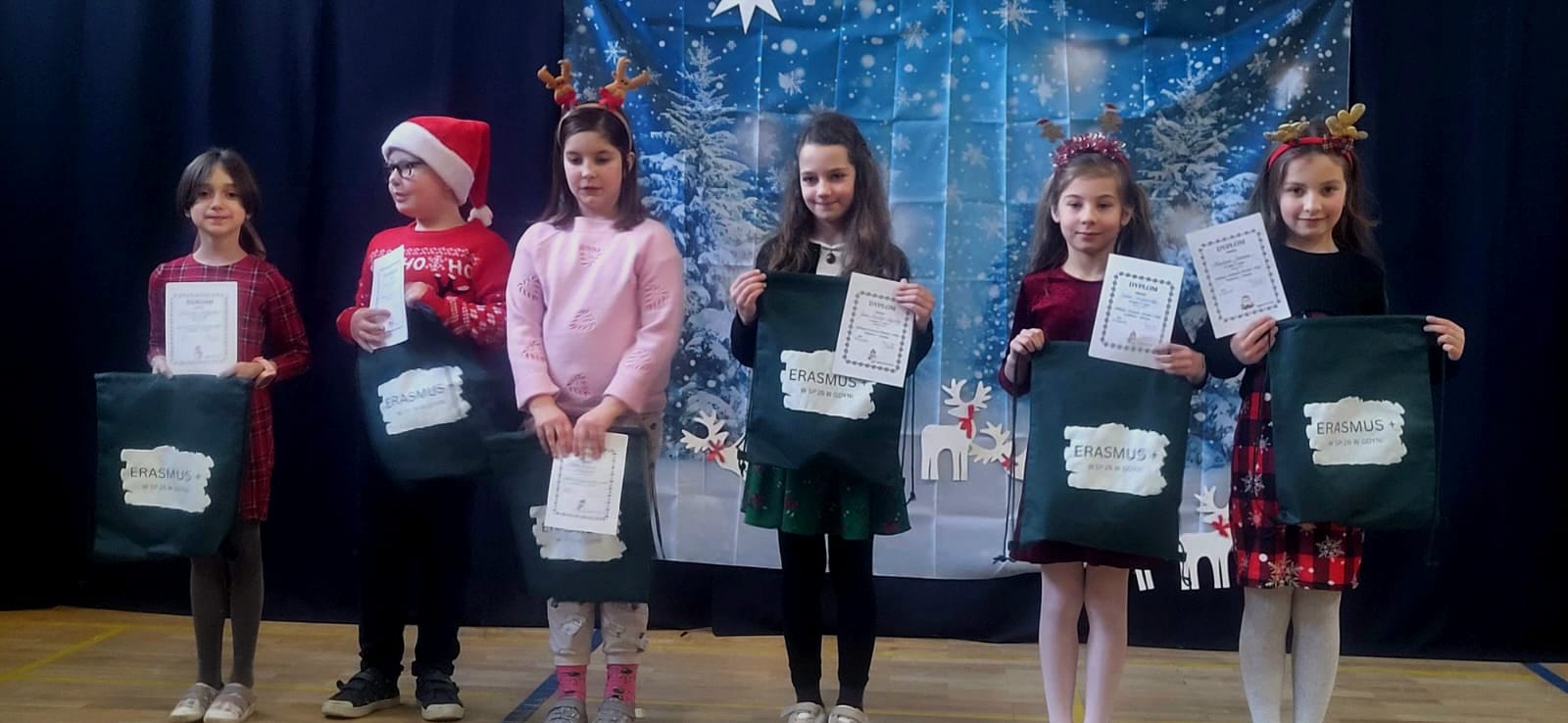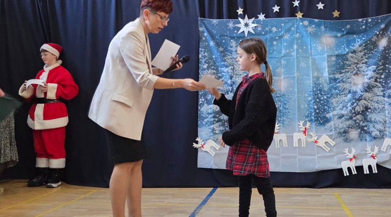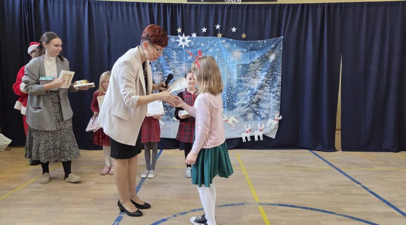 W piątek na sali gimnastycznej odbyło się uroczyste spotkanie świąteczne. Wręczono nagrody laureatom konkursów, a Pani Dyrektor złożyła wszystkim serdeczne życzenia świąteczne.