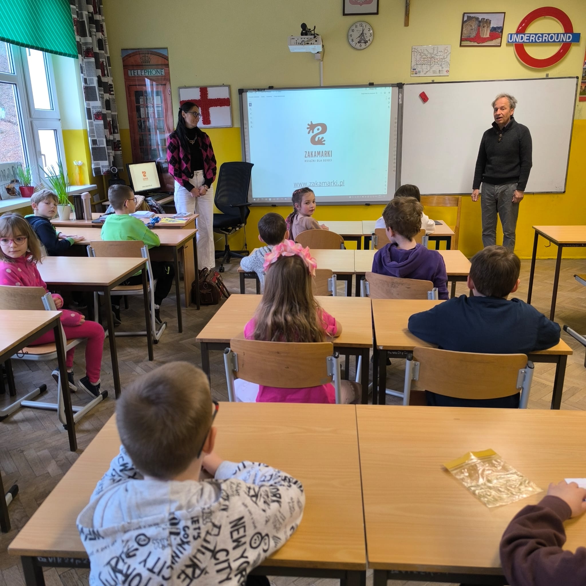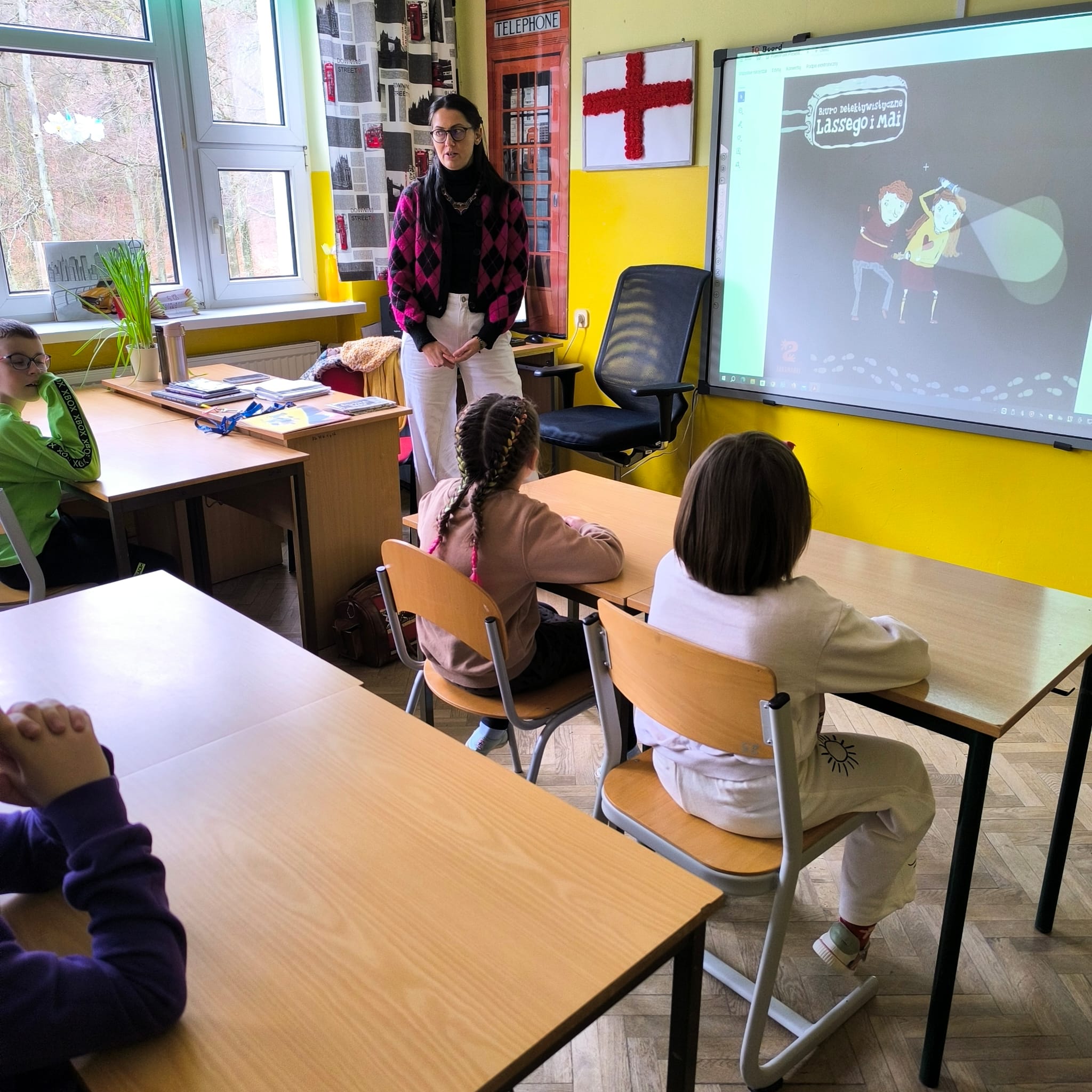 Za nami trzydniowe warsztaty czytelnicze wydawnictwa „Zakamarki”. W klasie zerowej były one poświęcone serii o Duni i Mattisie autorstwa Rose Lagercrantz, w klasach 2-3 -serii Biuro Detektywistyczne Lassego i Mai Martina Widmarka, a w klasach 4-5 serii o Tsatsikim Moni Nilsson. Niezwykle ciekawe zajęcia prowadzone były przez doświadczonych i pełnych pasji animatorów Zakamarków – panią Beatę i pana Macieja, którym serdecznie dziękujemy za wspaniałe, inspirujące spotkanie z literaturą i podzielenie się mnóstwem ciekawostek geograficznych, podróżniczych i historycznych.