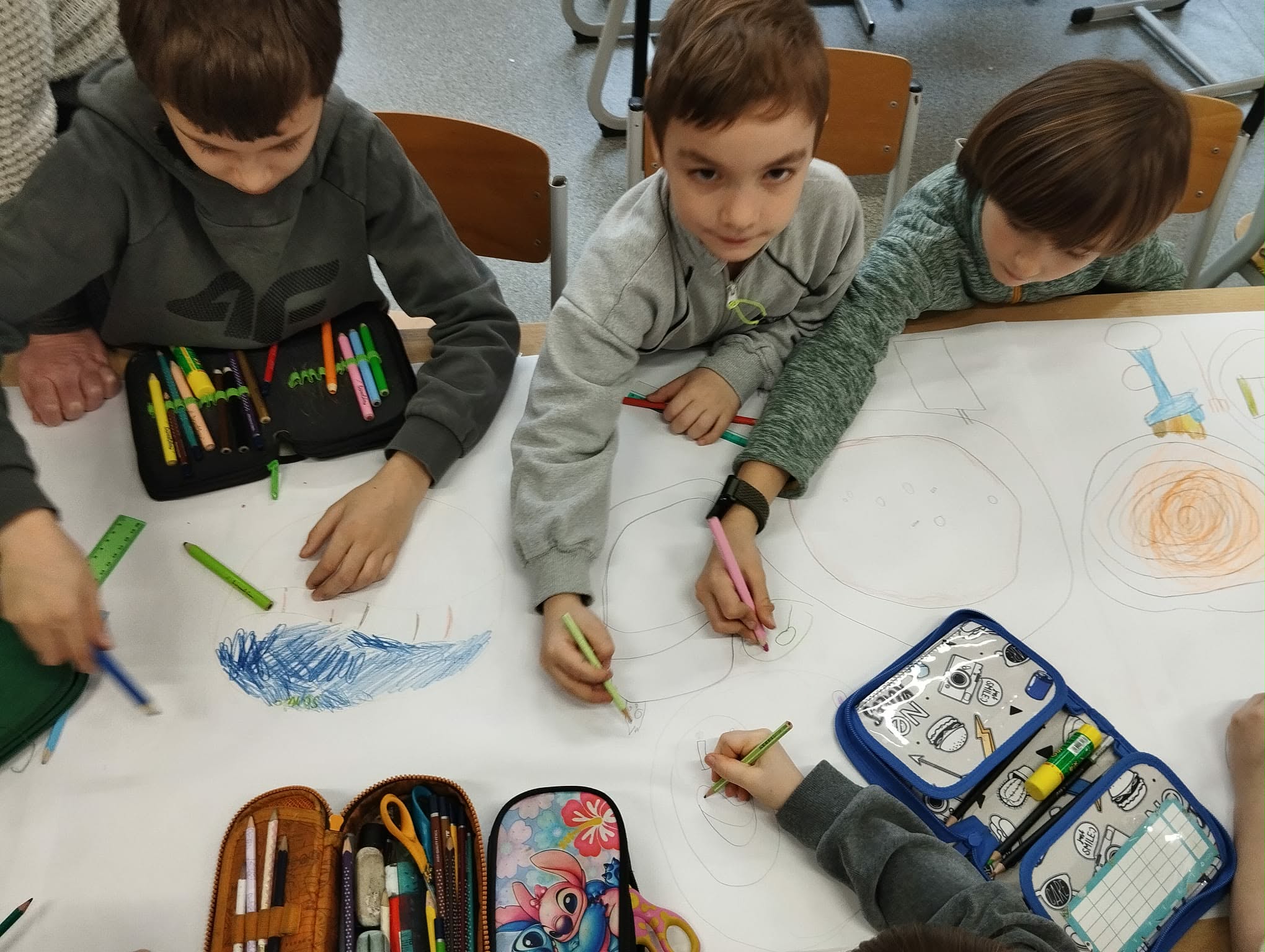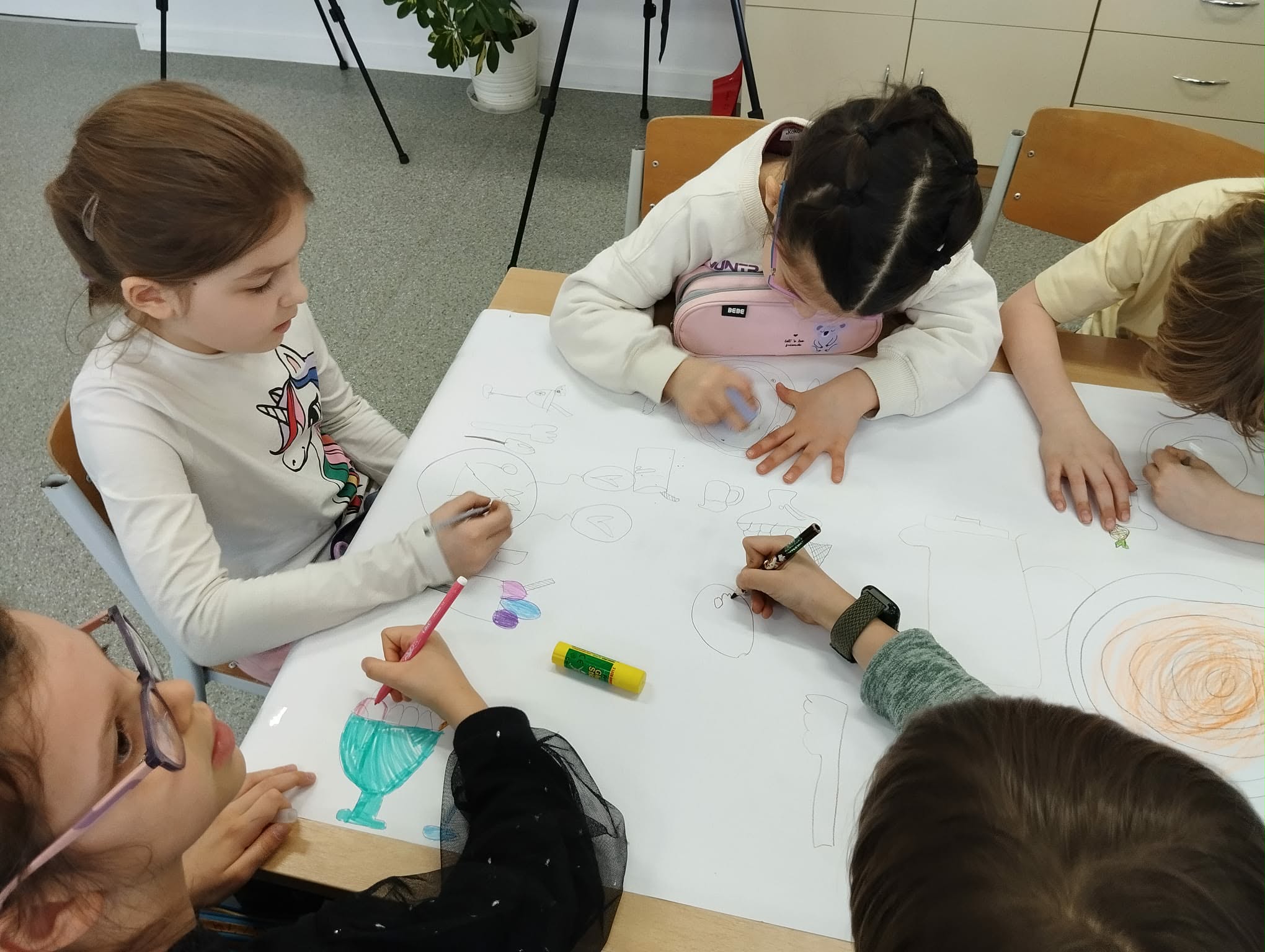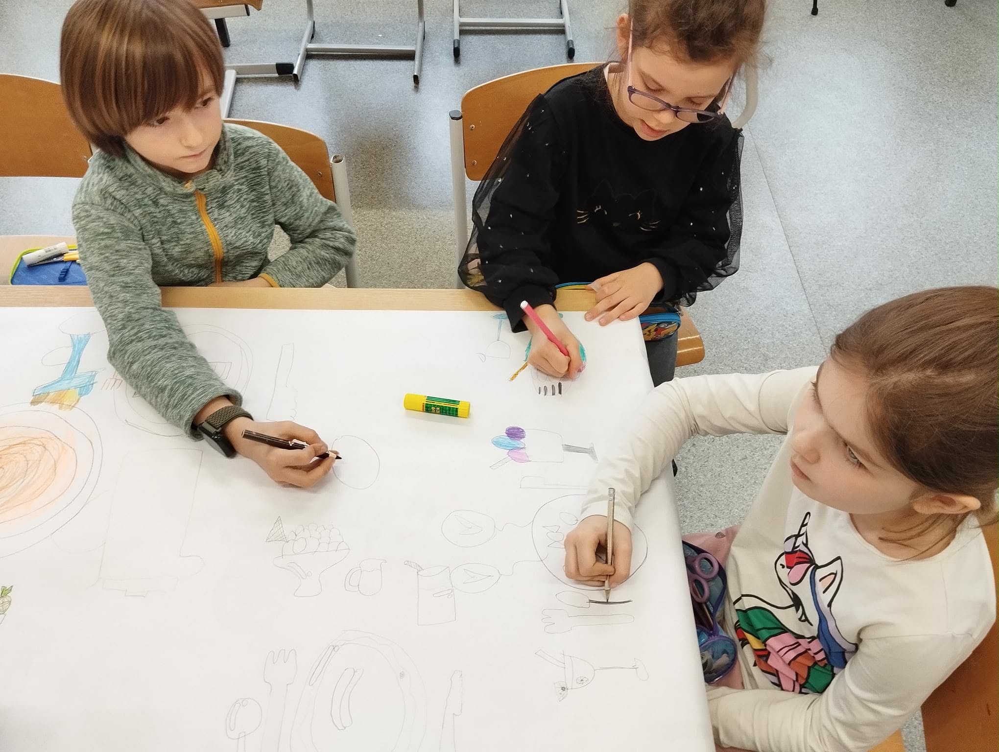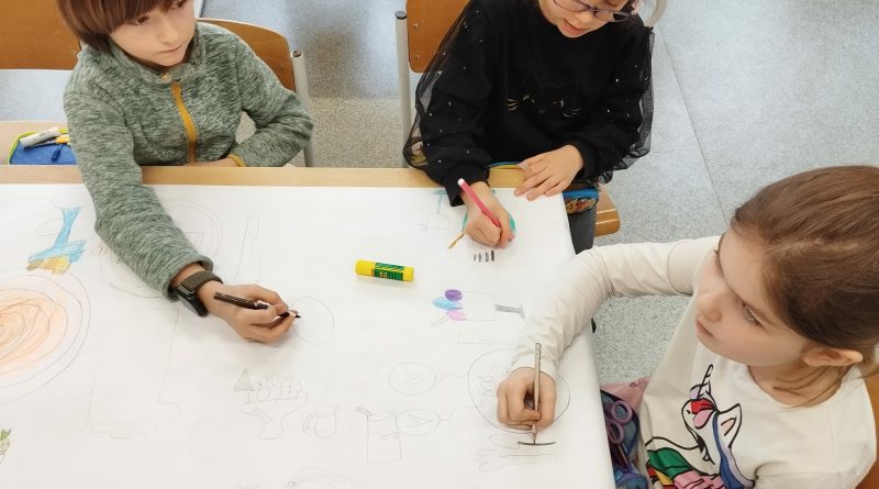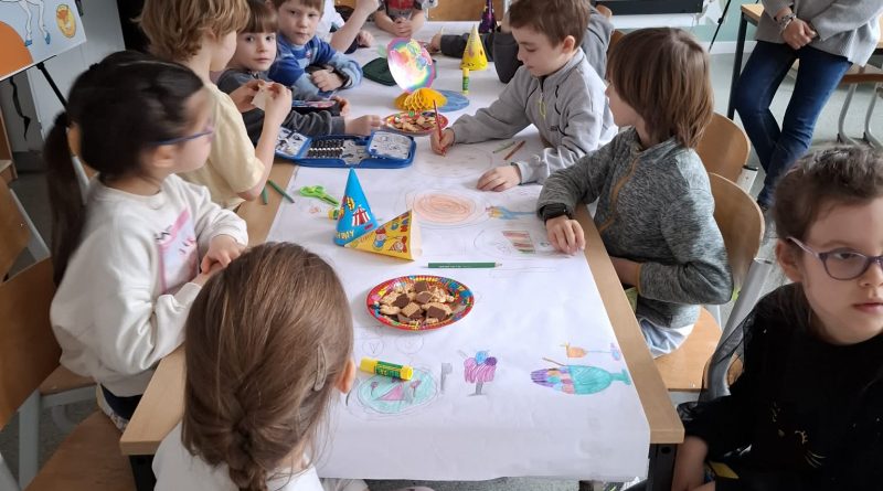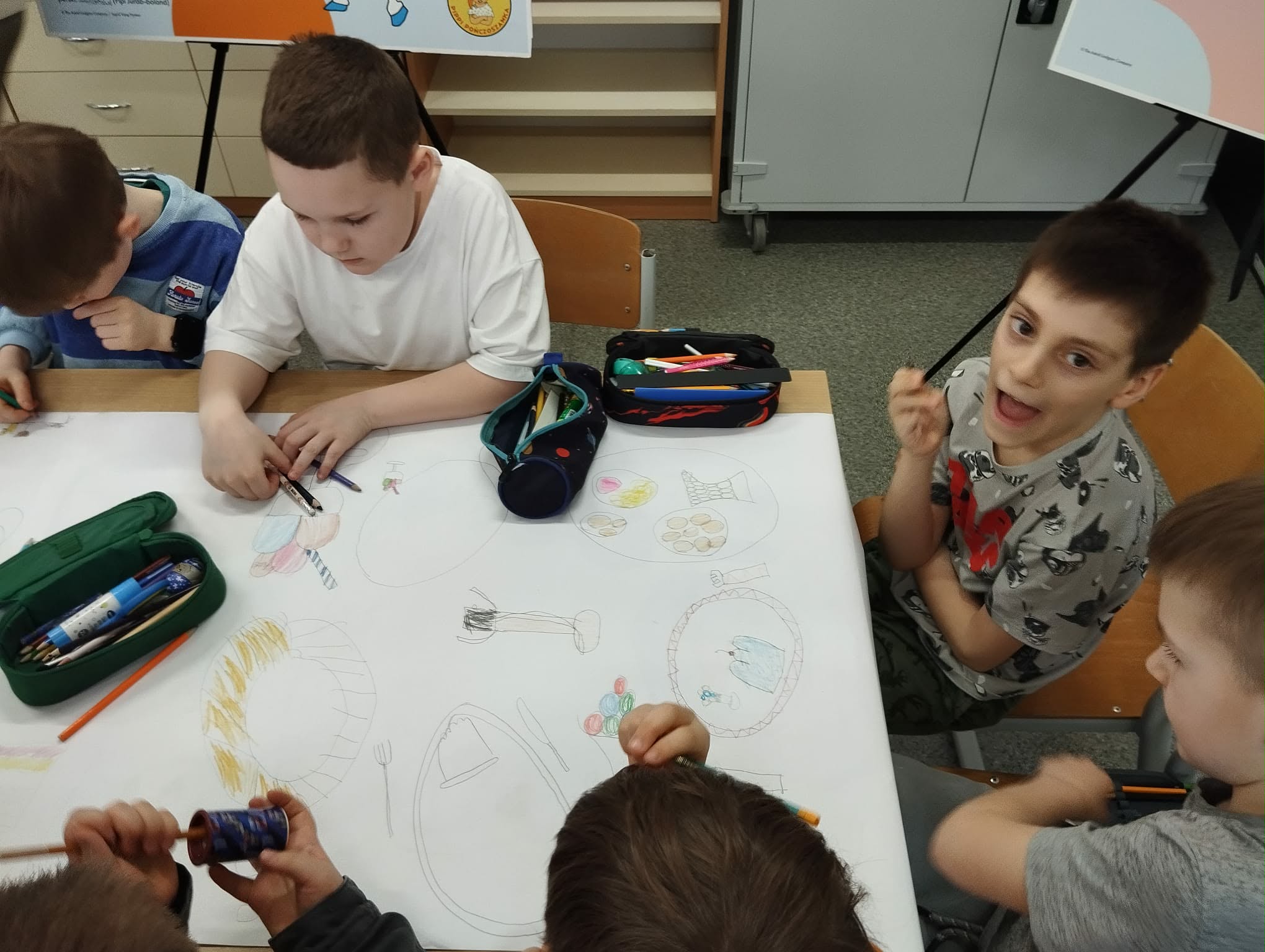 - Młodsi koledzy przygotowywali kolorowe, urodzinowe girlandy, a niektórzy tworzyli własne projekty urodzinowego obrusu oraz słodkiego przyjęcia dla Pippi.