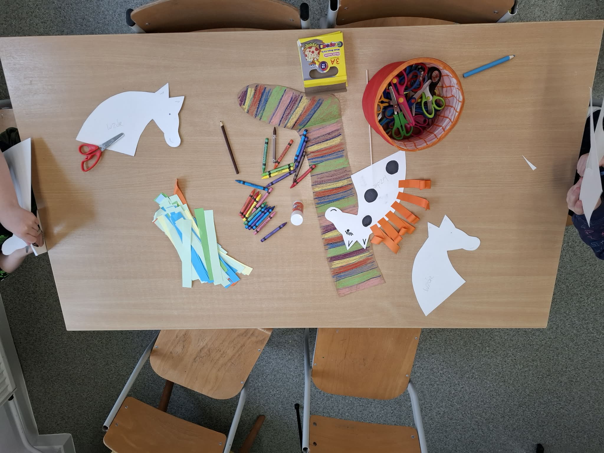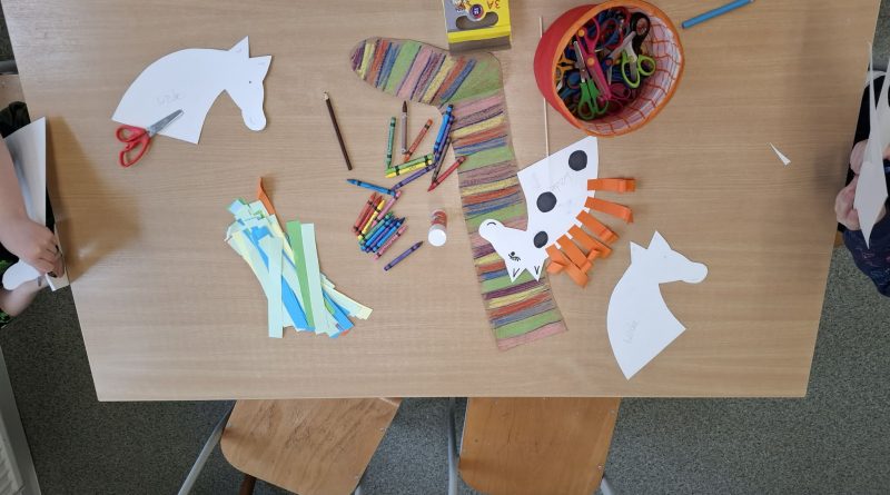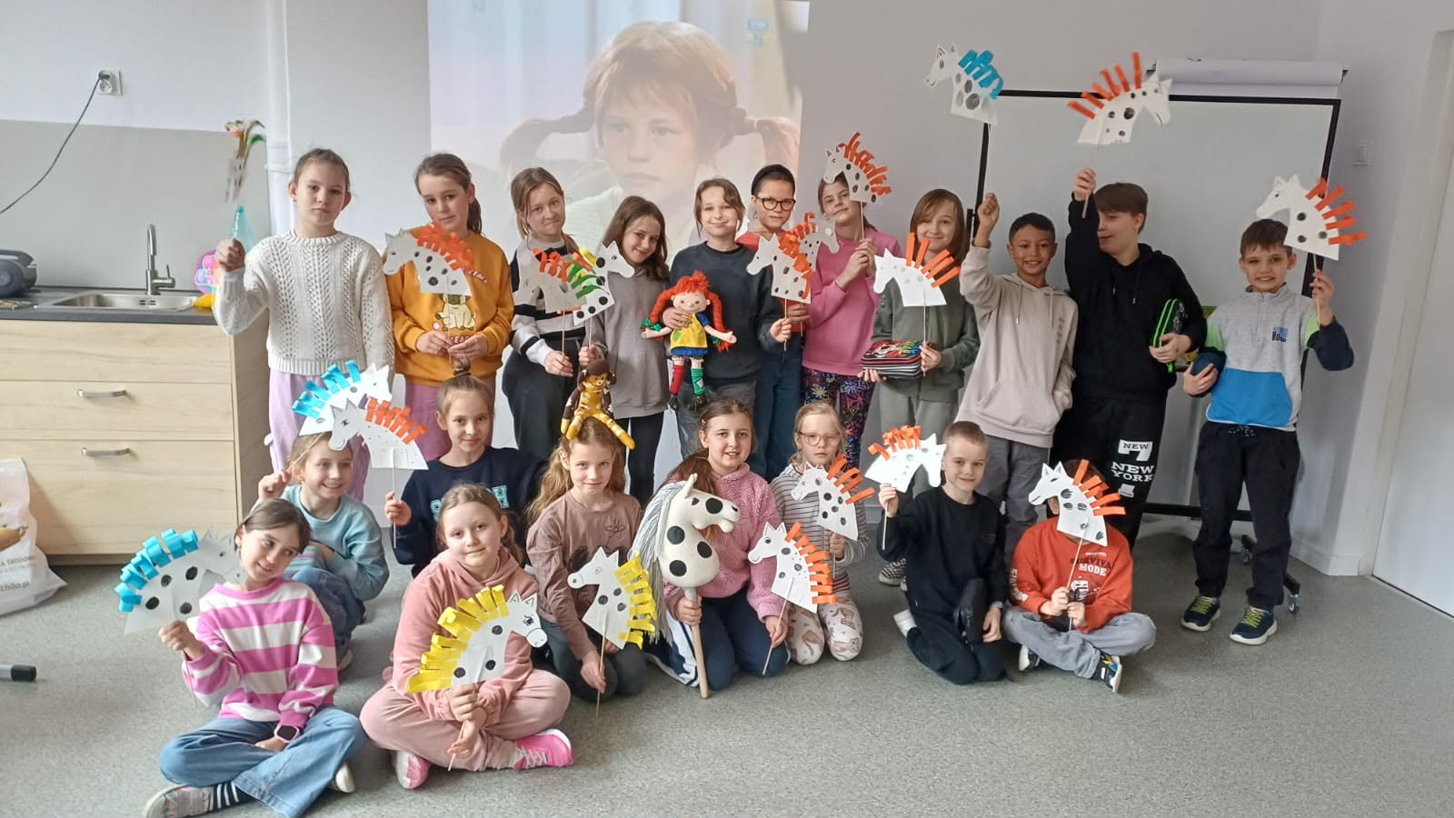 - Uczniowie klas trzecich wykonali przepiękne, białe koniki w czarne kropki na patyczkach – dokładnie takie, jakiego Pippi dźwigała jedną ręką.