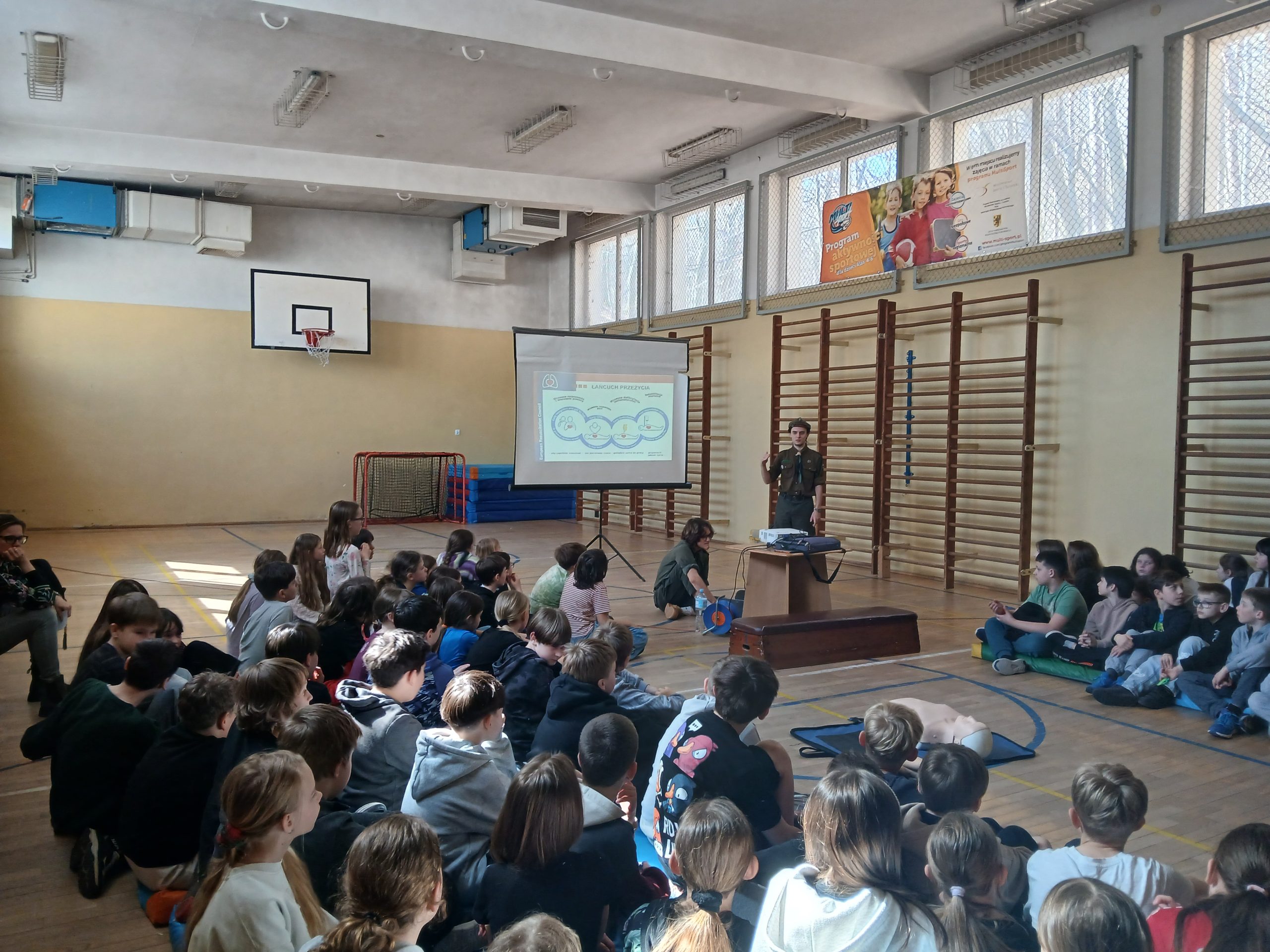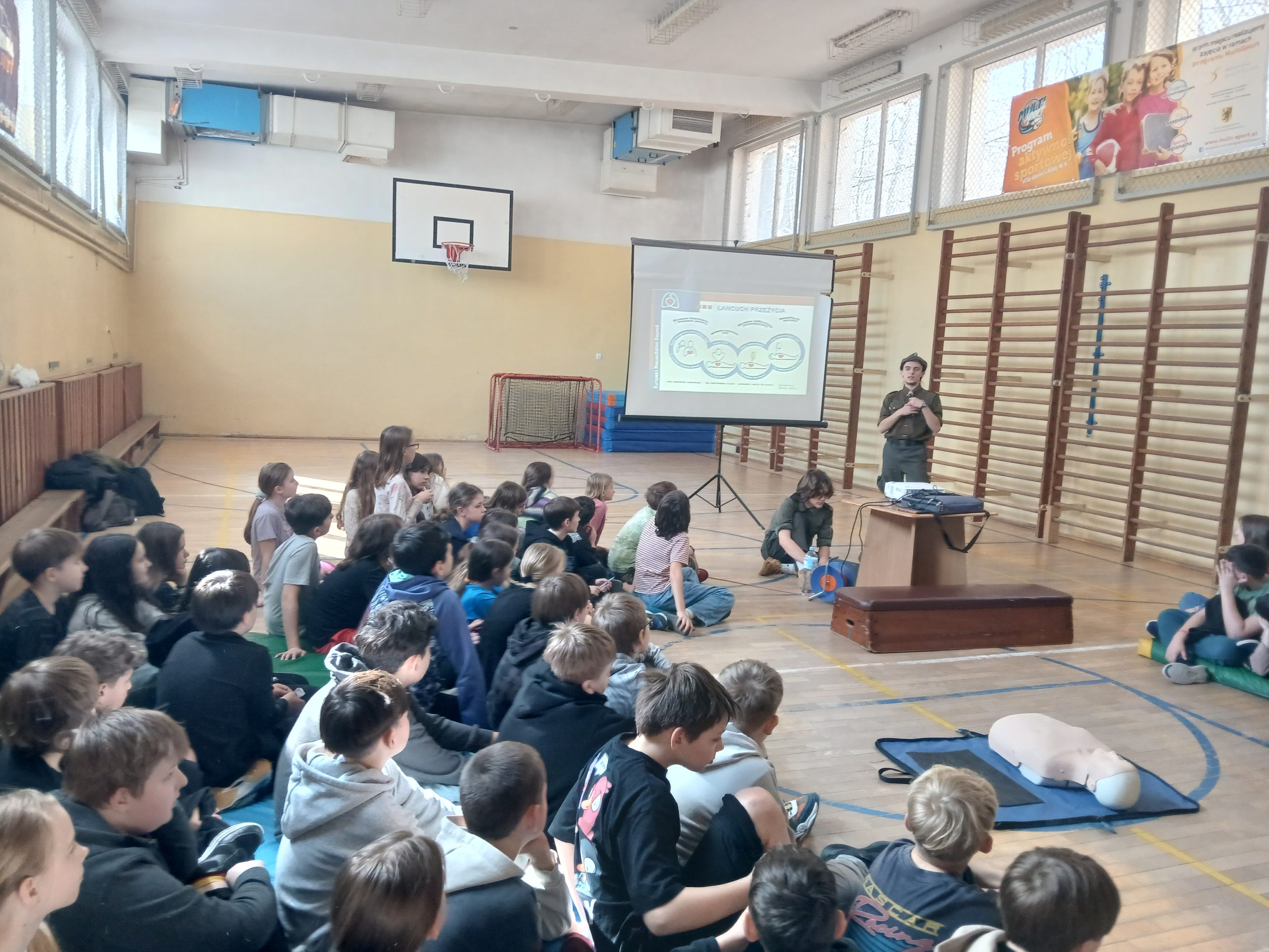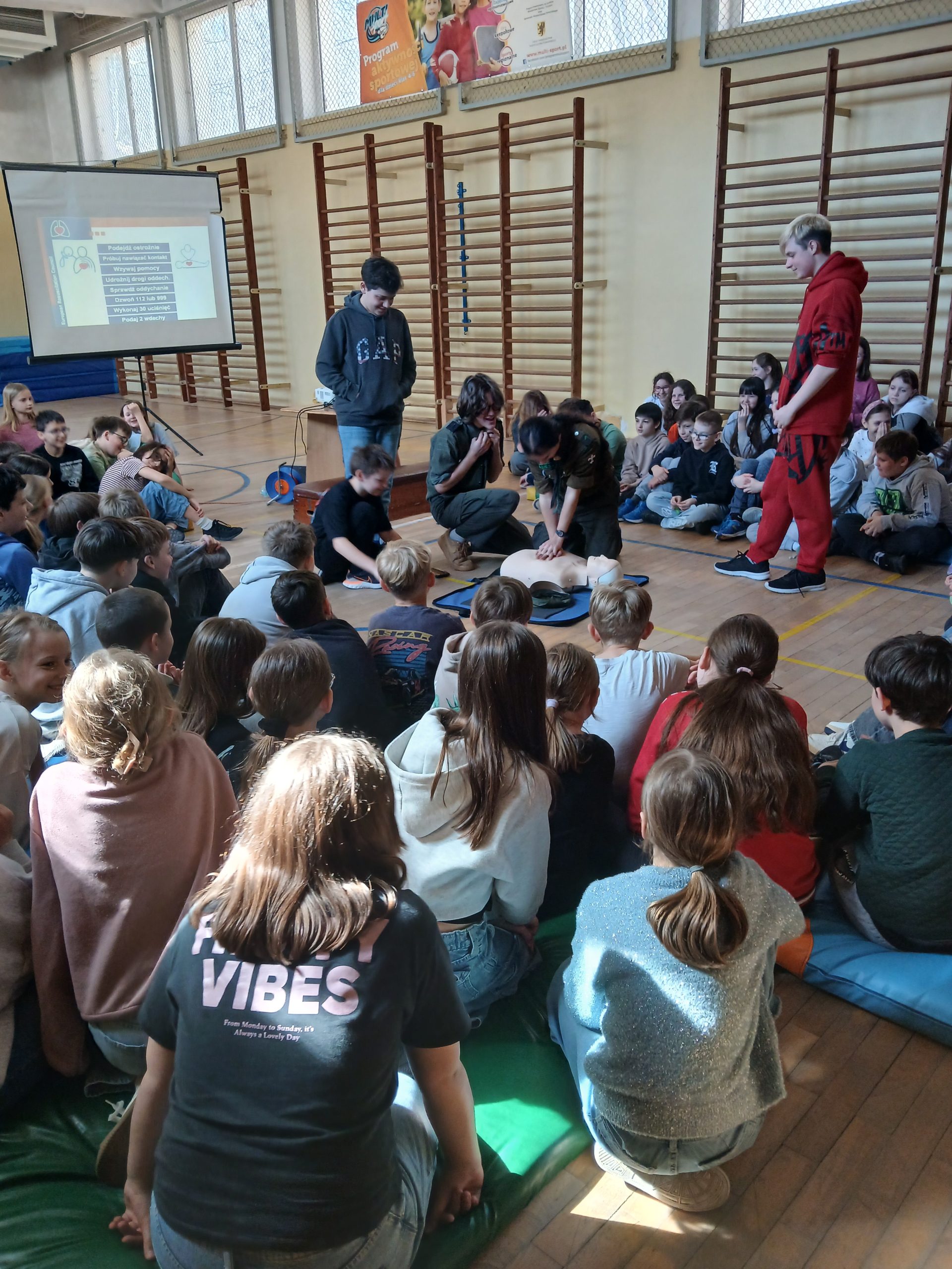 Harcerze przeprowadzili wyjątkowe warsztaty dla klas starszych i młodszych, podczas których zaprezentowali kluczowe elementy udzielania pierwszej pomocy. Uczniowie mieli okazję nauczyć się, jak prawidłowo wykonywać resuscytację krążeniowo-oddechową (RKO) oraz jak skutecznie wezwać pomoc w sytuacjach zagrożenia.