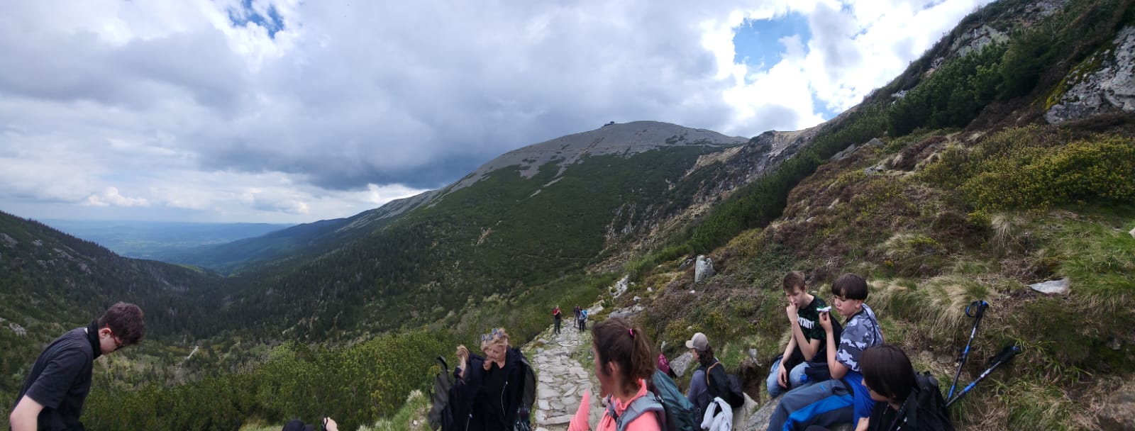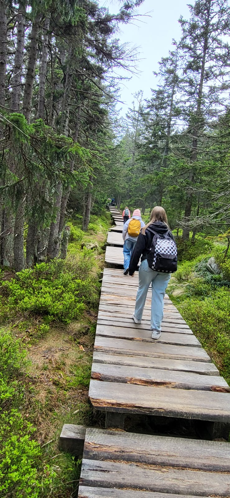Następnego dnia odwiedziliśmy magiczną Świątynię Wang, norweski kościółek przeniesiony na teren Karkonoszy w 1842 roku. Potem ruszyliśmy żółtym szlakiem obok skalnych formacji Pielgrzymy i Słonecznik. Po drodze zobaczyliśmy malowniczy Wielki i Mały Staw (niestety w deszczu). Na szczęście mogliśmy odpocząć i wyschnąć w schronisku Strzecha Akademicka, a gdy znów wyszło słońce ruszyliśmy niebieskim szlakiem obok niezwykle urokliwego schroniska Samotnia w dół do Karpacza.
