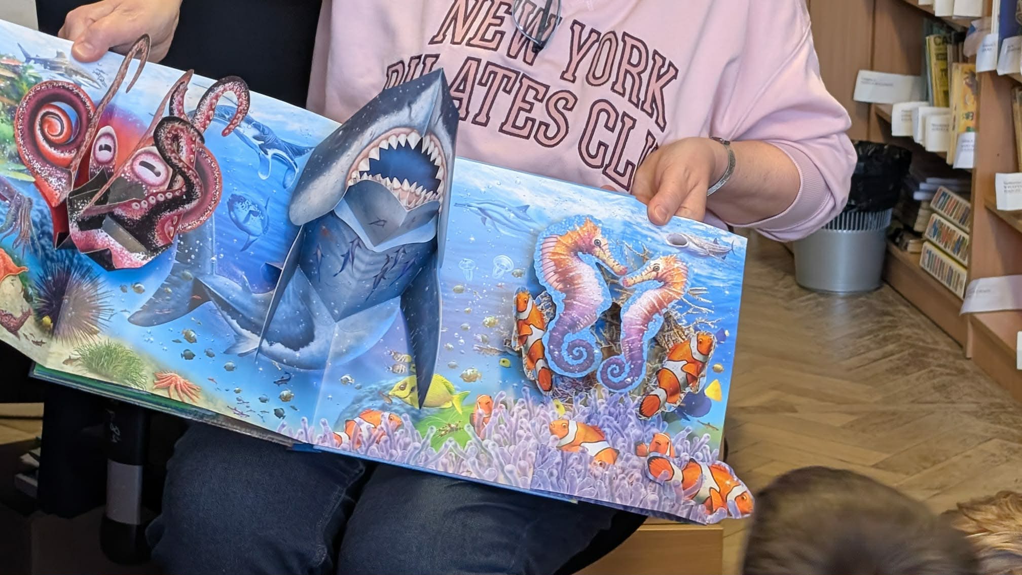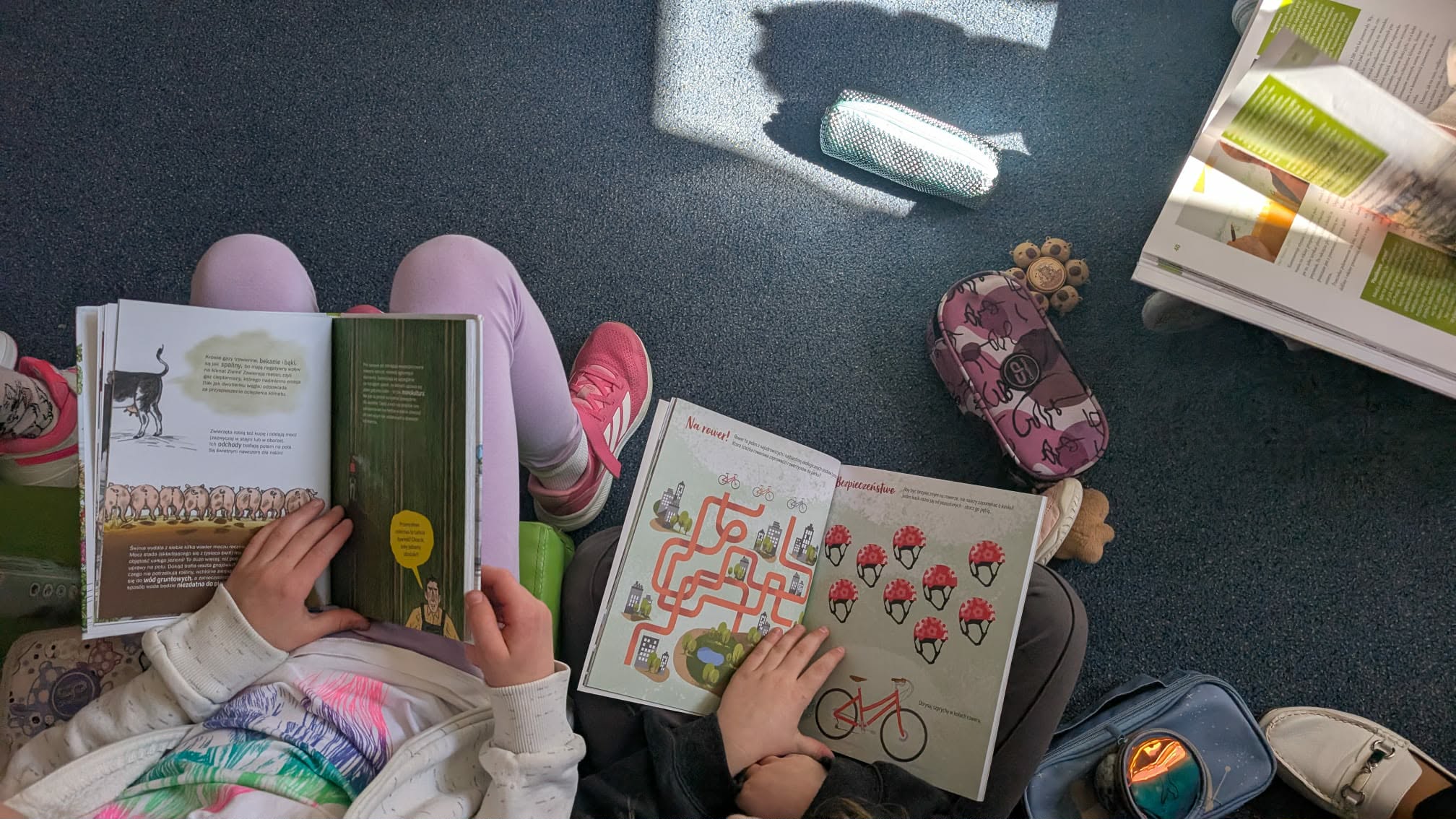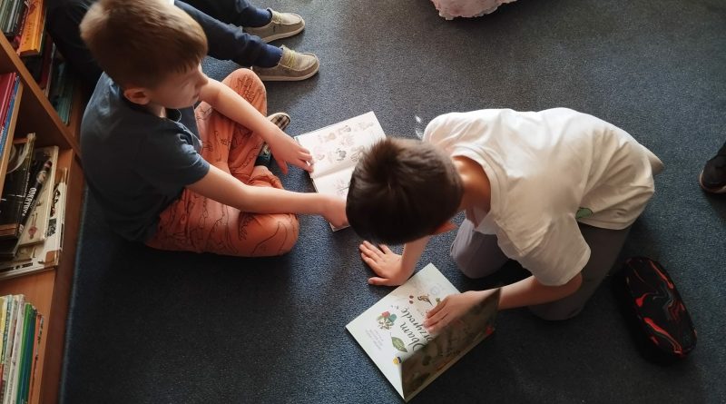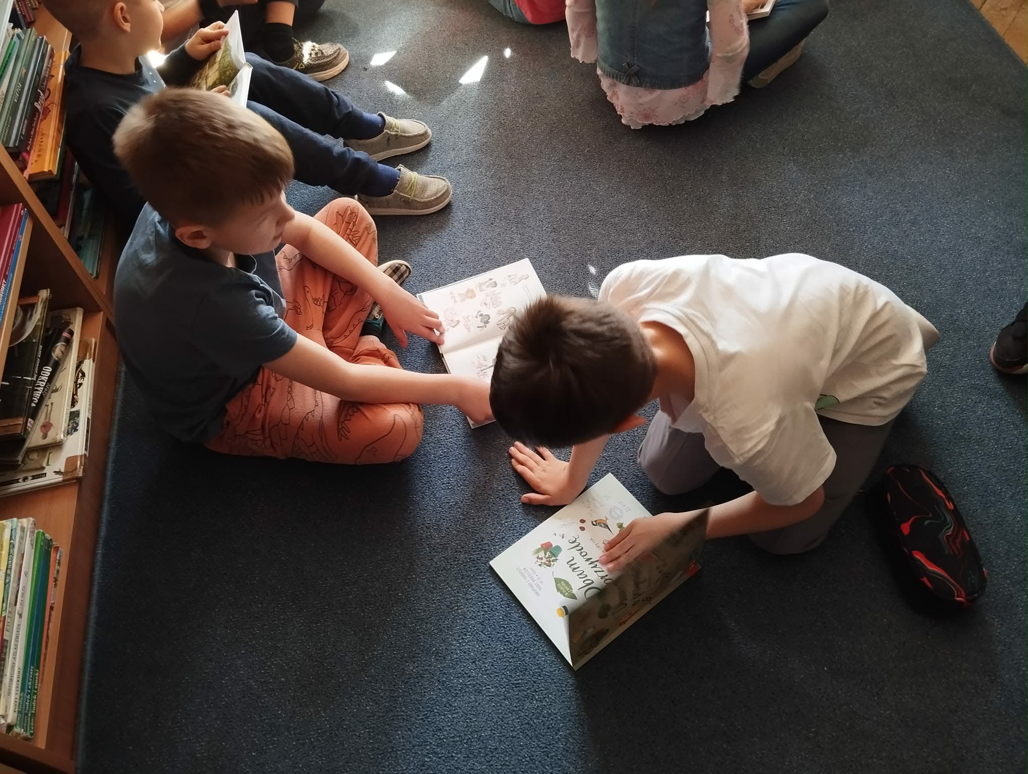 Podczas spotkania nie zabrakło wspólnego czytania wybranej pozycji, które było też okazją do rozmowy zarówno o książkach, jak i o trosce o naszą planetę. Na zakończenie uczniowie wykonali własnoręcznie kolorowe zakładki.