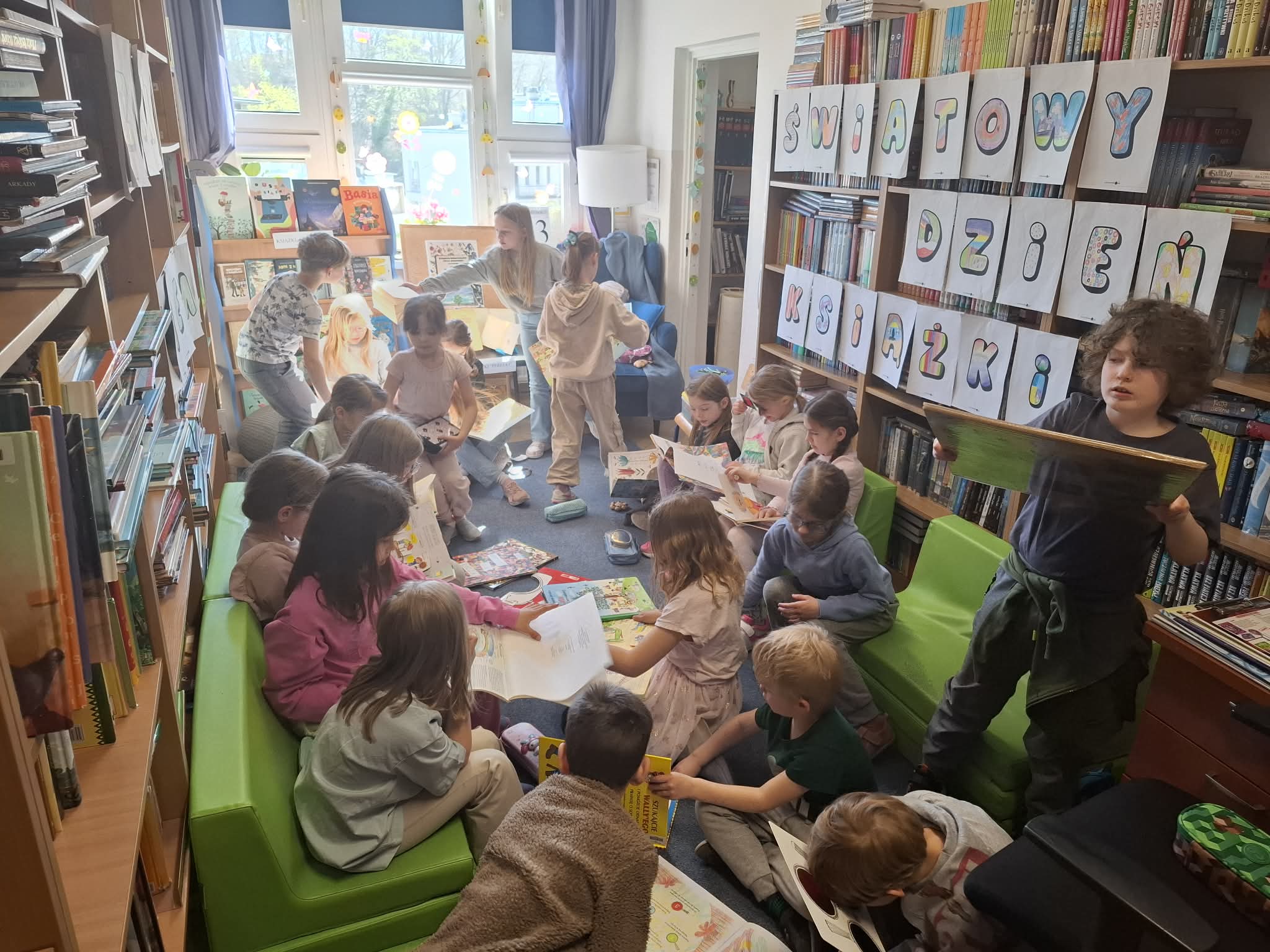 Zajęcia biblioteczne dla pierwszaków z okazji Dnia Ziemi i Światowego Dnia Książki