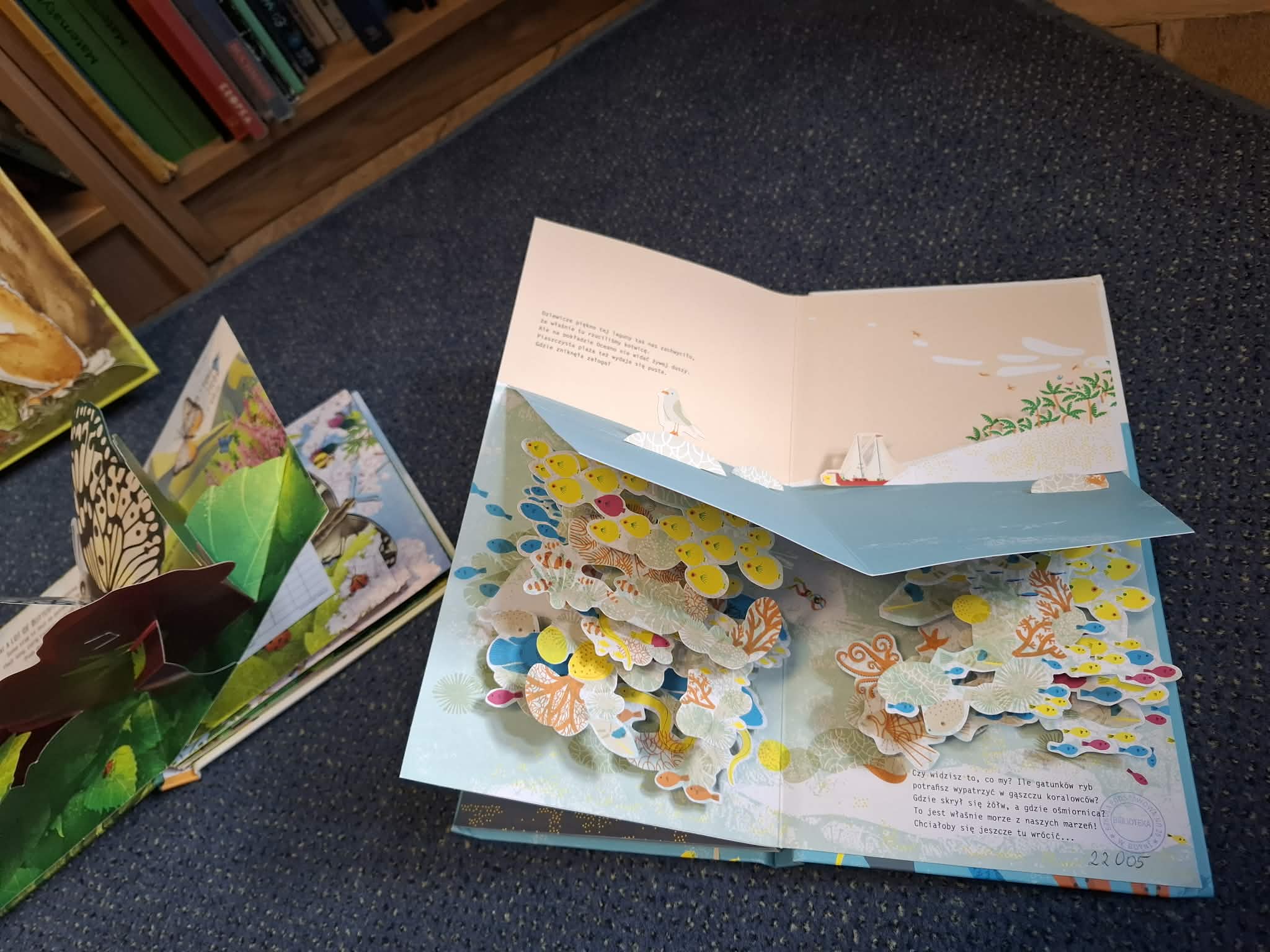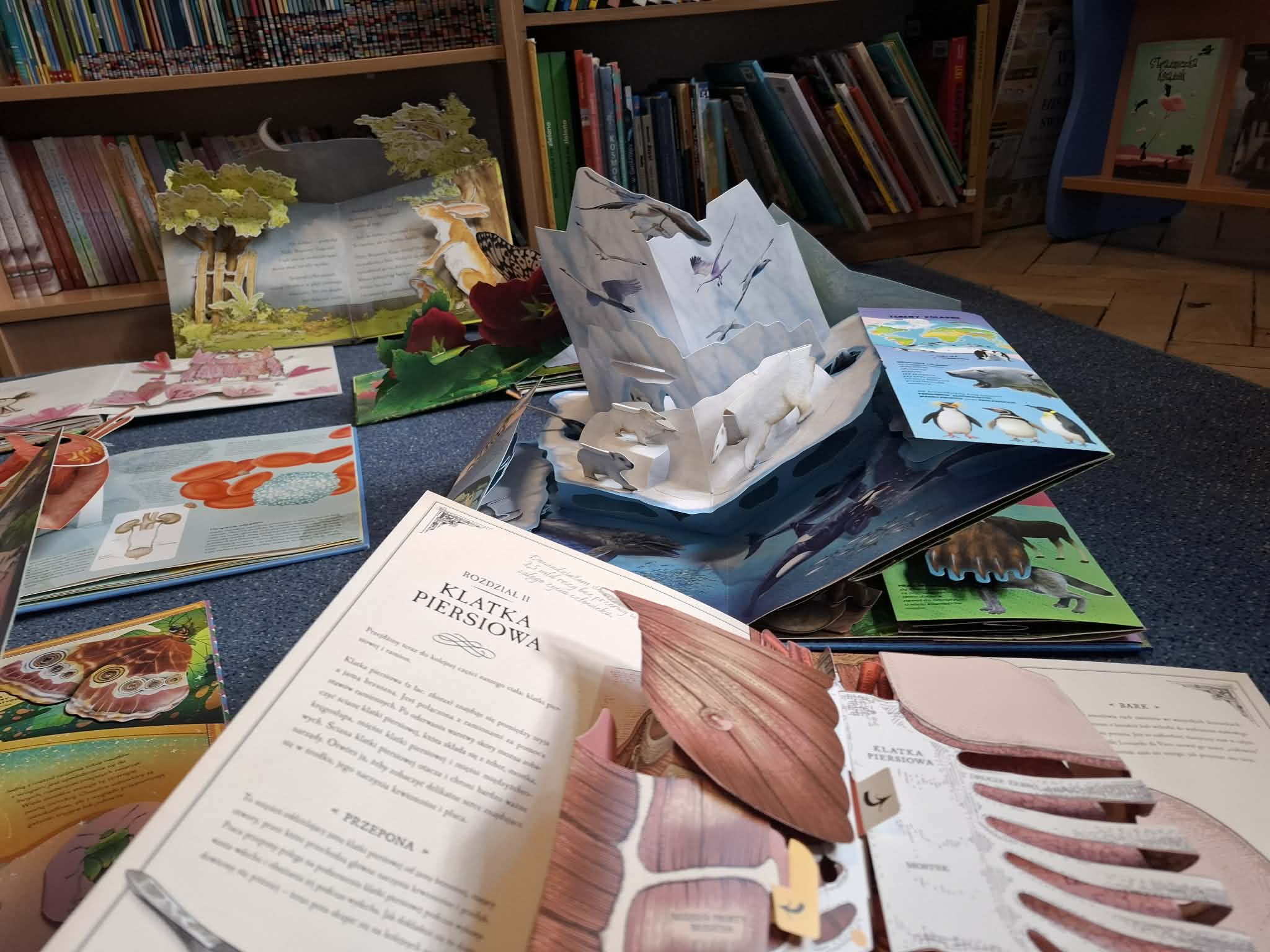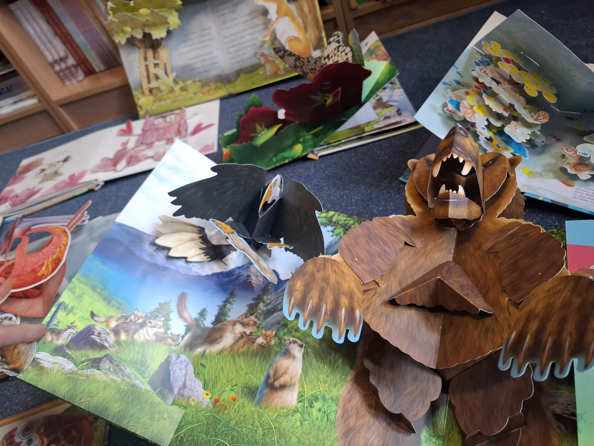 Z okazji Dnia Ziemi oraz Światowego Dnia Książki uczniowie klas pierwszych wzięli udział w wyjątkowych zajęciach bibliotecznych. Dla naszych najmłodszych gości przygotowano ciekawe wystawki książek, wśród których znalazły się: książki o… książkach, prawdziwe „perełki” w postaci książek przedwojennych, woluminy największe i najgrubsze, ale też najmniejsze i najchudsze ;), publikacje o tematyce ekologicznej oraz niezwykle atrakcyjne książki przestrzenne (pop-up). Te ostatnie wzbudziły zdecydowanie największe zainteresowanie i zachwyt dzieci.