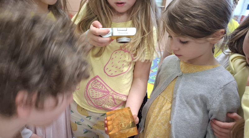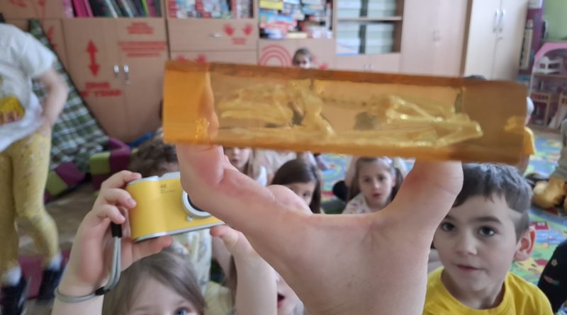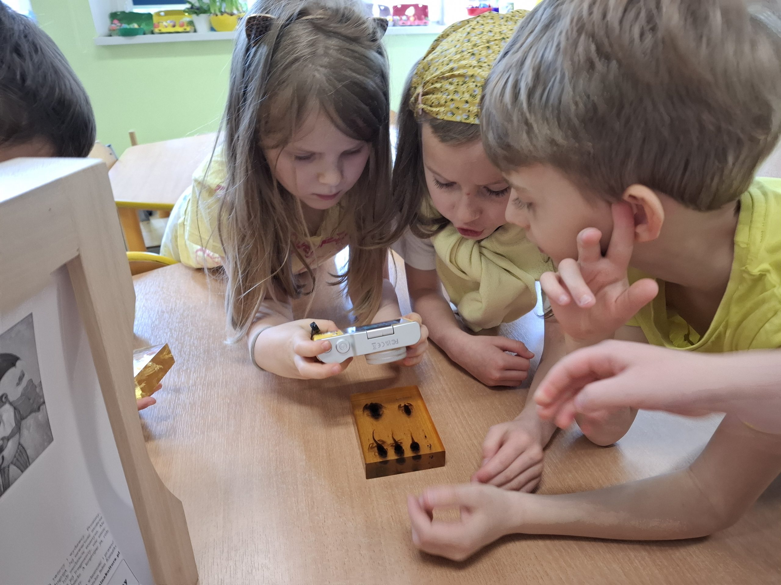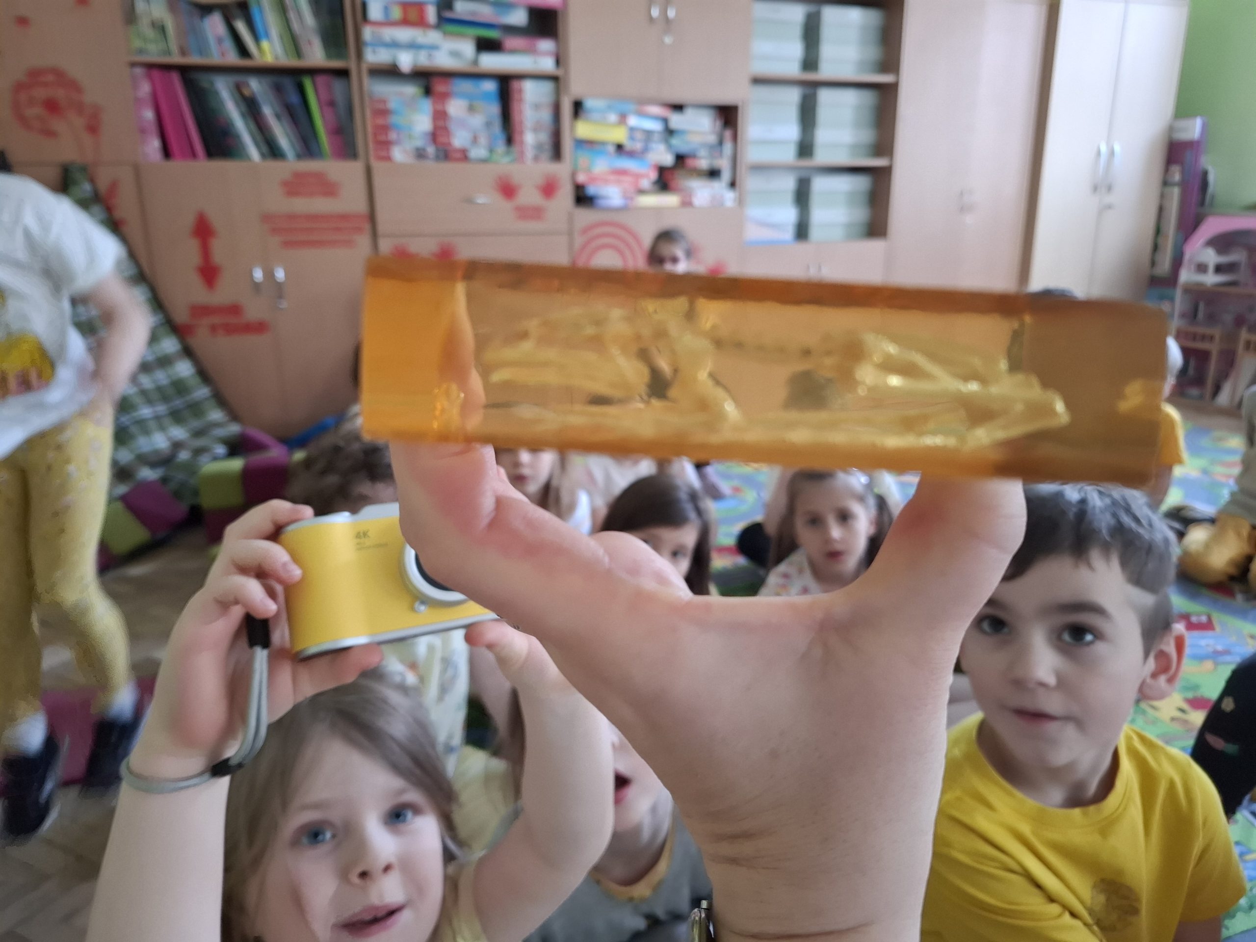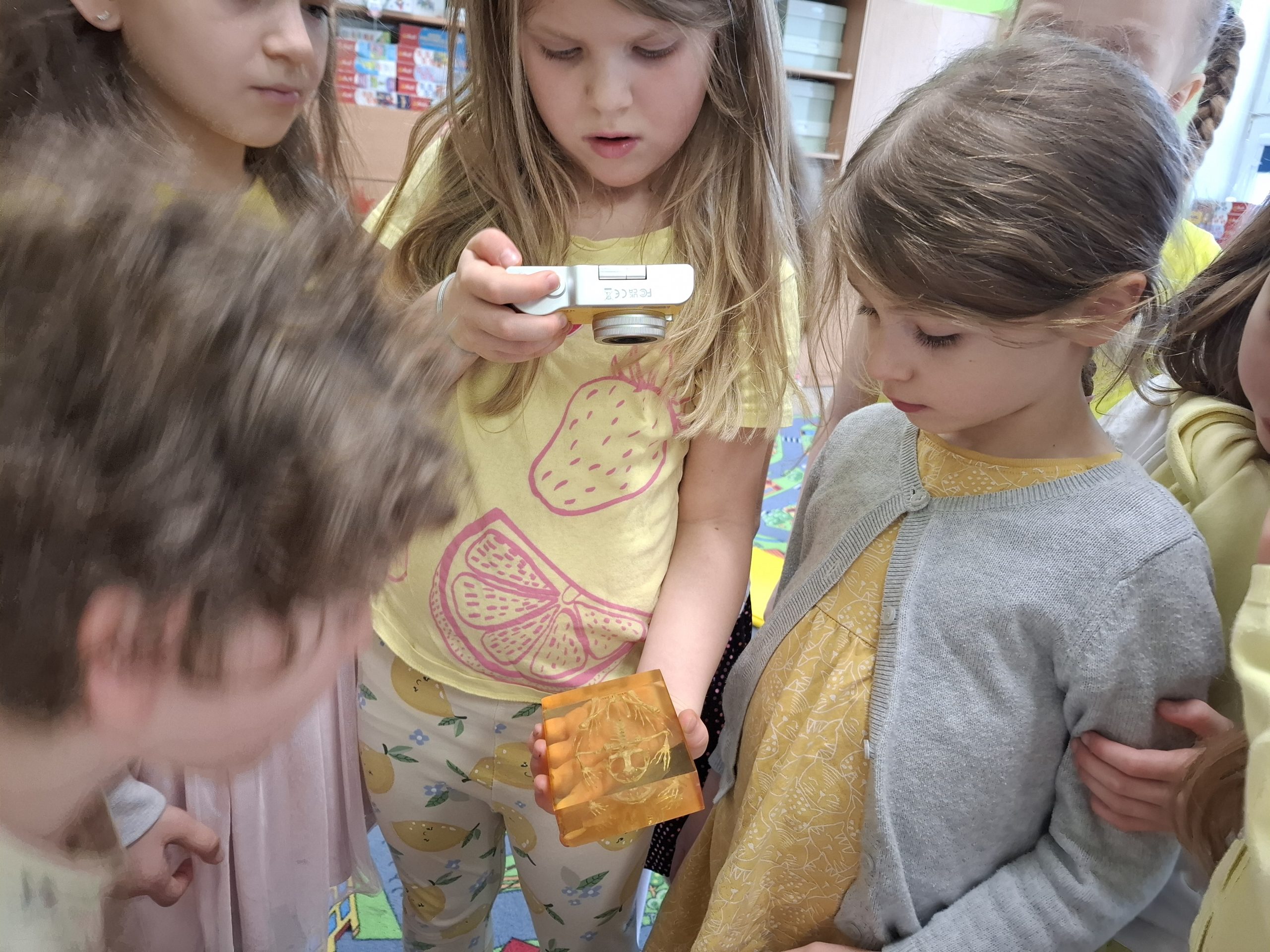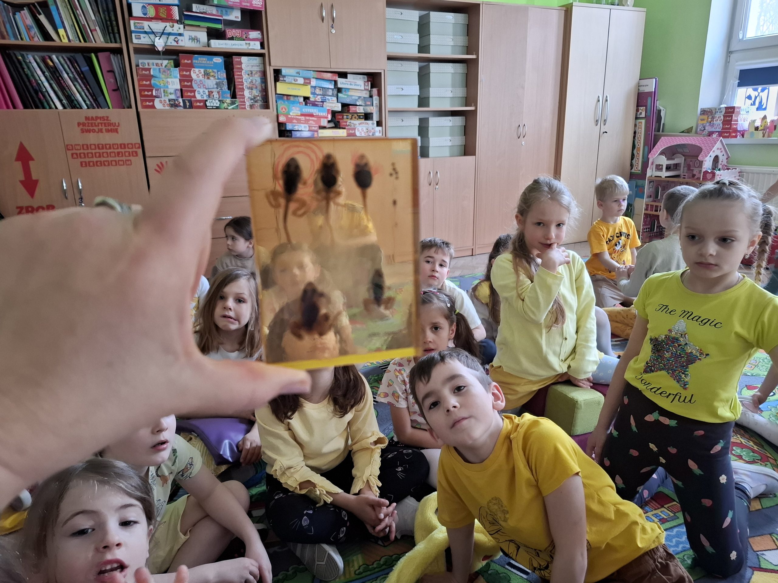 Z okazji ukończenia bloku tematycznego o łące, do klasy zerowej przybył biblioteczny teatrzyk kamishibai z japońską bajką filozoficzną o żabach. To klasyczna przypowieść, dzięki której można przekonać się, jak poglądy podlegają uwarunkowaniom, a jedno wydarzenie może wpłynąć na nasz sposób myślenia i sposób myślenia wielu osób wokół nas. Przed bajką dzieci miały okazję zapoznać się z wieloma bibliotecznymi książkami o płazach, obejrzeć prezentację z ciekawostkami o żabach oraz zapoznać się z ich budową oraz cyklem rozwojowym. Podczas zajęć nie zabrakło też „żabiej” piosenki, a wspólnie spędzony czas zakończył się wykonaniem wspaniałych papierowych żabek.