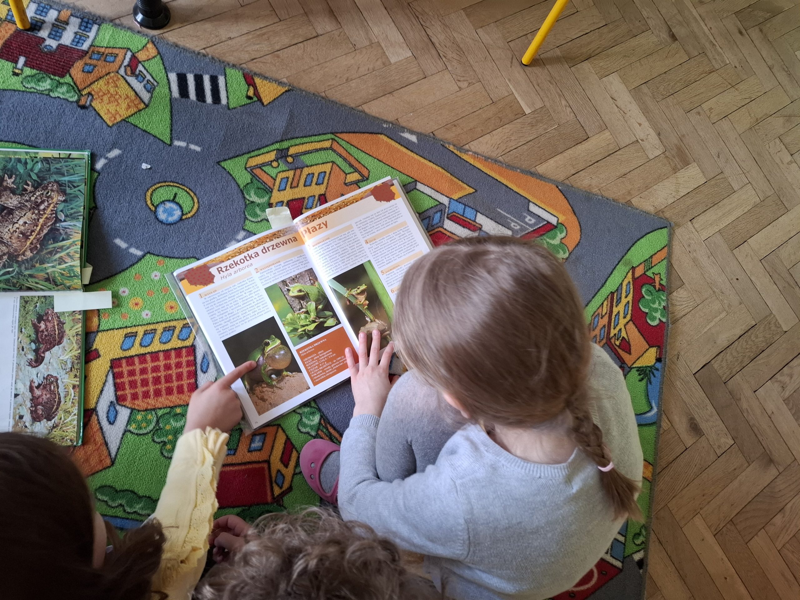 Zajęcia biblioteczne o żabach w klasie zerowej