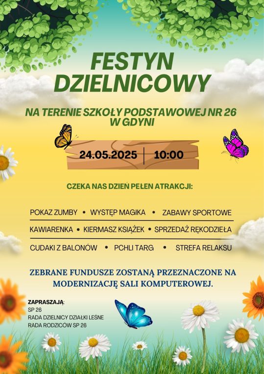 Serdecznie zapraszamy wszystkich na Festyn Dzielnicowy, który odbędzie się 24 maja 2025 r. w godz. 10:00–13:00 na terenie naszej szkoły.